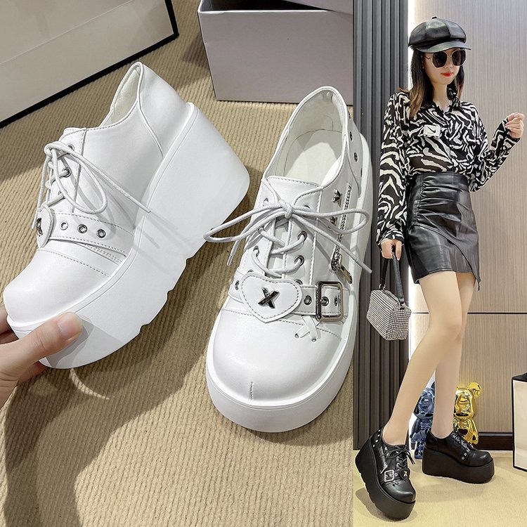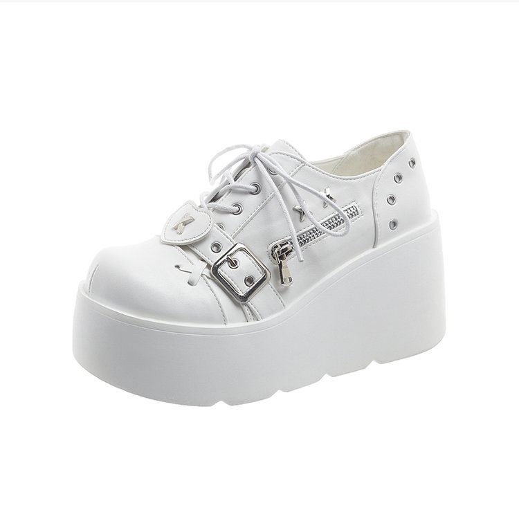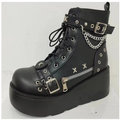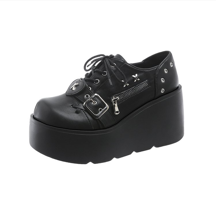 야행성 기사 오리지널 마틴 부츠 핫 걸 두꺼운 하단 라운드 발가락 쿨 부츠 버클 장식 레이스 업 마틴 부츠