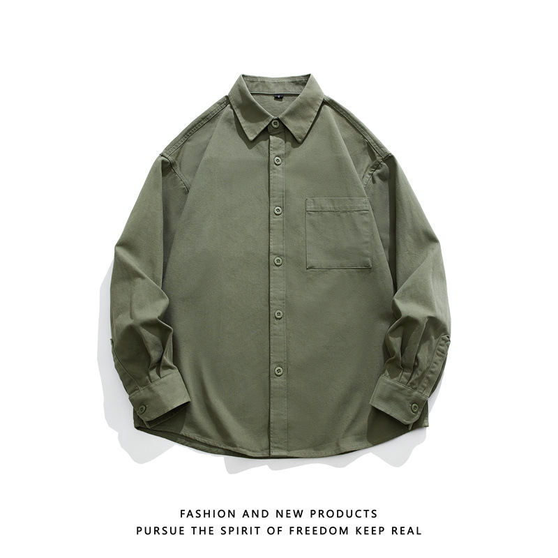 빈티지 미국 긴팔 셔츠 남성 봄 일본 복고풍 작업복 재킷 홍콩 스타일의 트렌디 한 캐주얼 탑 옷스토어 가기