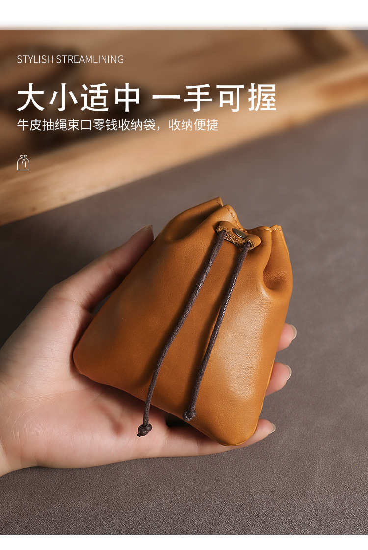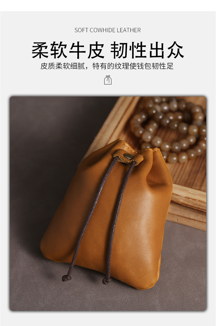 첫 번째 레이어 소 가죽 동전 지갑 빈티지 선물 행운의 가방 소 가죽 작은 선물 저장 가방 남성과 여성 창조적 인 drawstring 가방