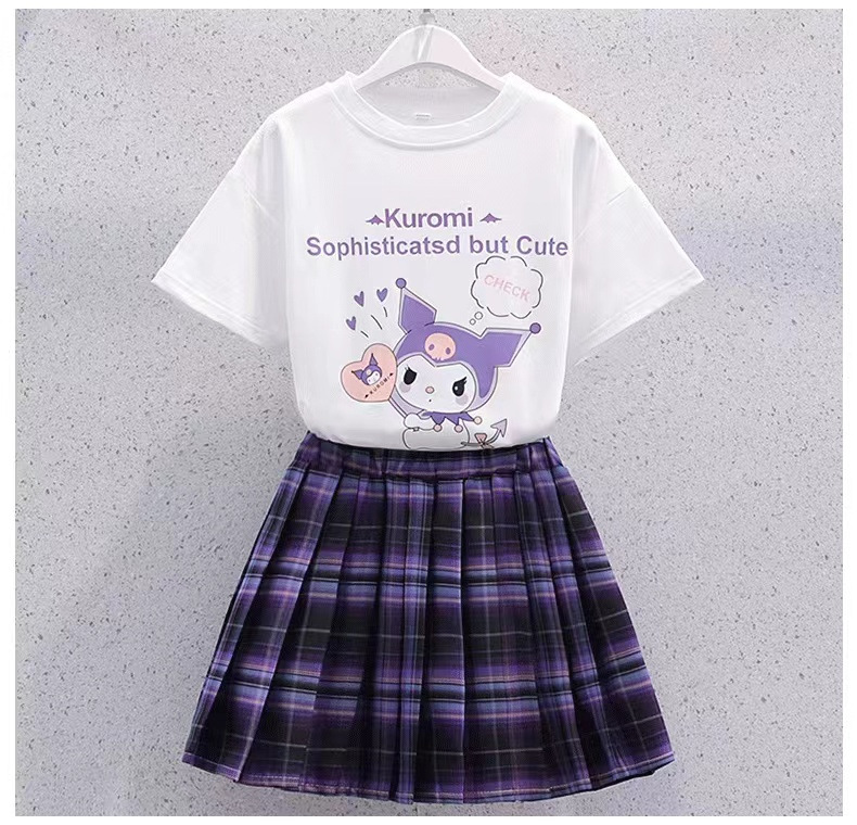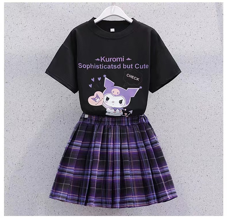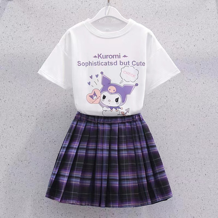 소녀 세트 여름 2023 새로운 인터넷 연예인 JK 스커트 투피스 어린이 거리 티셔츠 대학 스타일 스커트