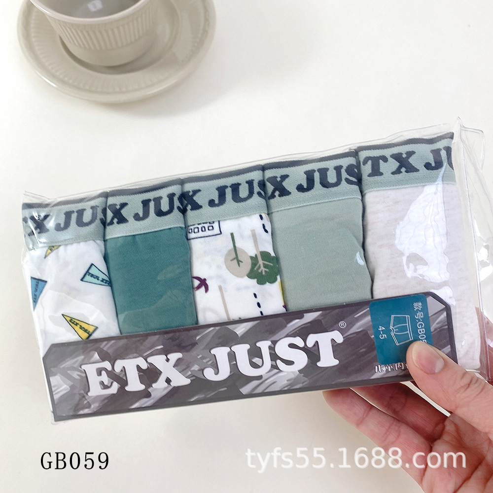 名称:ETX JUST男童平角棉内裤青少年大童内裤A类5条装儿童学生四角短裤