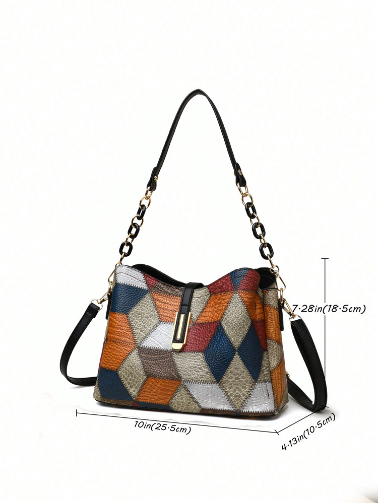 레트로 스타일 숄더/크로스백 2026년 신상 컬러 배색 중년 여성용 대용량 핸드백 세트백 입체형스토어 가기