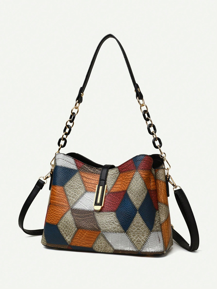 레트로 스타일 숄더/크로스백 2026년 신상 컬러 배색 중년 여성용 대용량 핸드백 세트백 입체형