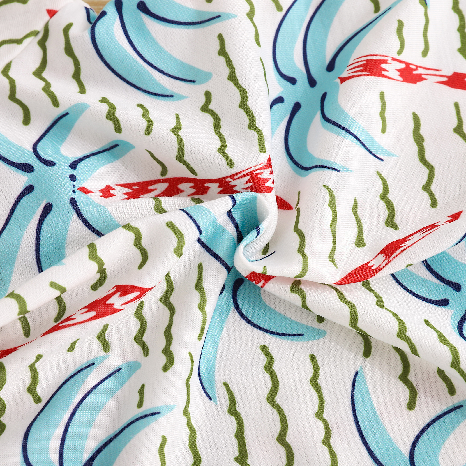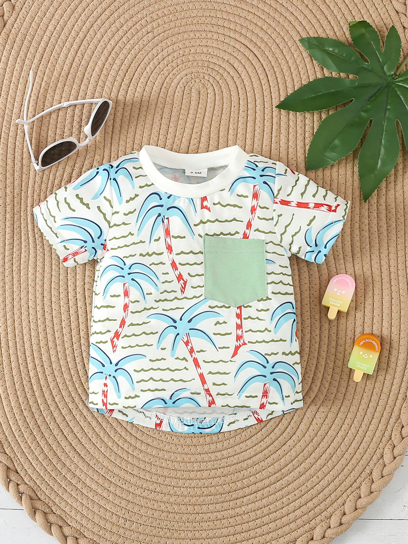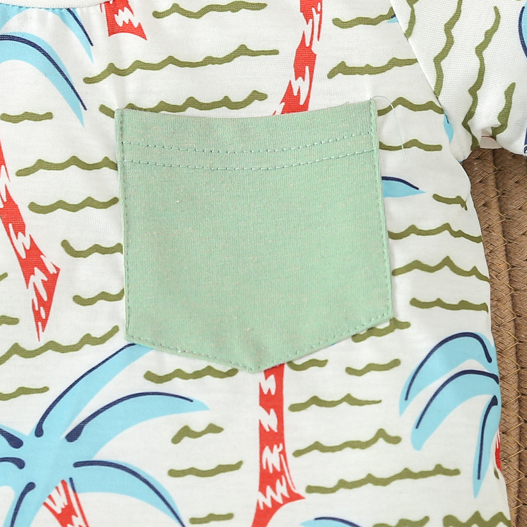 2024 여름 새 소년 캐주얼 세트 0-3 세 어린이 열대 식물 인쇄 반팔 티셔츠 반바지 세트