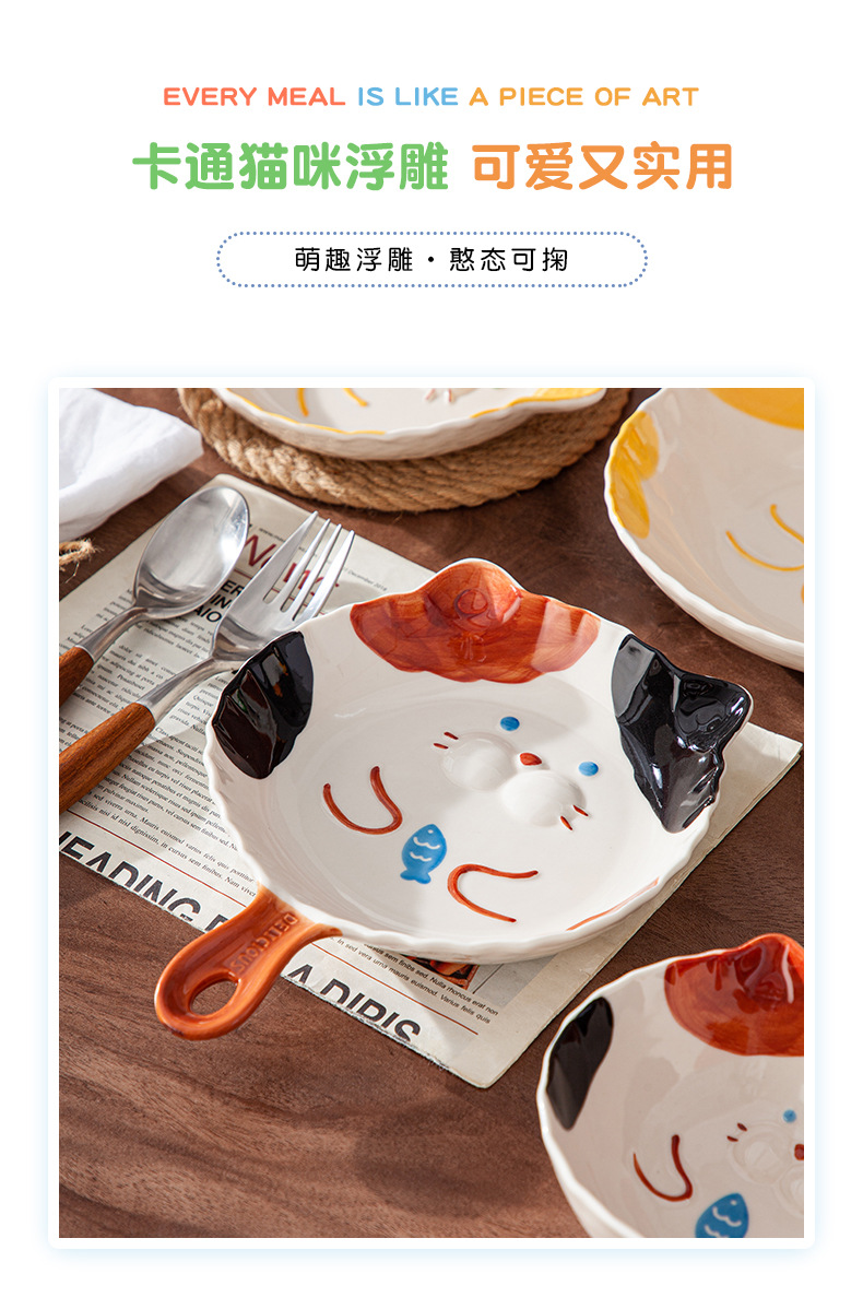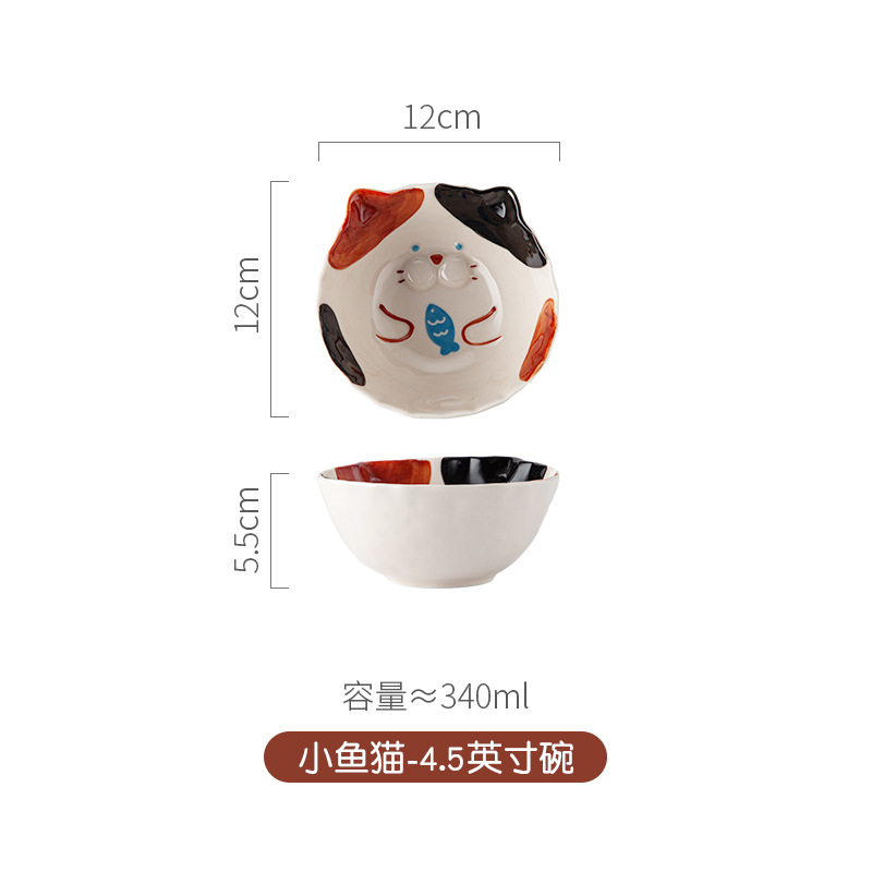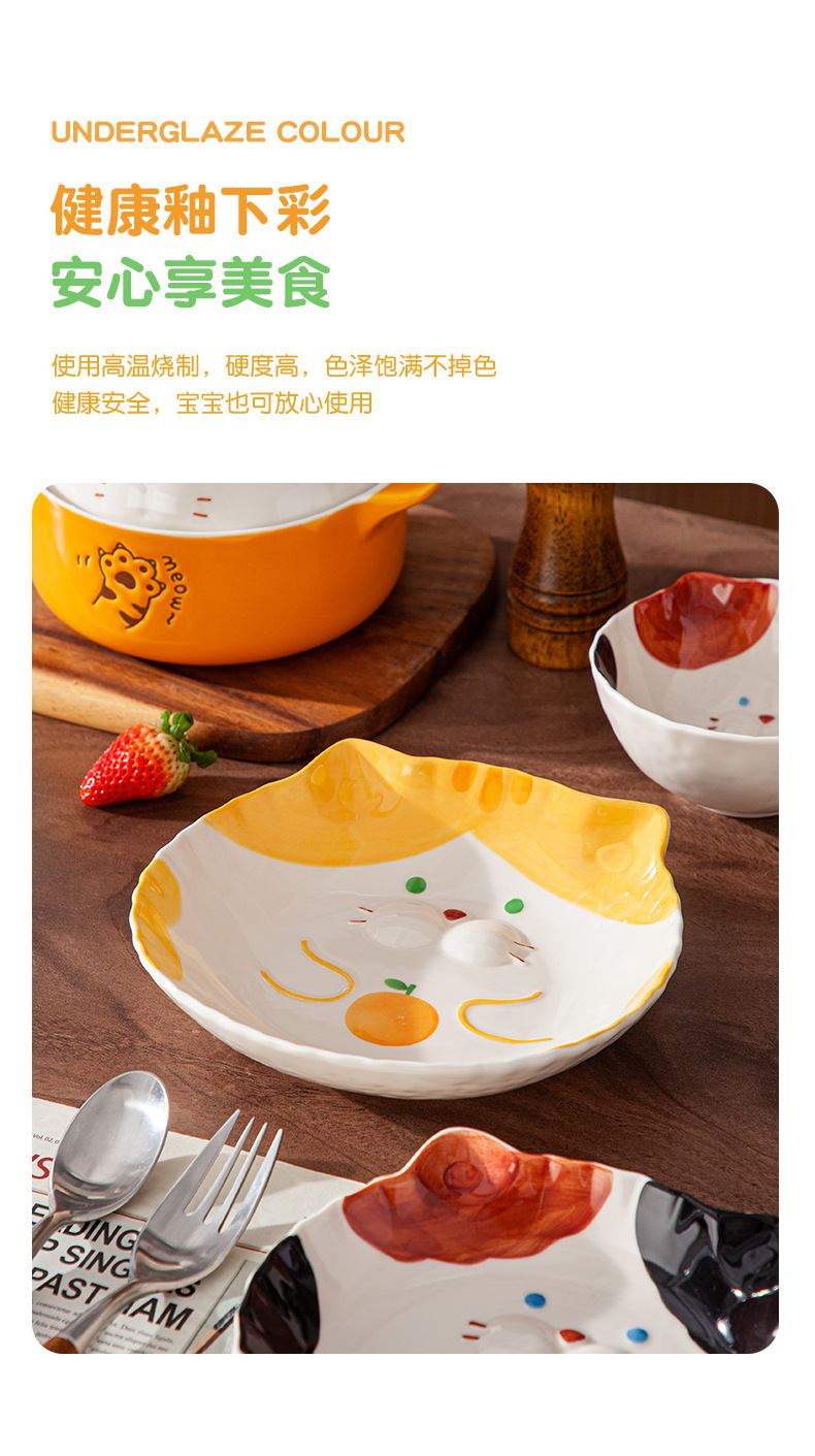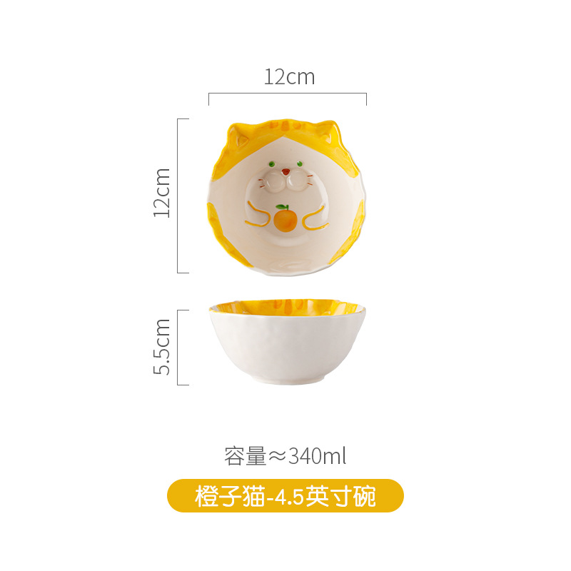 만화 도트캣 세라믹 인스턴트 국수 그릇, 귀여운 손으로 그린 샐러드 그릇, 뚜껑이 있는 유약 색상 수프 그릇, 손으로 그린 손잡이 그릇스토어 가기
