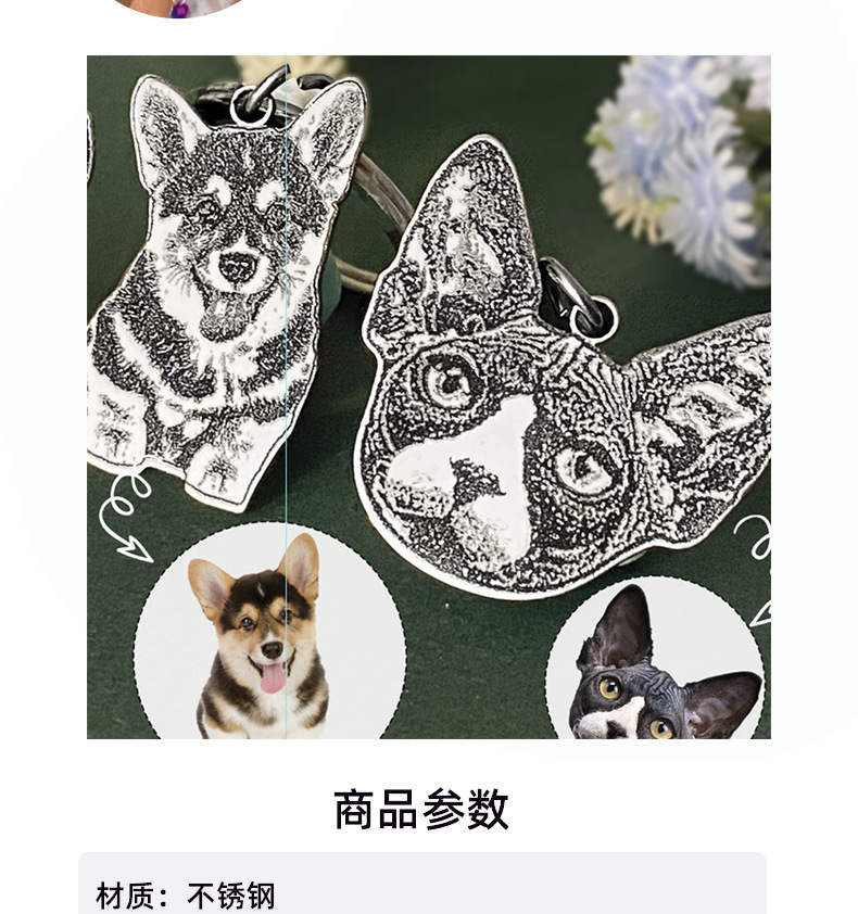 애완 동물 목걸이 펜던트 여성 크로스 국경 힙합 성격 키 체인 고양이 개 사진 만들기 스테인레스 스틸 여성 목걸이스토어 가기