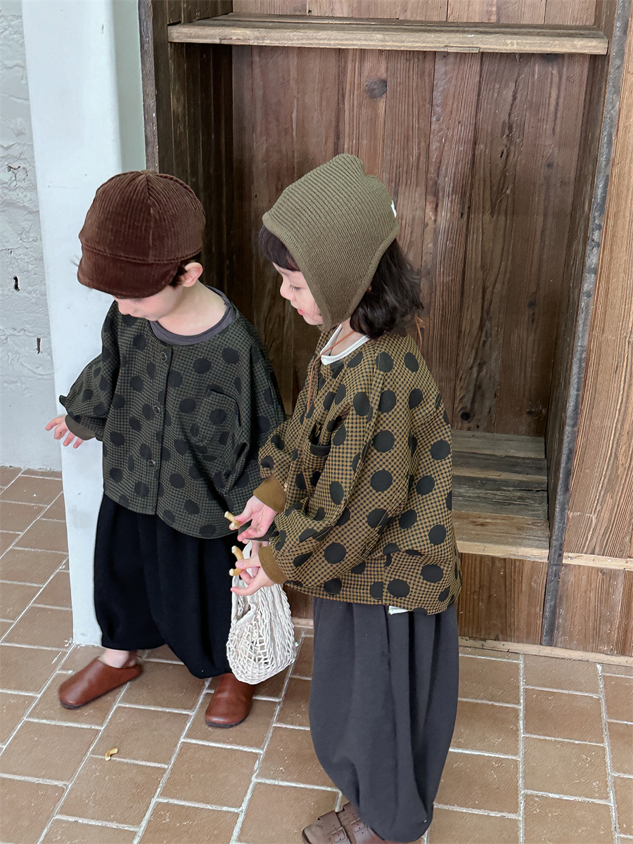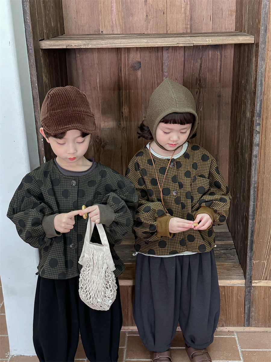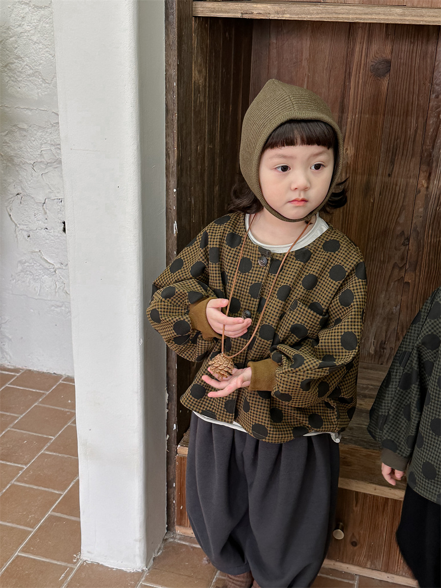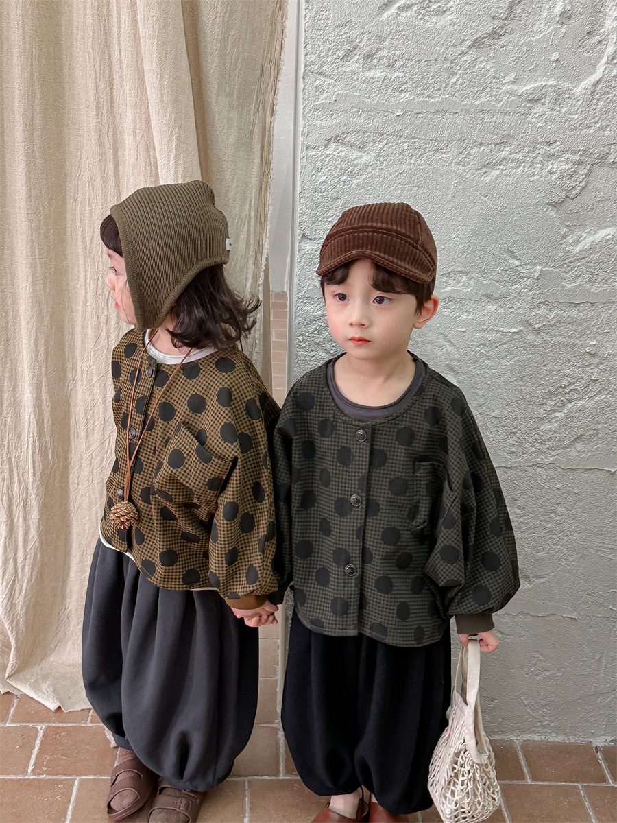 Jiaye 아동복 2025 봄 가을 신상 아동용 도트무늬 코트 재킷 남아 여아 스타일리쉬 라운드넥 긴팔 셔츠