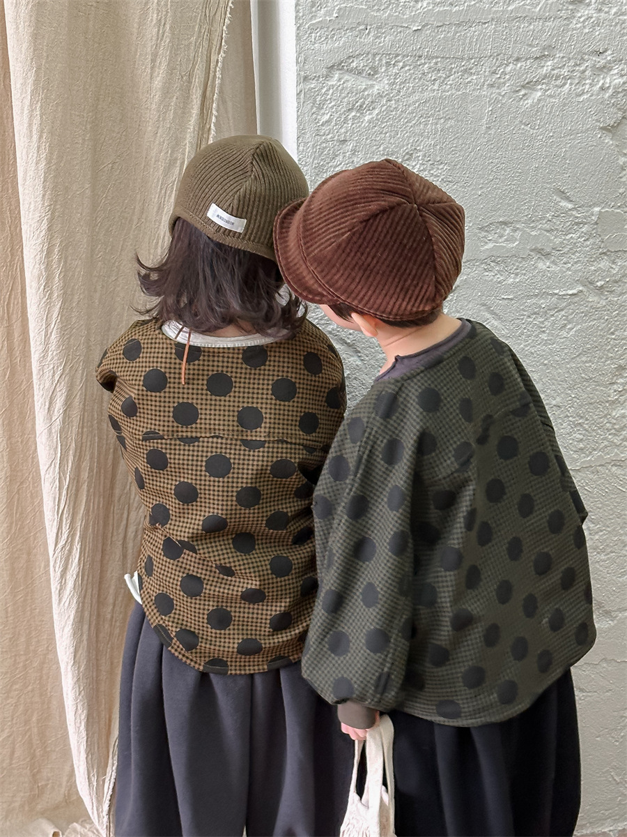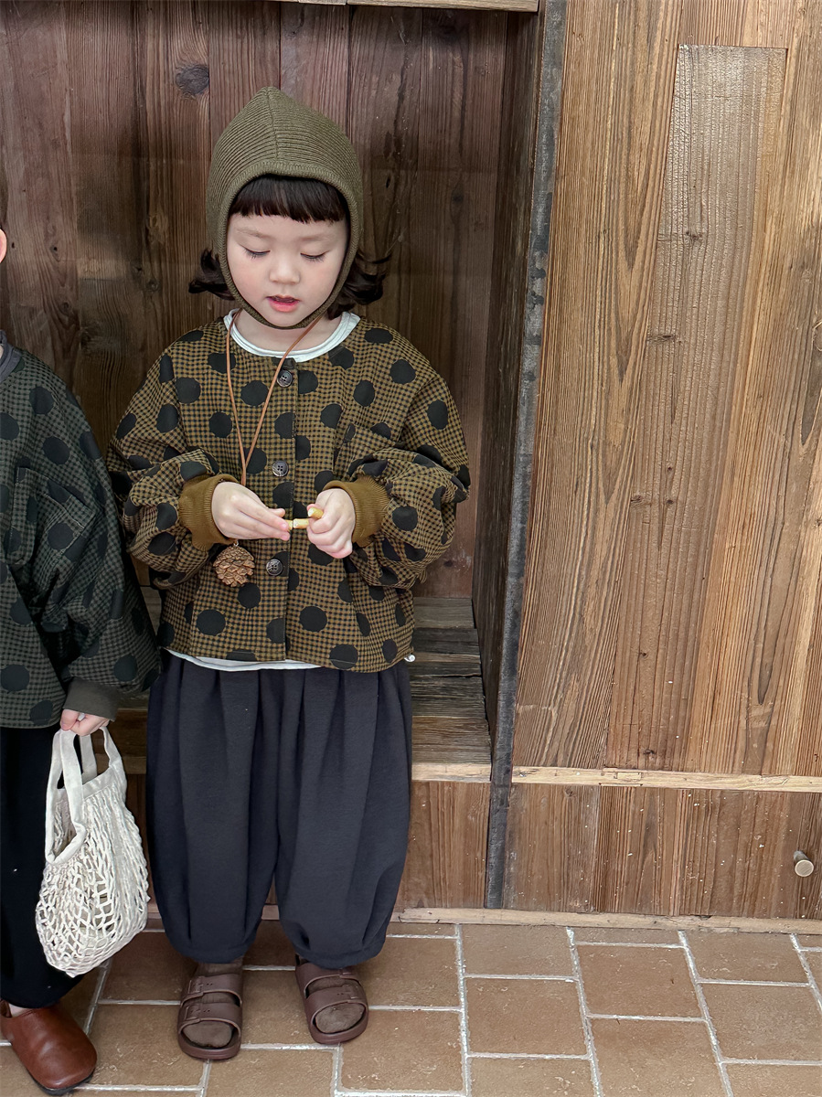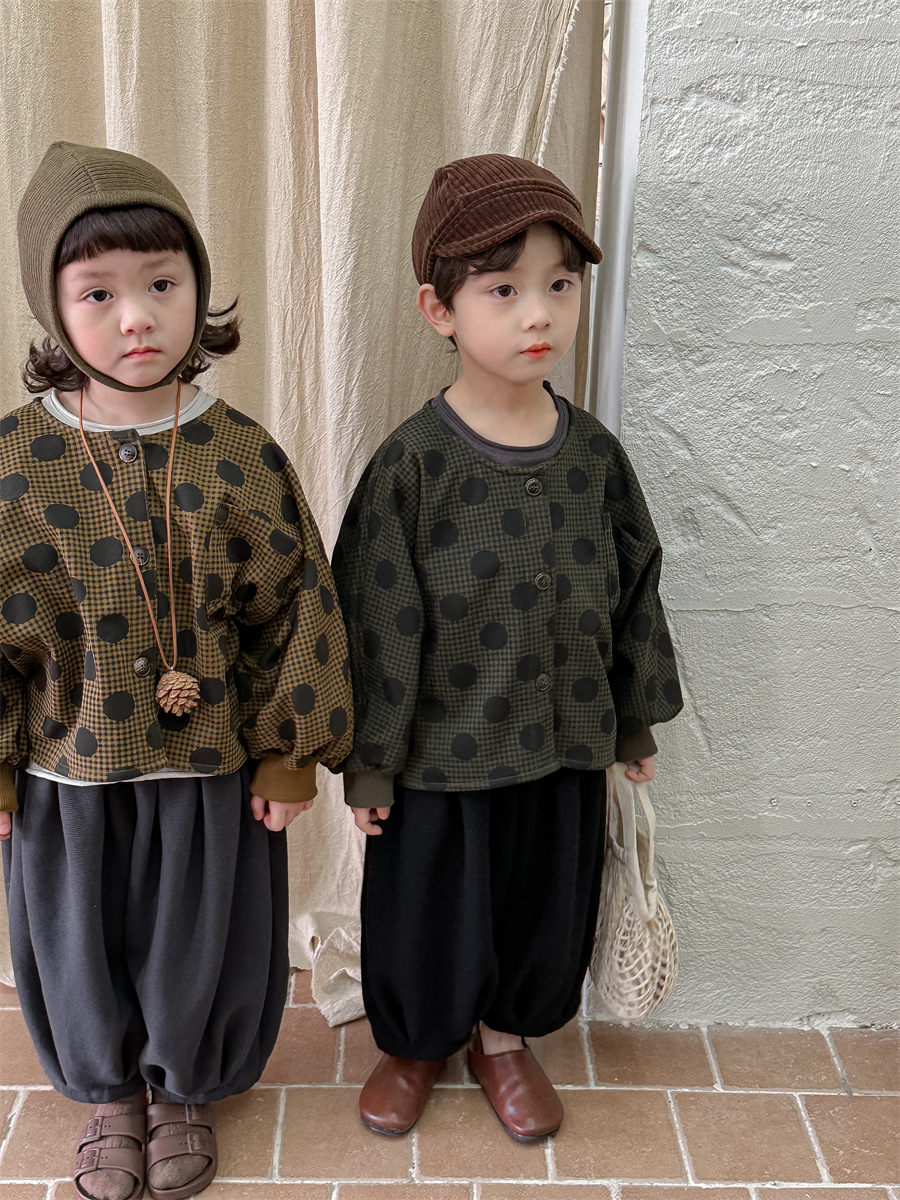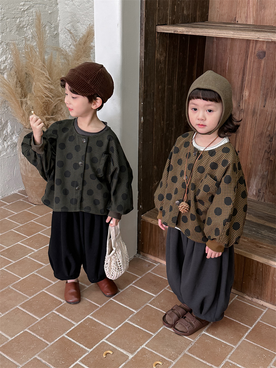 Jiaye 아동복 2025 봄 가을 신상 아동용 도트무늬 코트 재킷 남아 여아 스타일리쉬 라운드넥 긴팔 셔츠