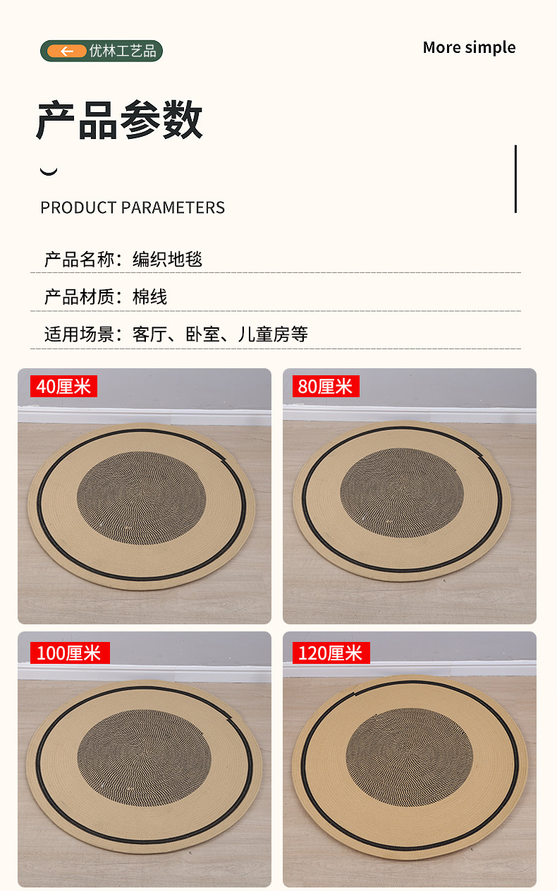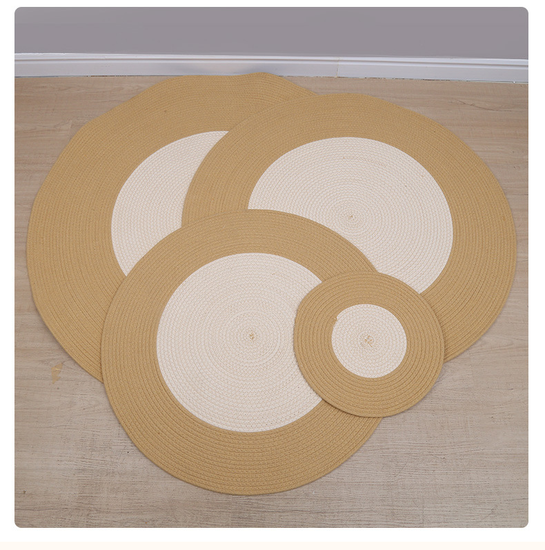 북유럽 면 및 리넨 짠 카펫 바닥 매트 면화 라인 로프 간단한 거실 침실 연구 비 슬립 발 매트 라운드 매트 바닥 매트스토어 가기