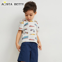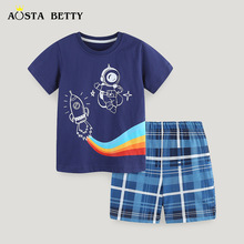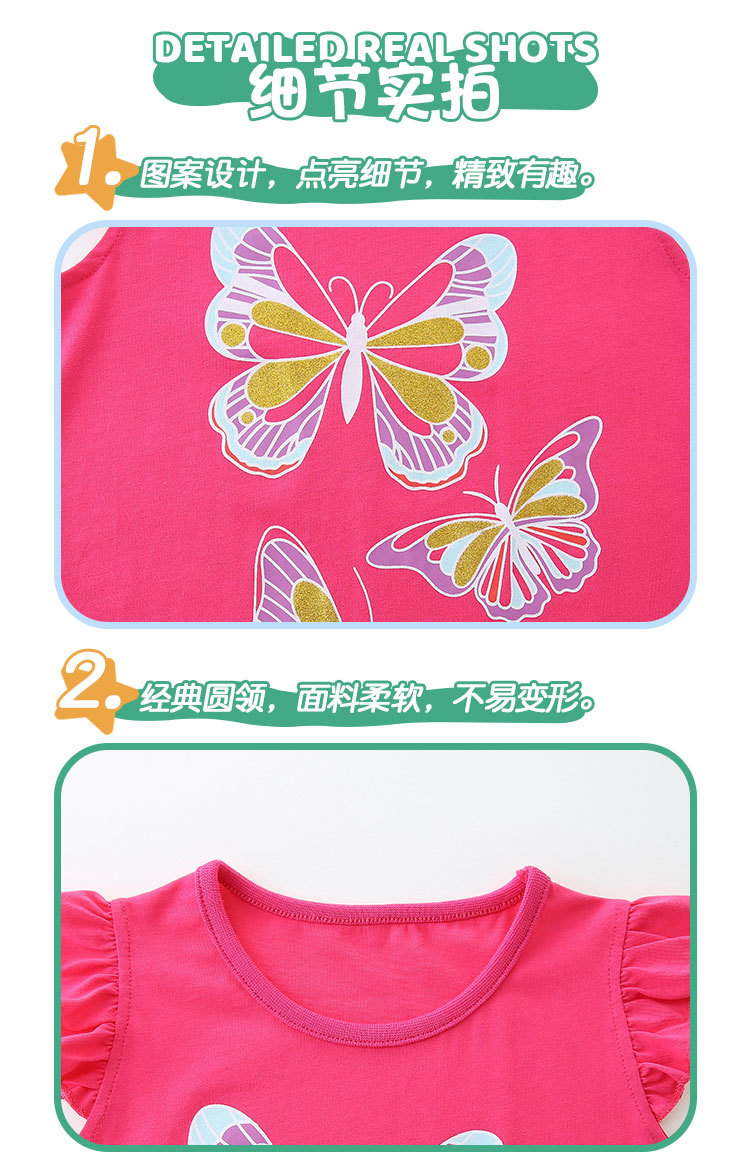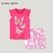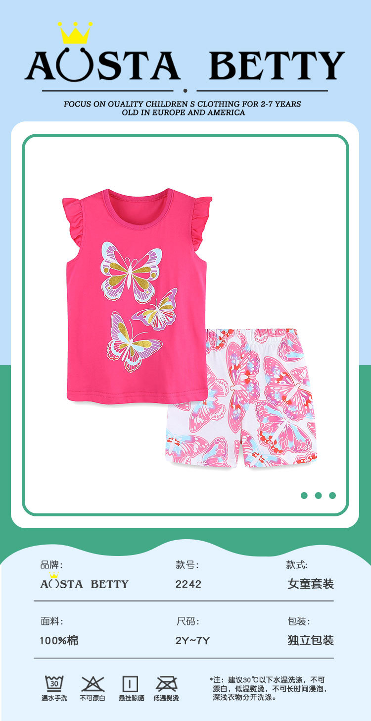 유럽과 미국 스타일의 소녀 반팔 양복 여름 신작 아동 의류 도매 소녀 나비 프린트 티셔츠 투피스 세트스토어 가기