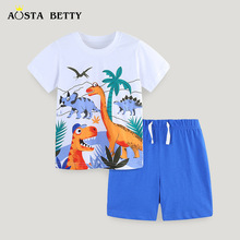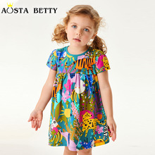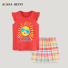 유럽과 미국 스타일의 소녀 반팔 양복 여름 신작 아동 의류 도매 소녀 나비 프린트 티셔츠 투피스 세트
