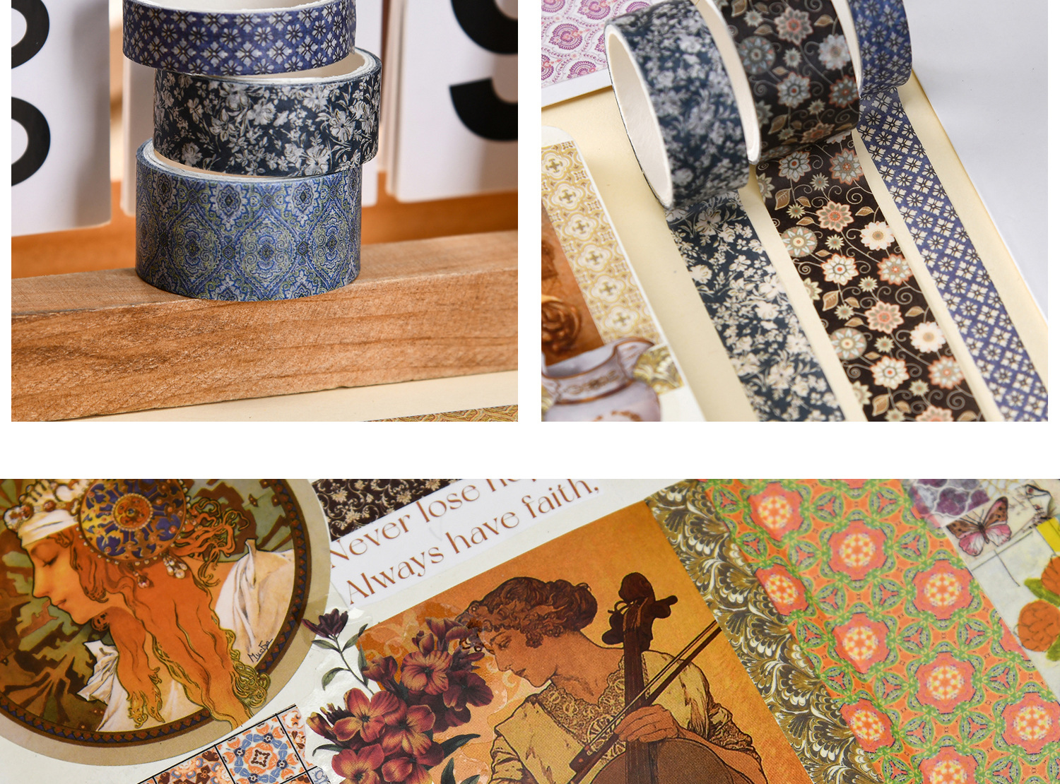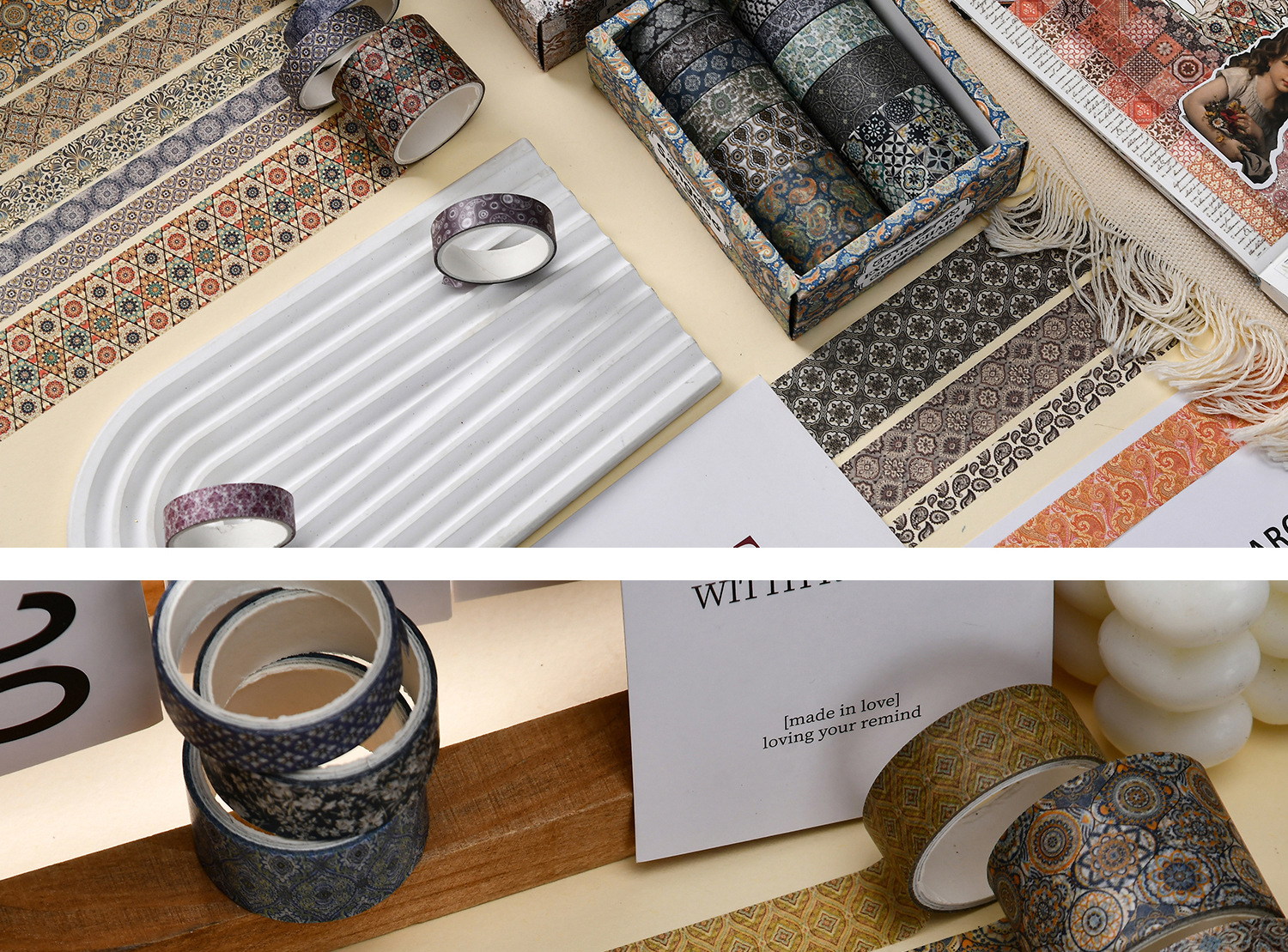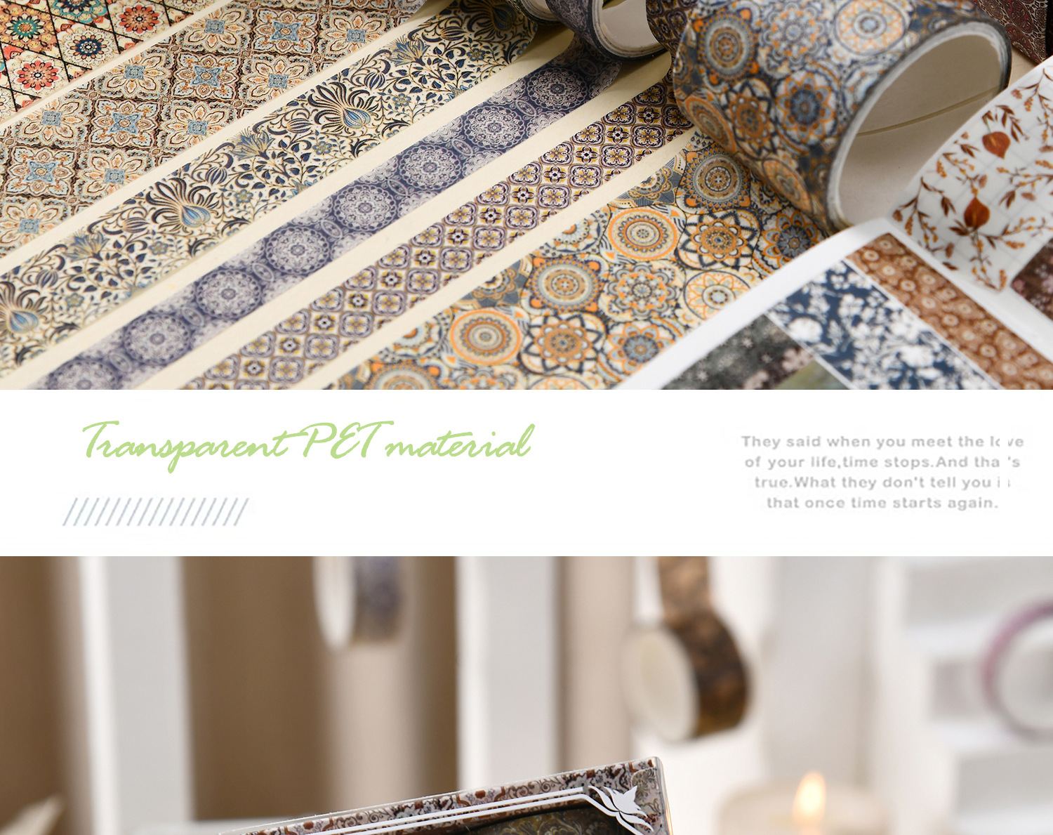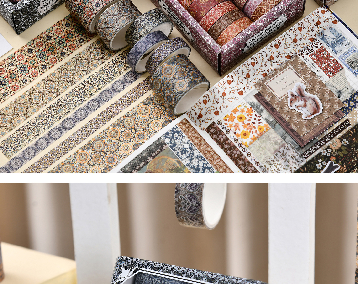 이국적인 스타일 도금 종이 테이프 빈티지 저널 테이프 DIY 장식 소재 스티커 필름 세트 재고