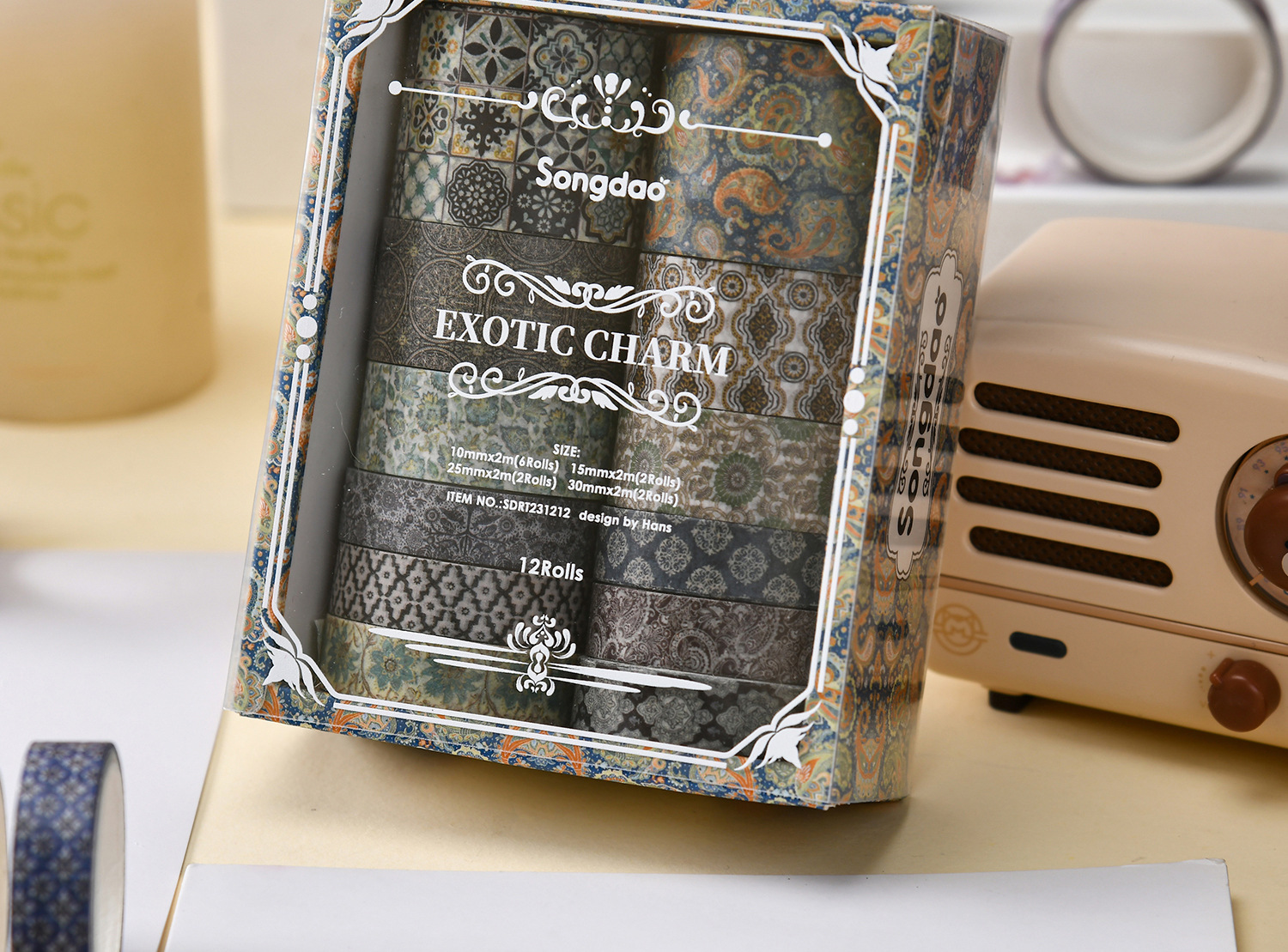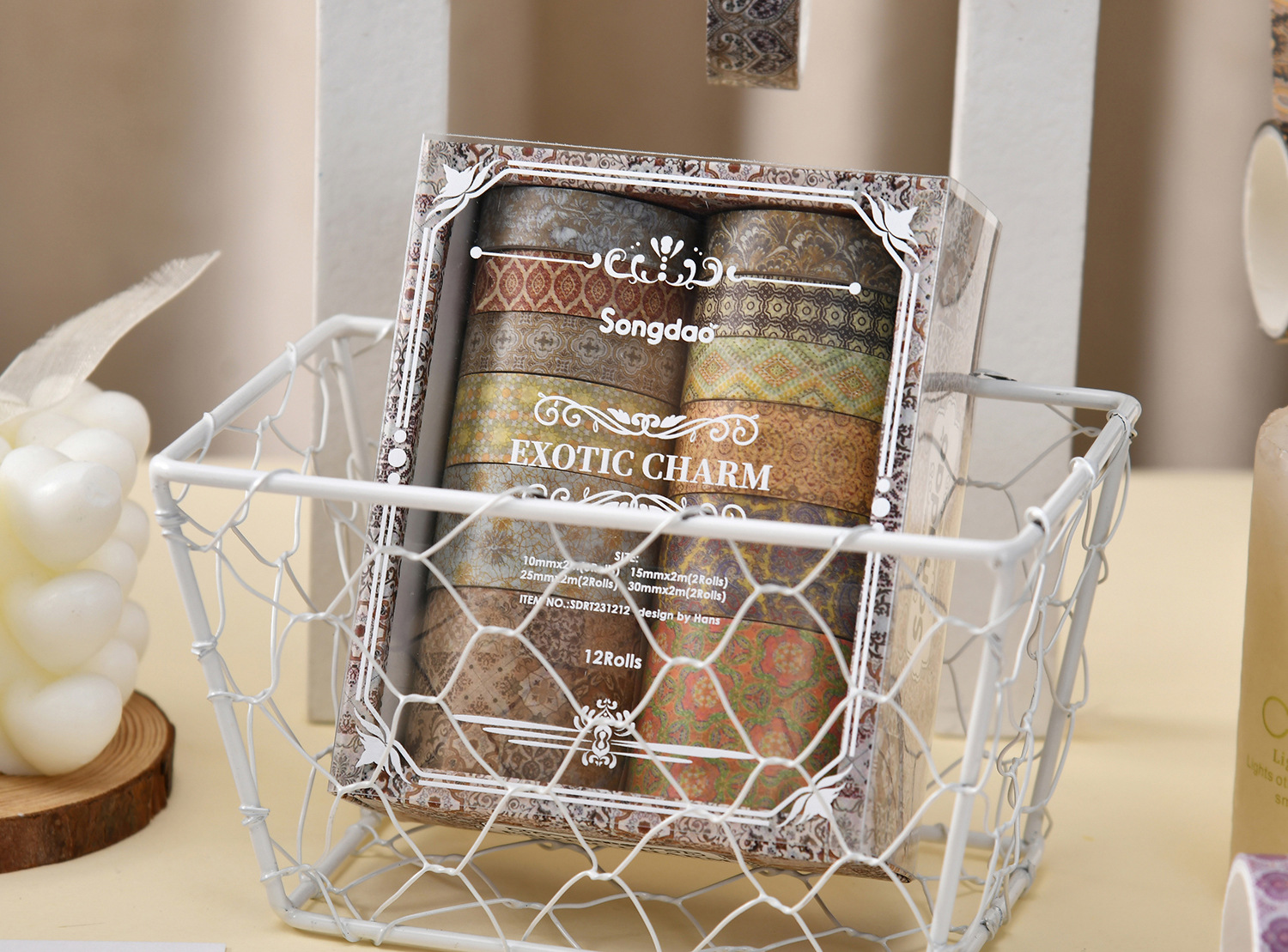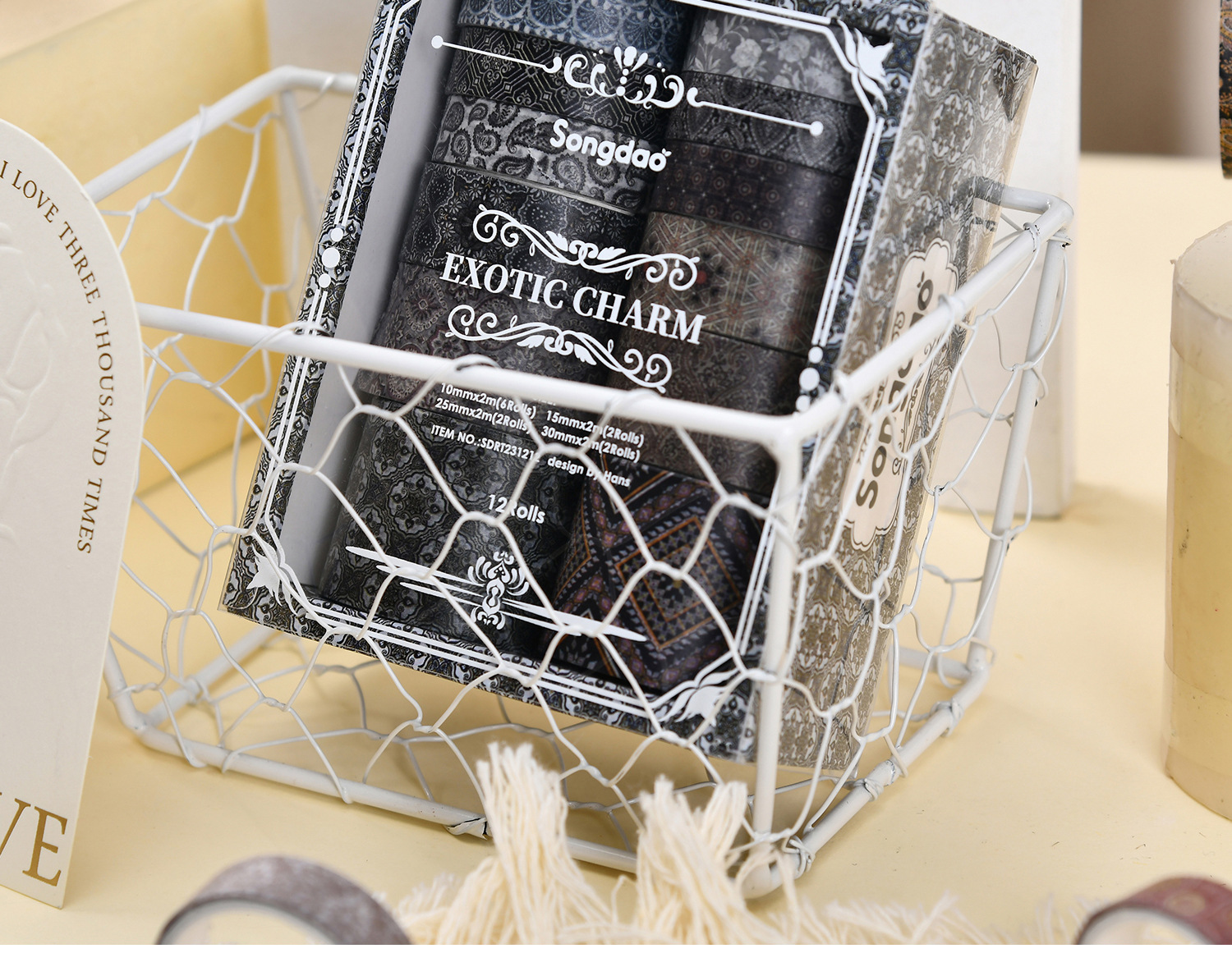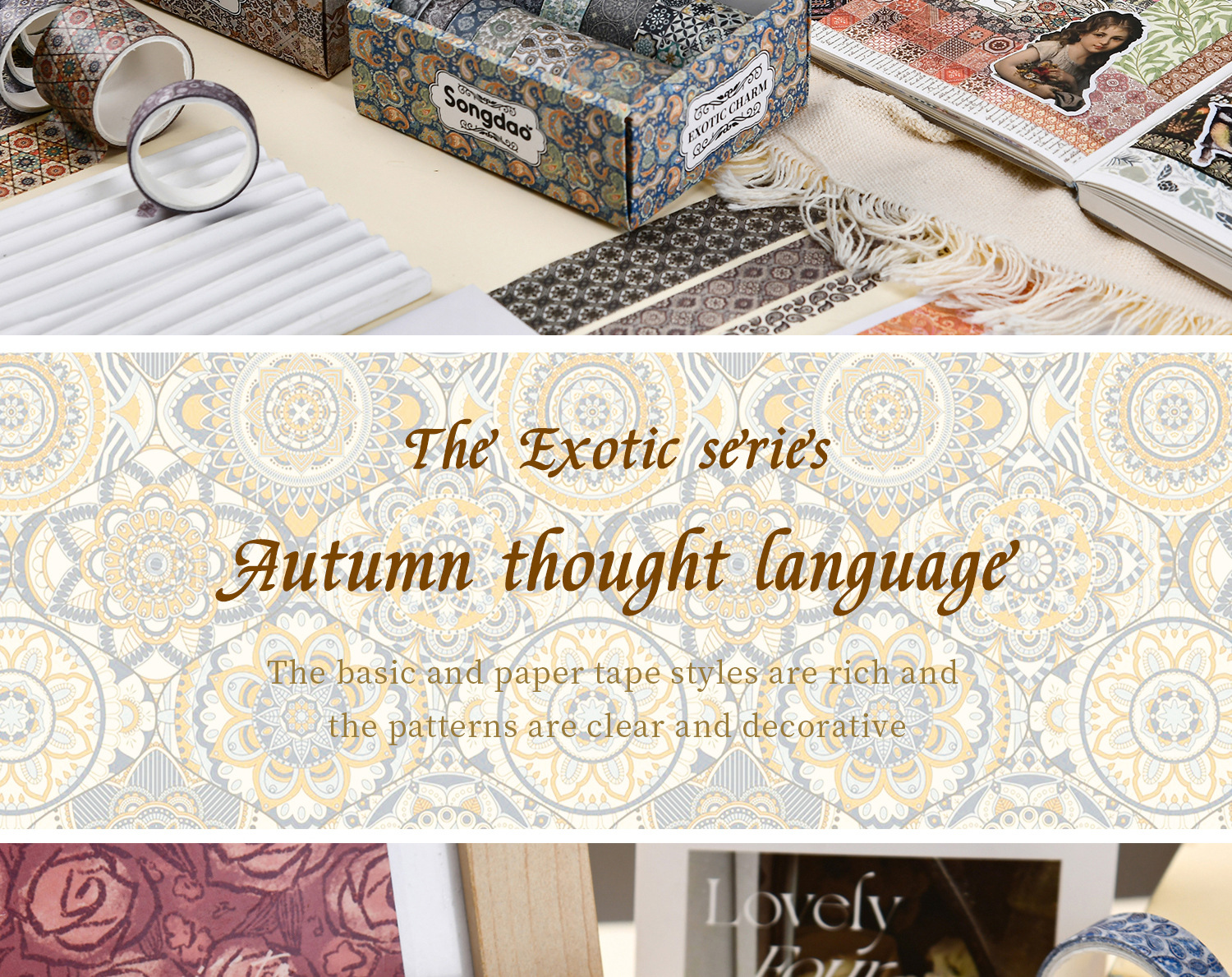 이국적인 스타일 도금 종이 테이프 빈티지 저널 테이프 DIY 장식 소재 스티커 필름 세트 재고