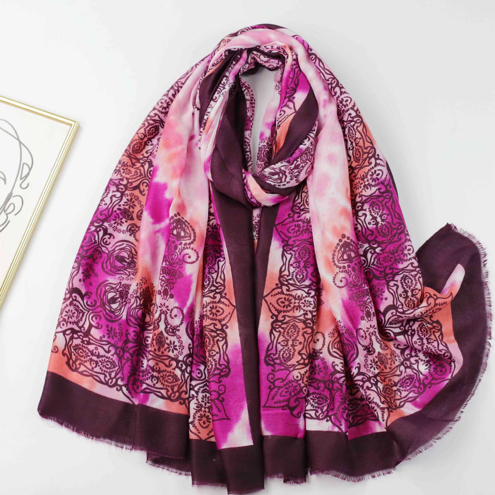공장 판매 해외 무역 국경 초록 하이나 새틴 인쇄 긴 수건 여행 휴일 선 스크린 따뜻한 목도리스토어 가기