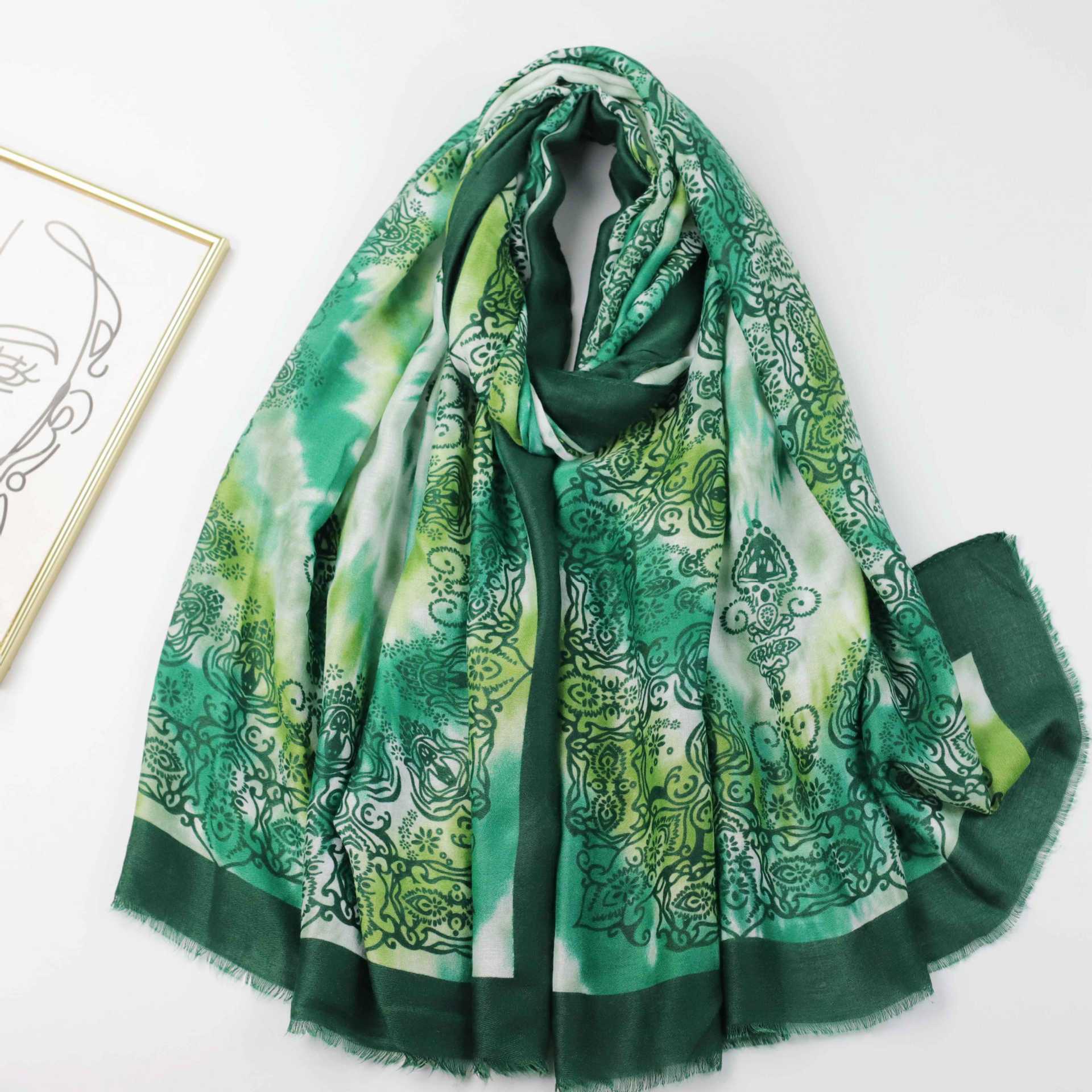 공장 판매 해외 무역 국경 초록 하이나 새틴 인쇄 긴 수건 여행 휴일 선 스크린 따뜻한 목도리