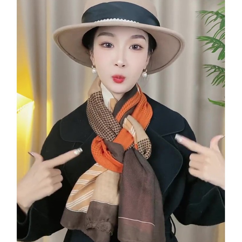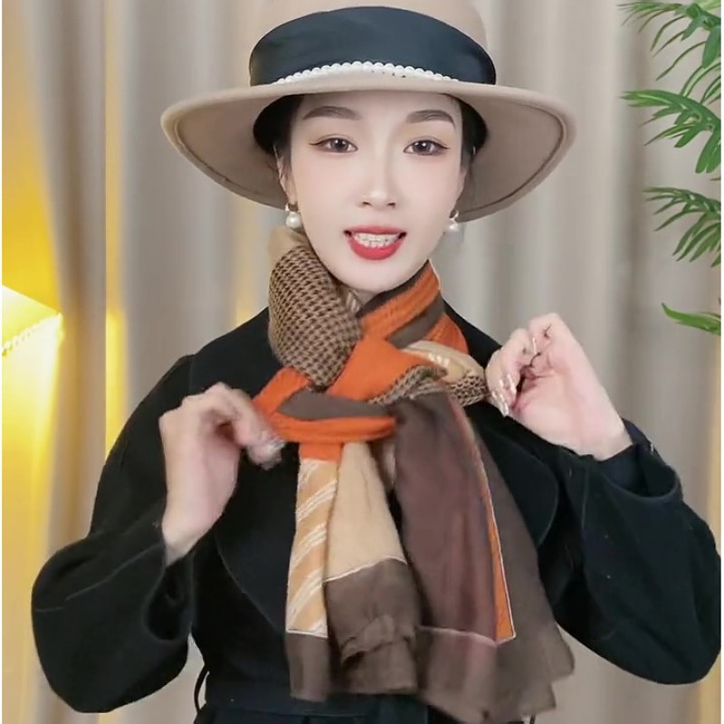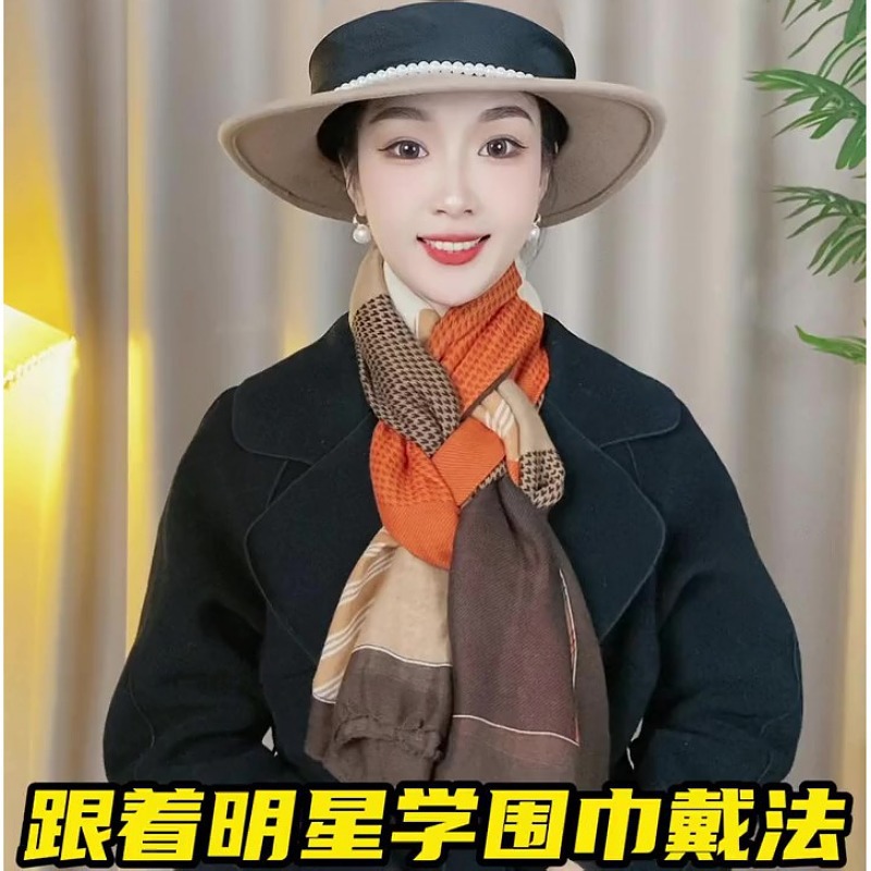 패치 워크 천 새 오렌지 얇은 사계절 패션 목도리 겉옷 여성의 이중 사용 긴 스카프 봄과 가을 겨울 서양식스토어 가기