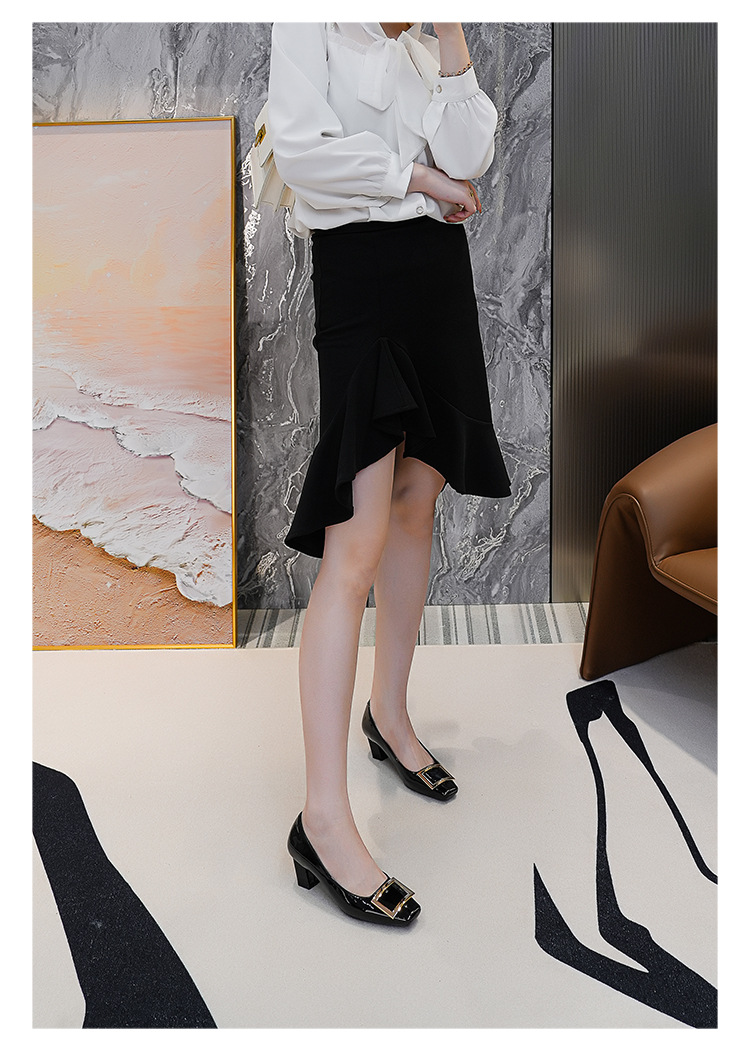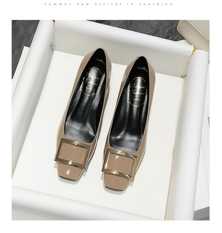 RV 싱글 레이어 신발 여성용 2024 새로운 스틸레토 하이힐 봄과 겨울 스퀘어 헤드 스퀘어 버클 슬리밍 편안한 얕은 입 진짜 가죽 섹시한 우아한