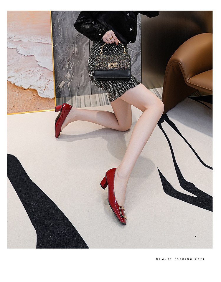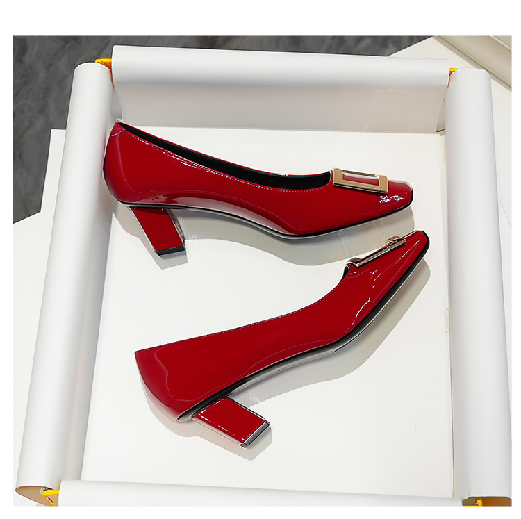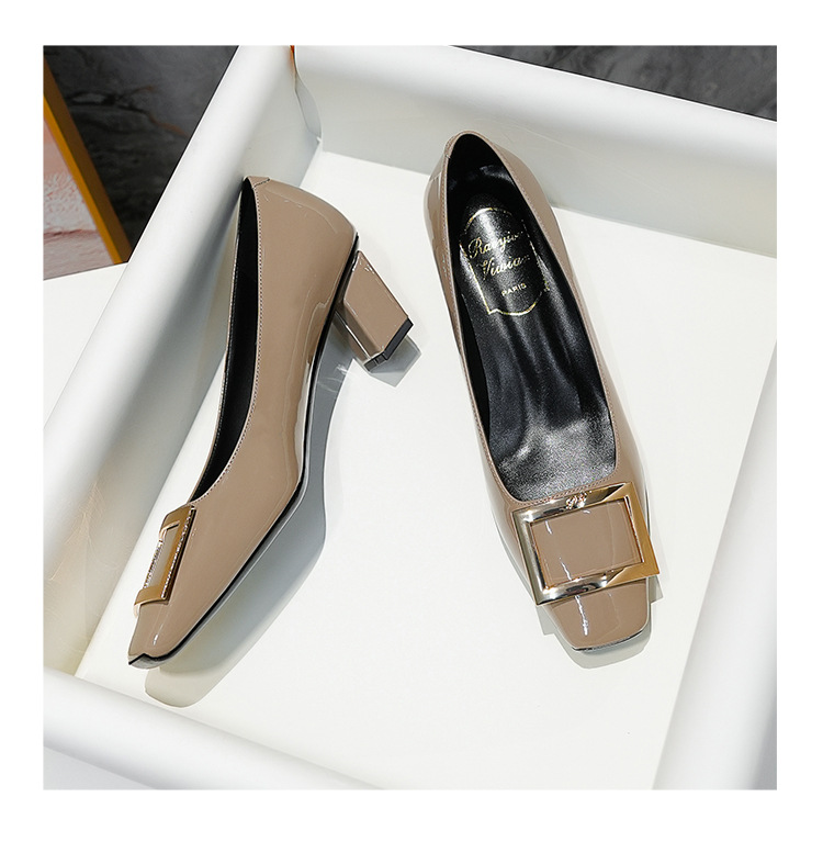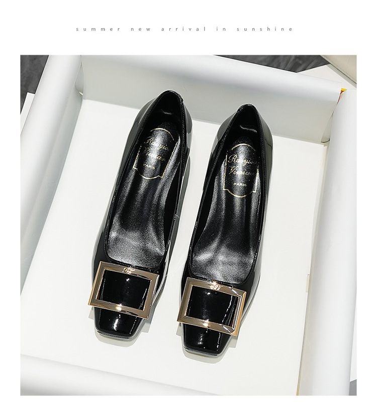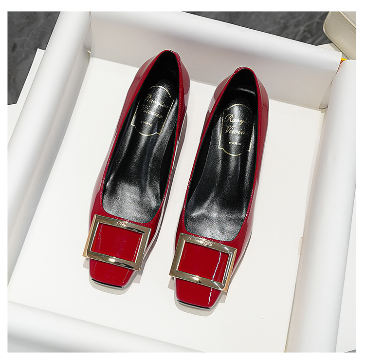 RV 싱글 레이어 신발 여성용 2024 새로운 스틸레토 하이힐 봄과 겨울 스퀘어 헤드 스퀘어 버클 슬리밍 편안한 얕은 입 진짜 가죽 섹시한 우아한스토어 가기