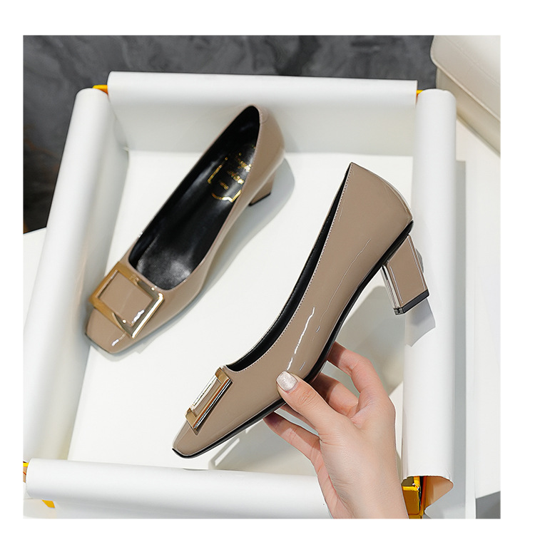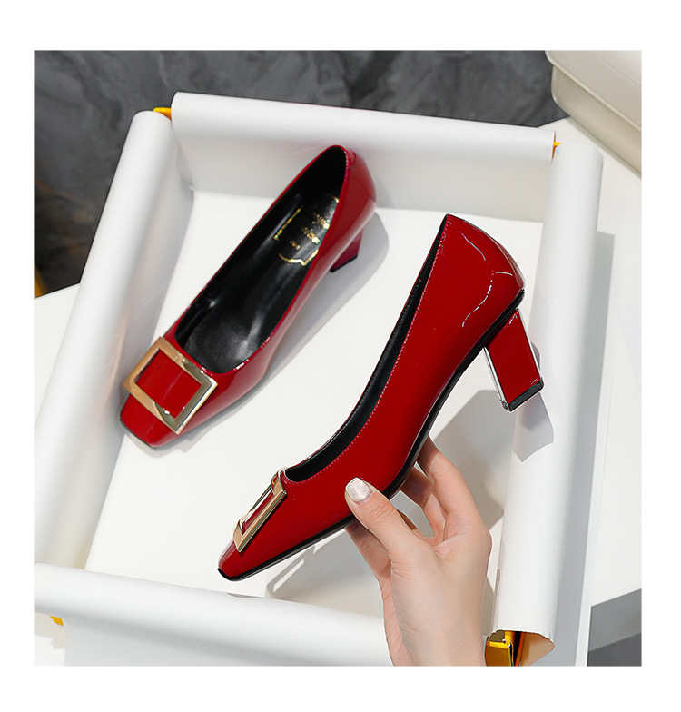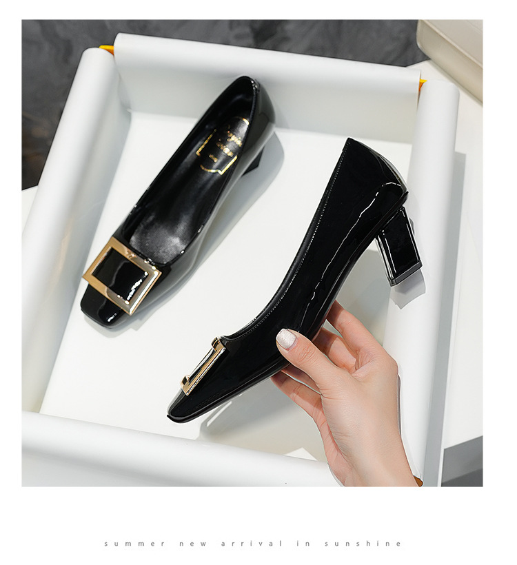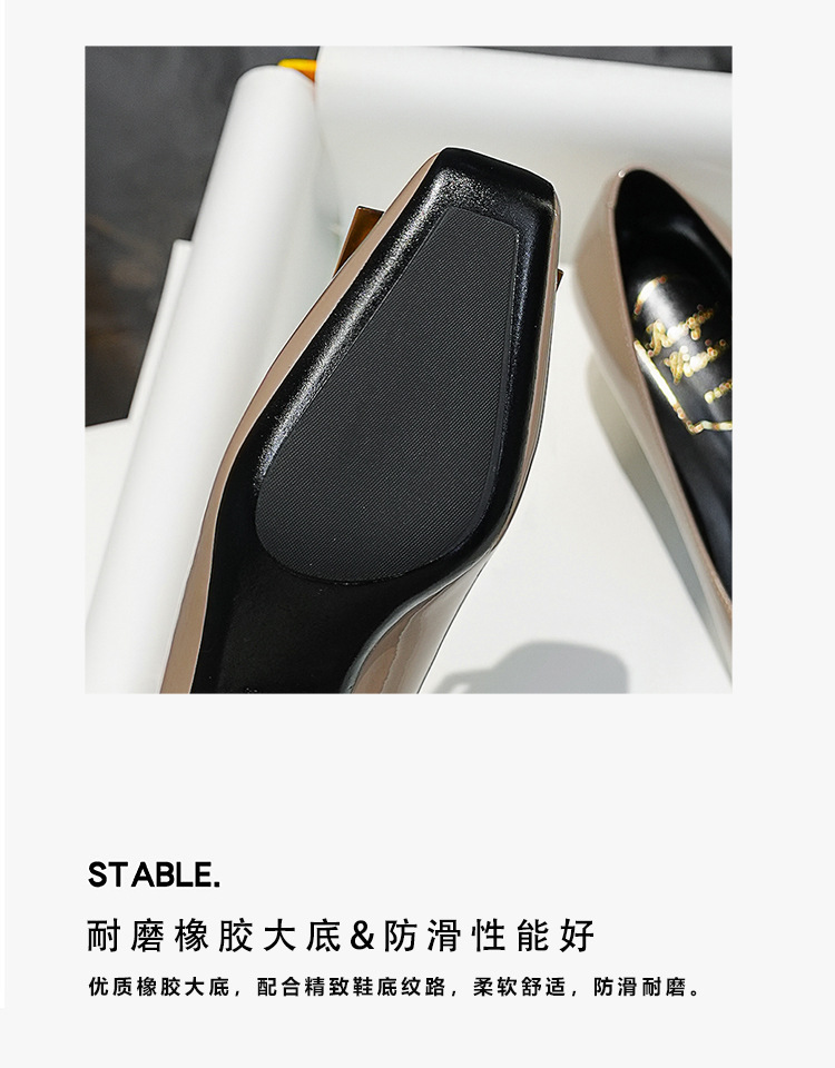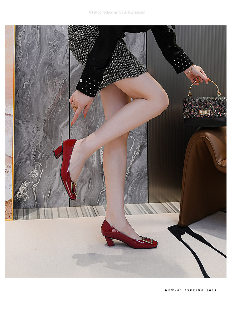 RV 싱글 레이어 신발 여성용 2024 새로운 스틸레토 하이힐 봄과 겨울 스퀘어 헤드 스퀘어 버클 슬리밍 편안한 얕은 입 진짜 가죽 섹시한 우아한스토어 가기