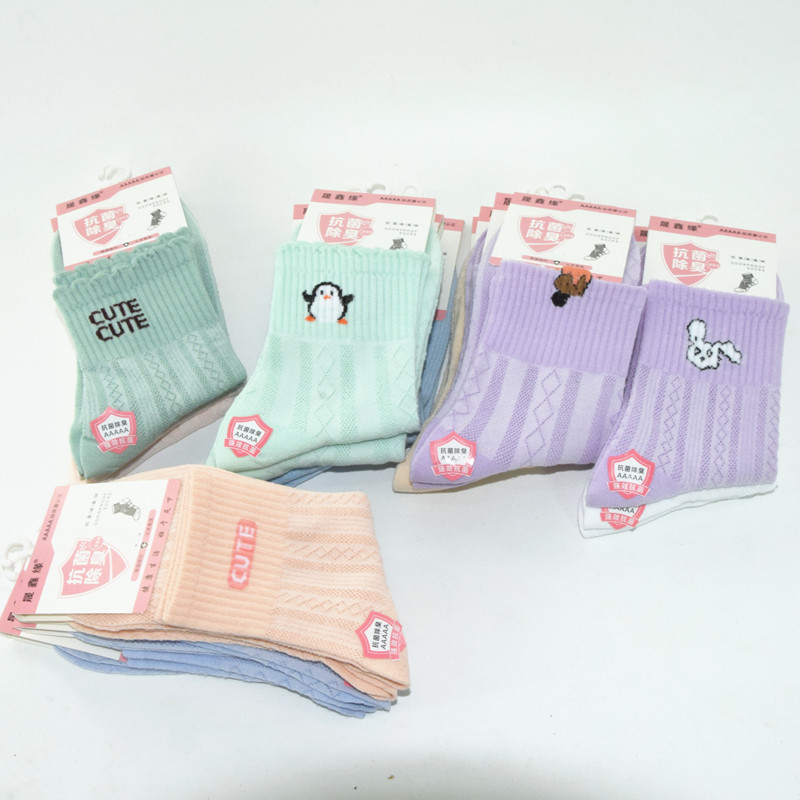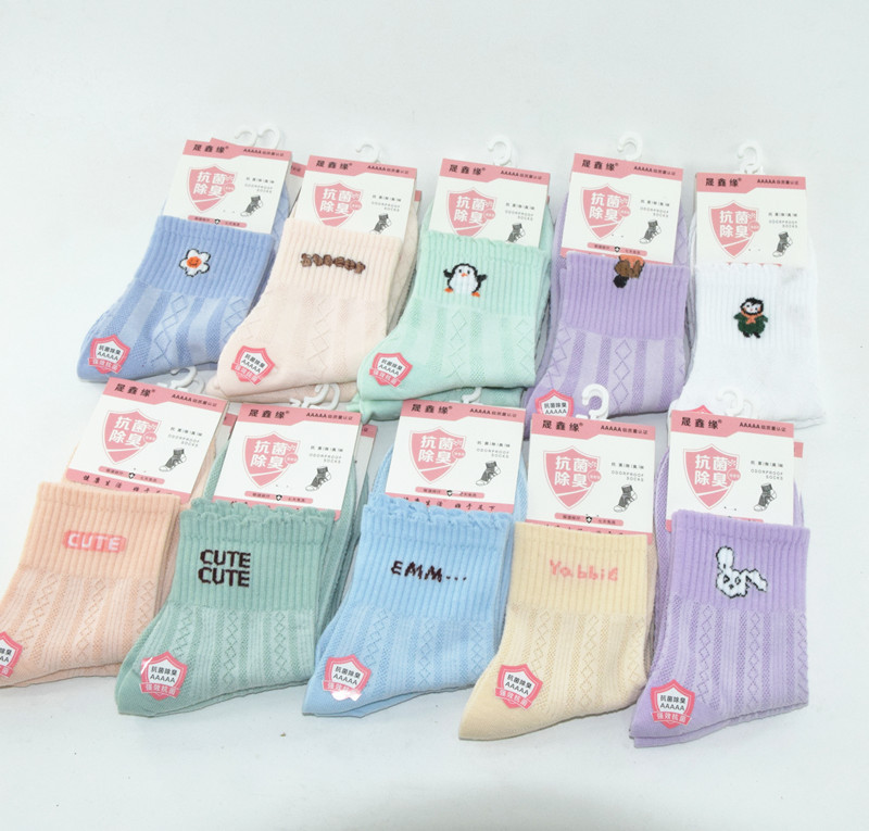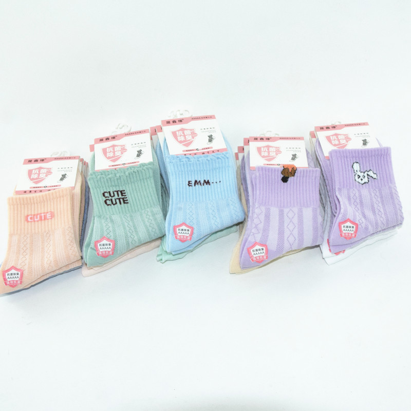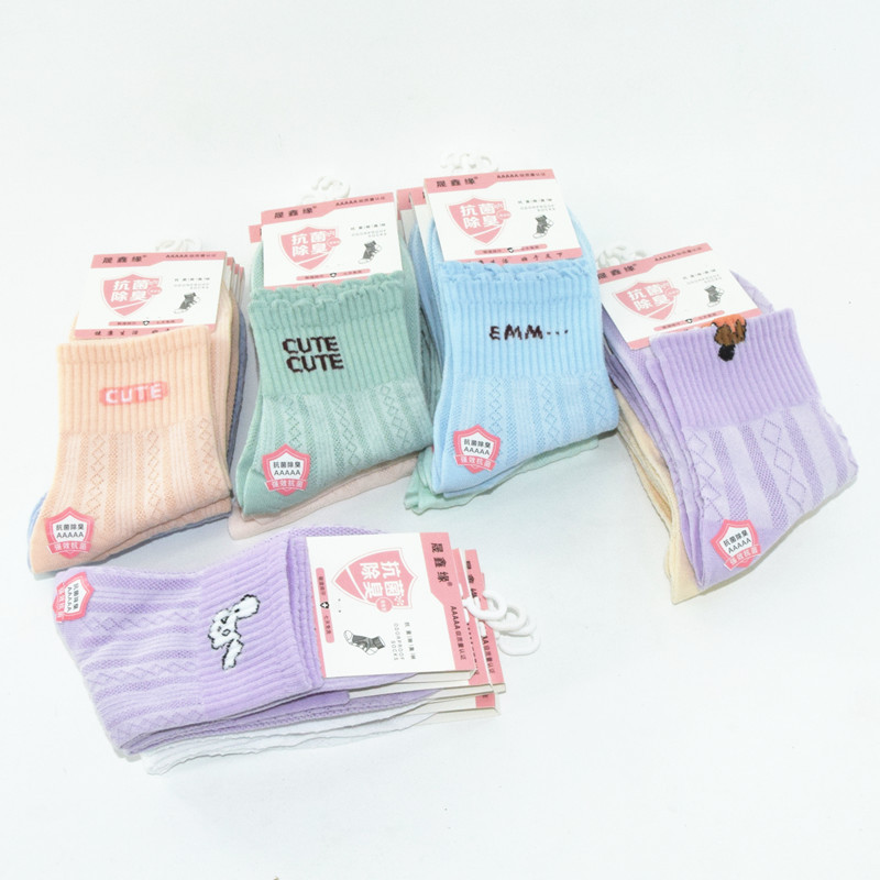 도매 여성의 중간 송아지 북동쪽 면화 양말 봄과 가을 통기성 편안한 만화 양말 캔디 컬러 스포츠 양말 새로운스토어 가기