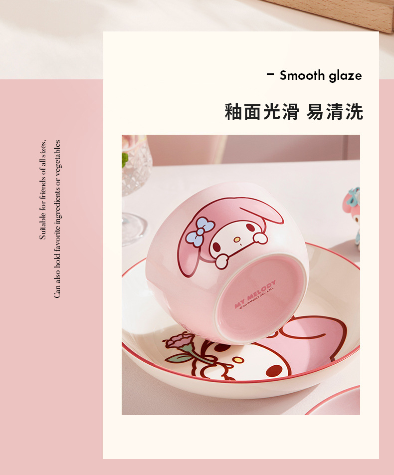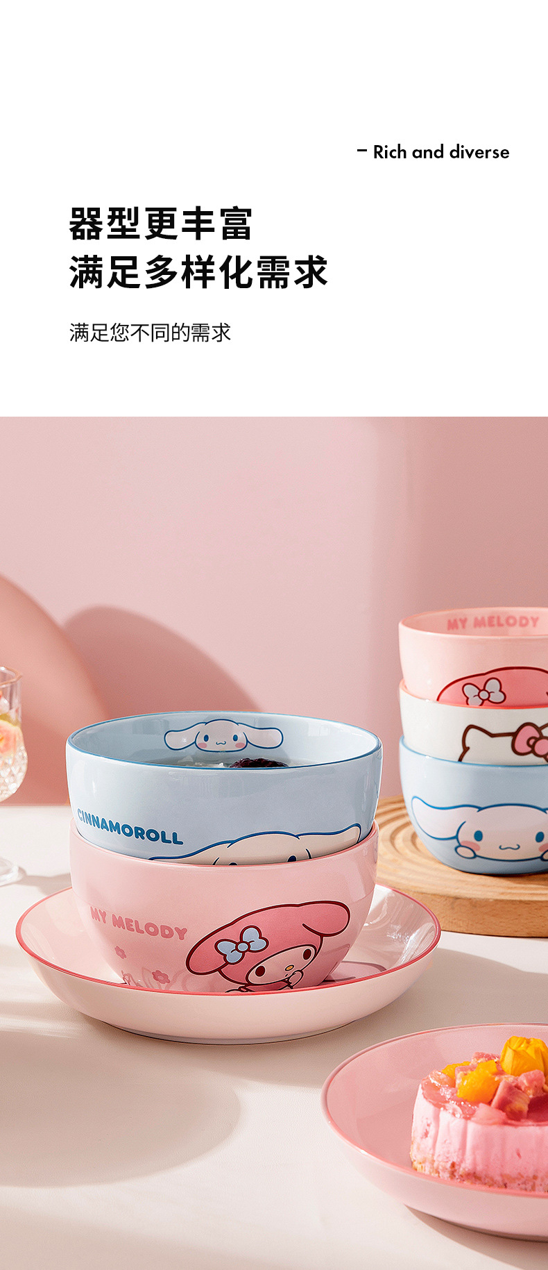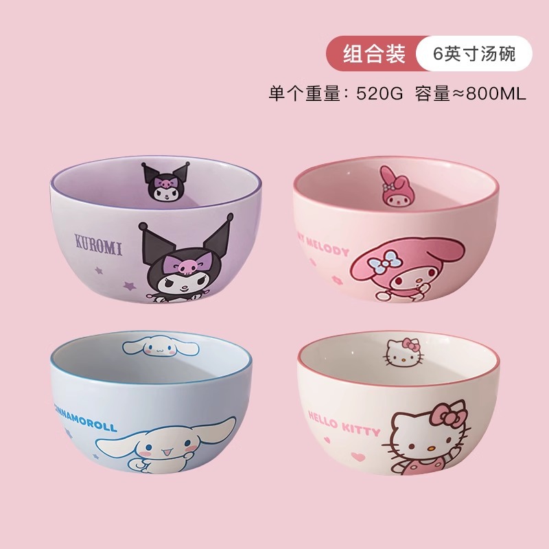 산리오 원형 만화 세라믹 밥그릇 가정용 국수 그릇 귀여운 어린이용 고급 식기 4.5inch 그릇M