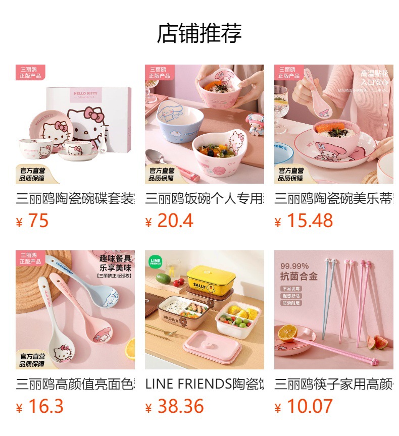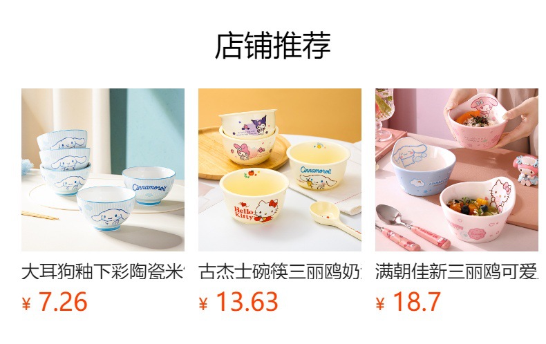 산리오 원형 만화 세라믹 밥그릇 가정용 국수 그릇 귀여운 어린이용 고급 식기 4.5inch 그릇M스토어 가기