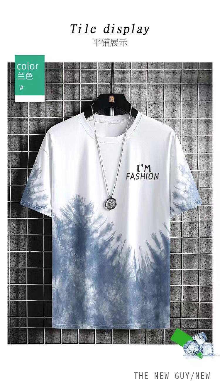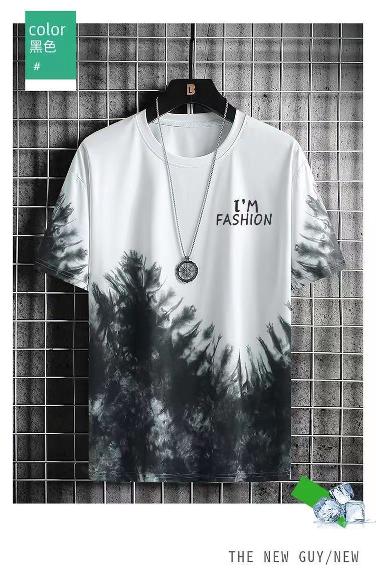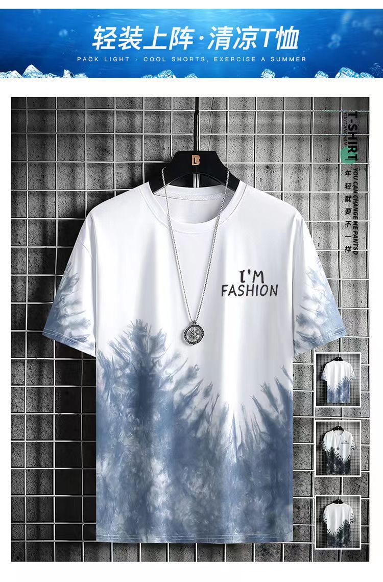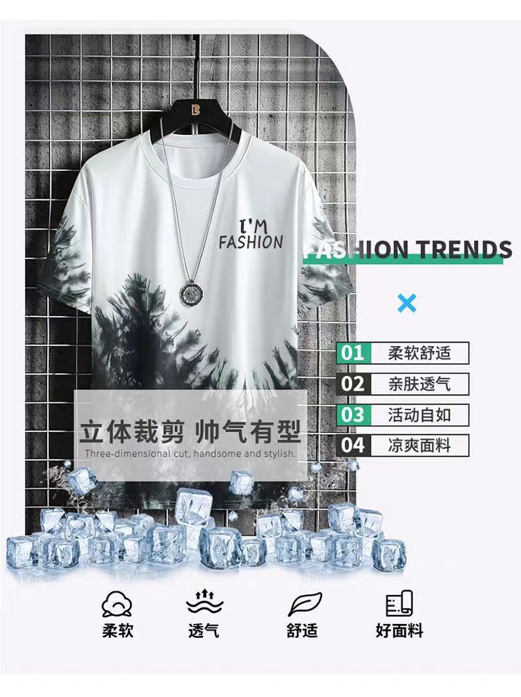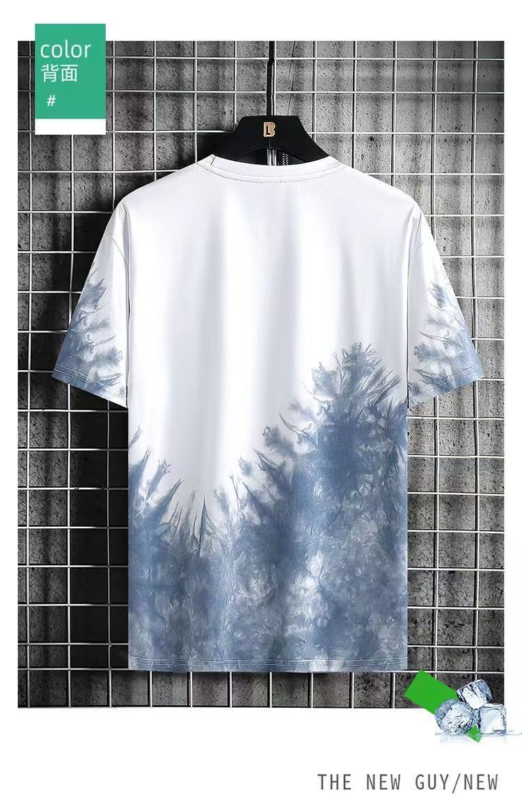 그라디언트 아이스 실크 반팔 2024 새로운 트렌디 남성복 올 매치 캐주얼 티셔츠 여름 쿨 남성 국가 스타일 탑스토어 가기
