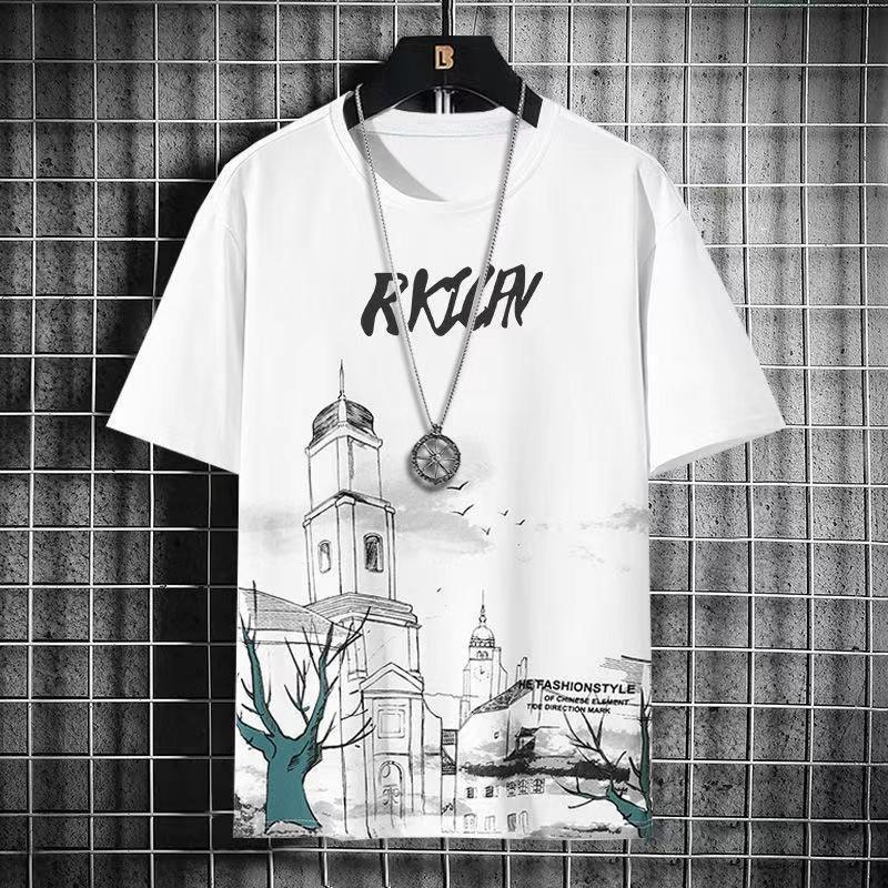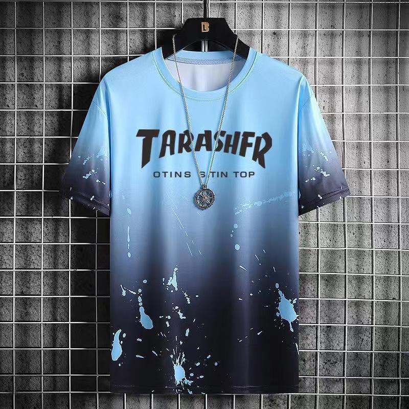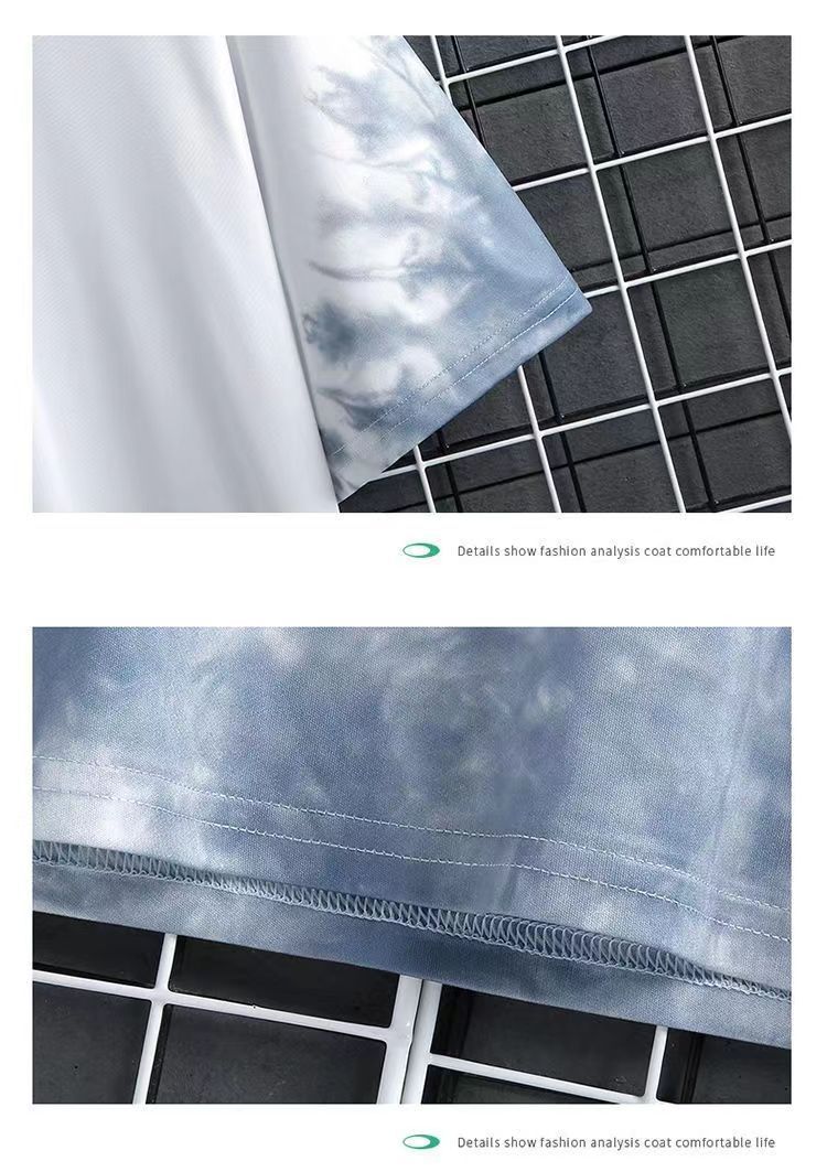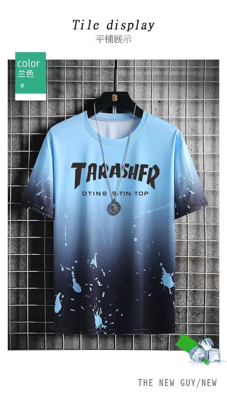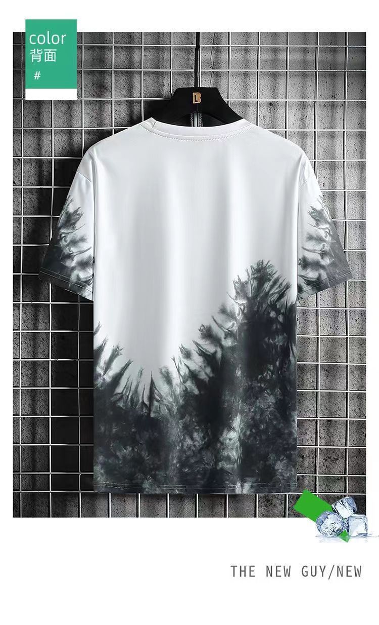 그라디언트 아이스 실크 반팔 2024 새로운 트렌디 남성복 올 매치 캐주얼 티셔츠 여름 쿨 남성 국가 스타일 탑스토어 가기