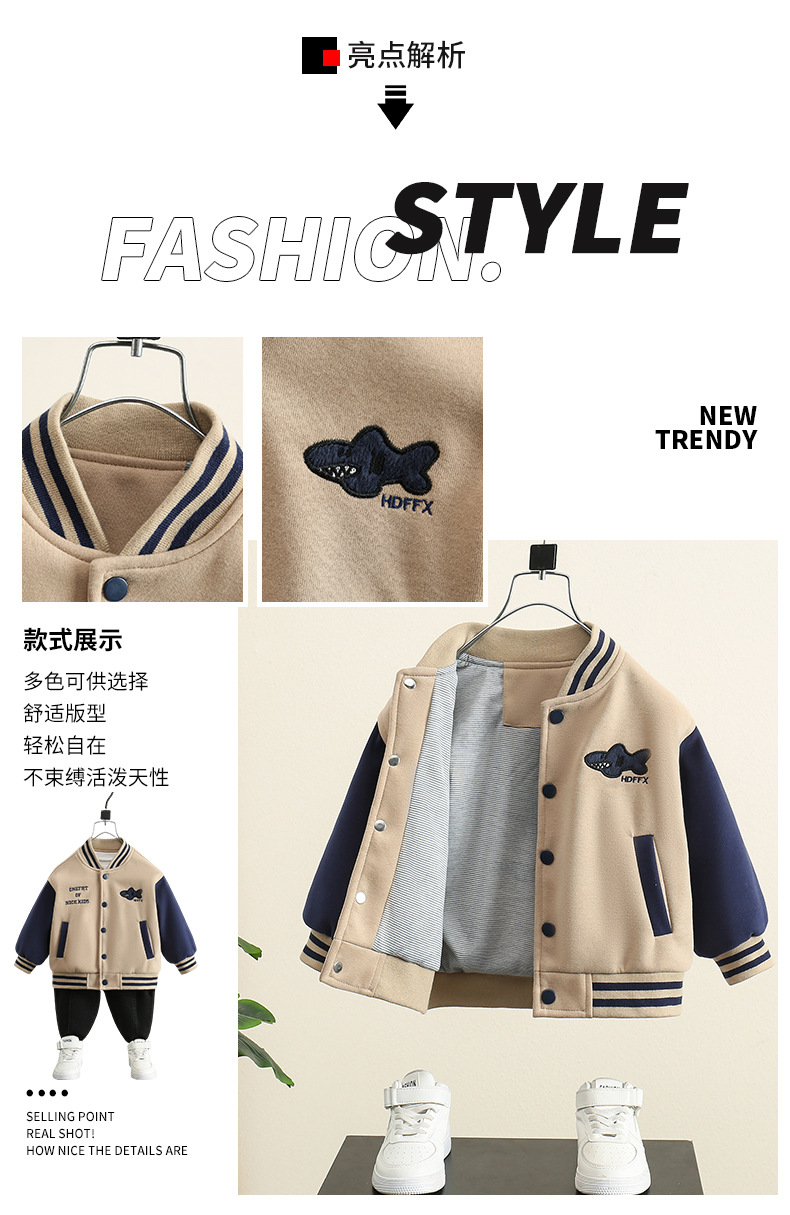 어린이 의류 소년 봄과 가을 재킷 2024 새로운 서양식 아기 잘 생긴 유행 옷 어린이 봄 야구 재킷스토어 가기