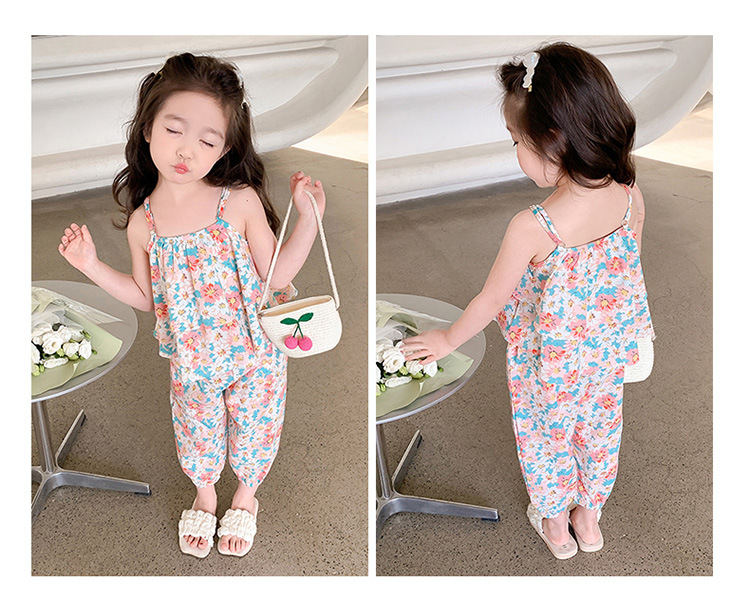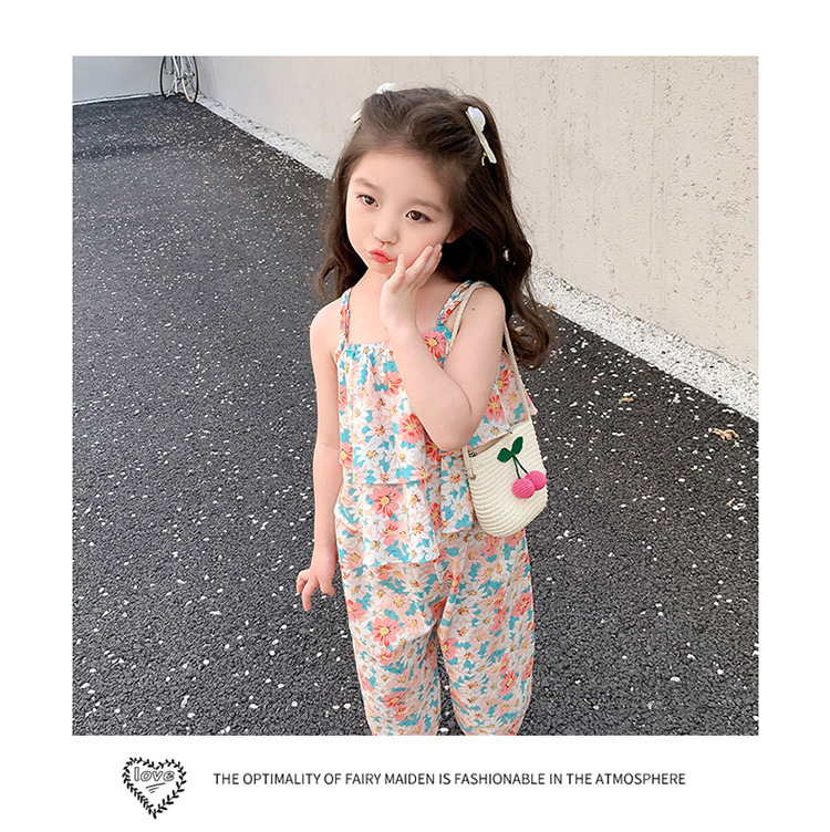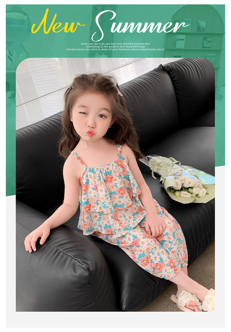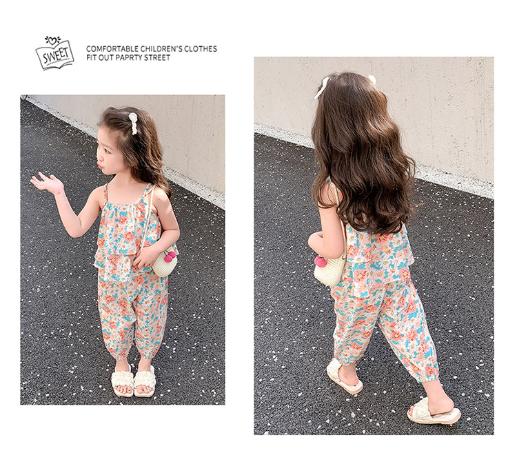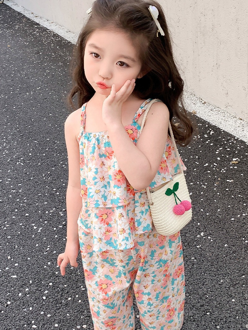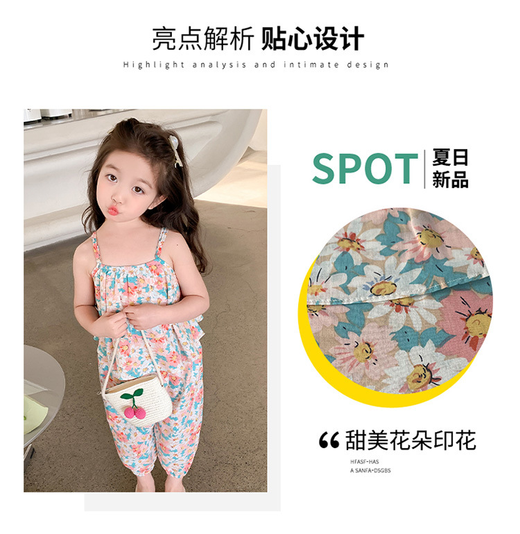 소녀의 세트 여성 여름 2024 새로운 스타일 데이지 소녀의 두 조각 꽃 여름 옷 아동복 아동복스토어 가기