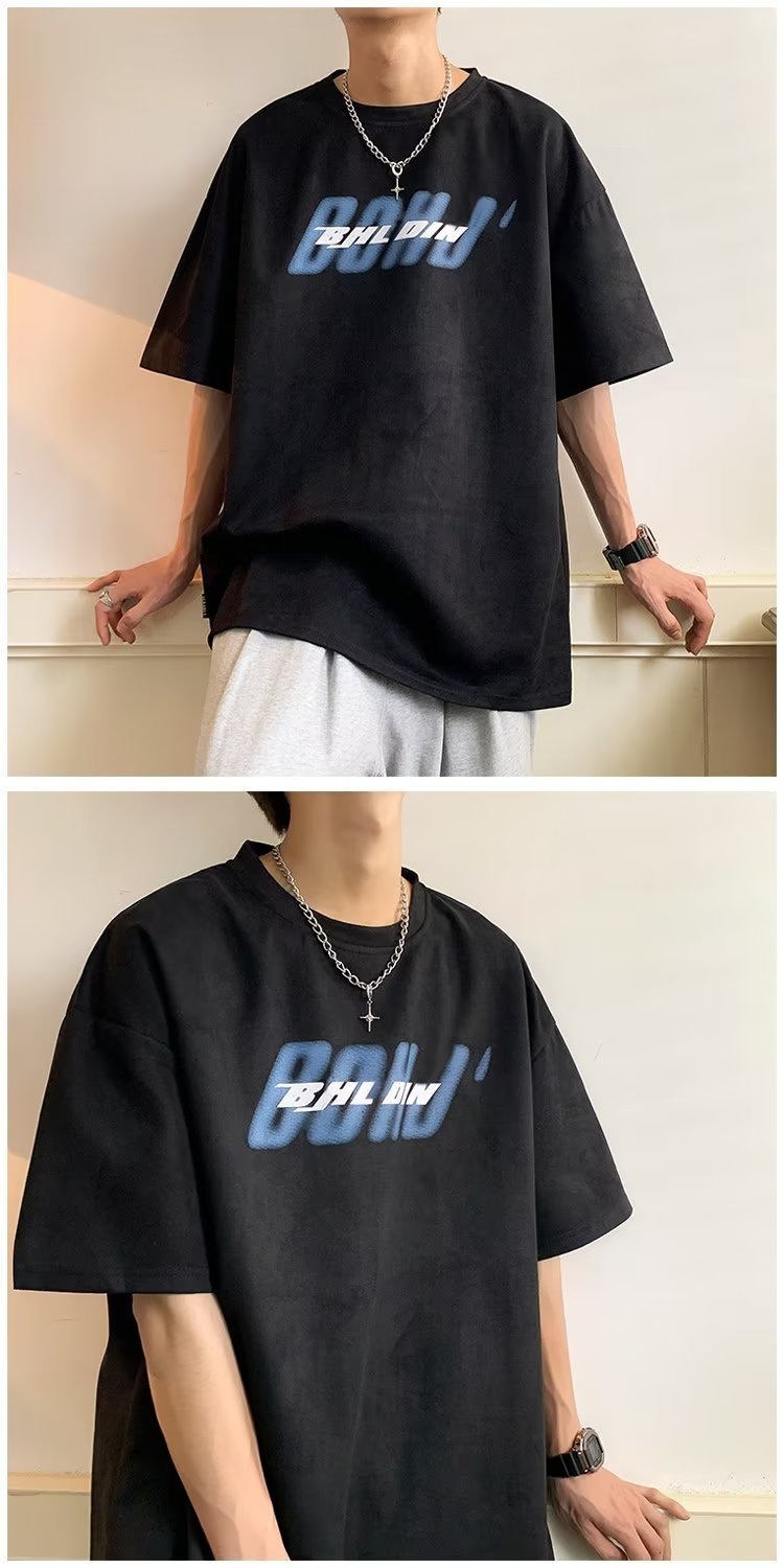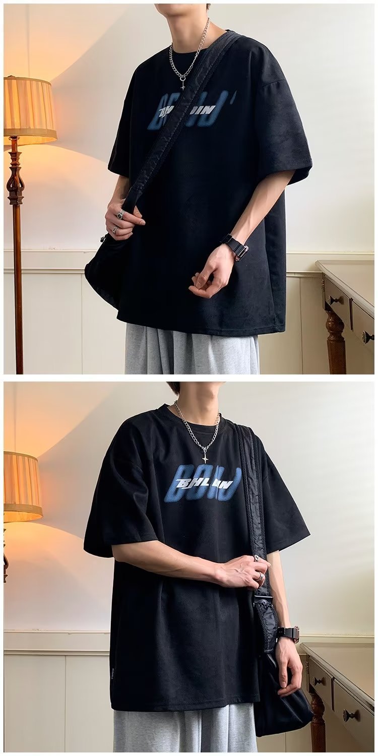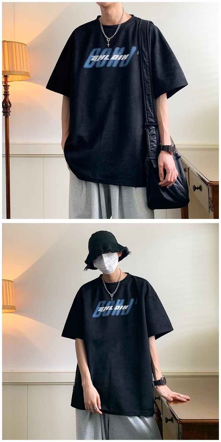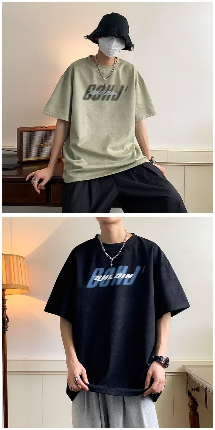 2023 여름 새로운 미국 복고풍 풀오버 반팔 티셔츠 남성용 느슨한 캐주얼 반소매 티셔츠 탑 의류 패션스토어 가기