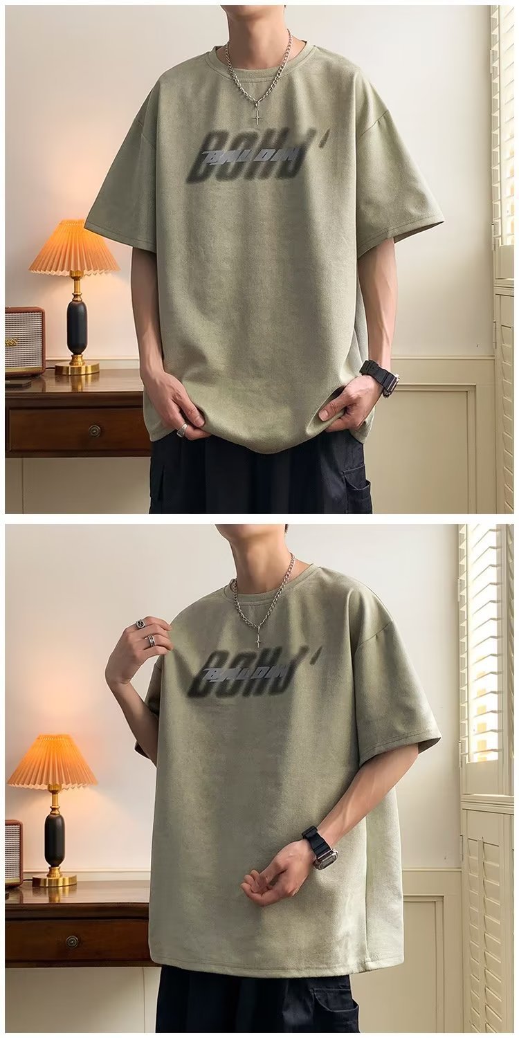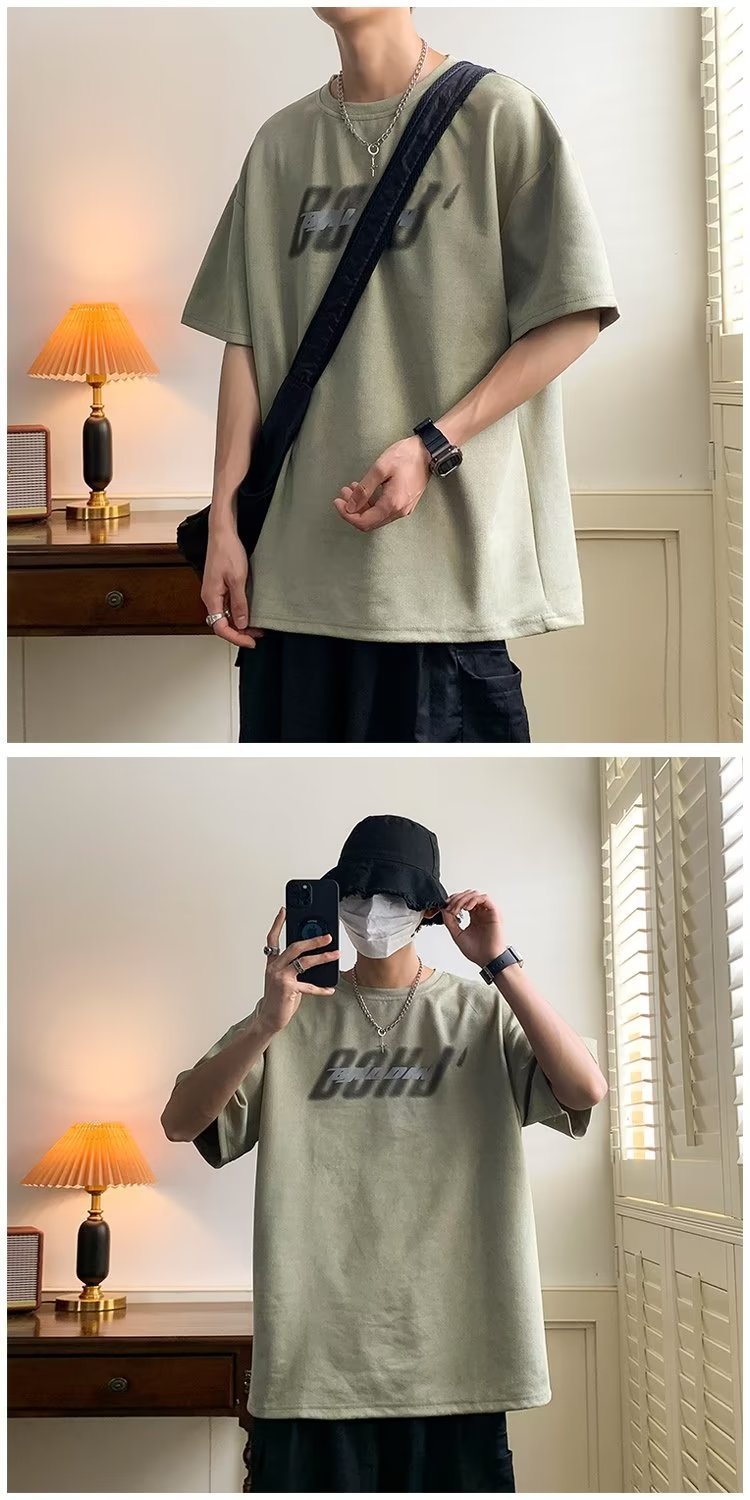 2023 여름 새로운 미국 복고풍 풀오버 반팔 티셔츠 남성용 느슨한 캐주얼 반소매 티셔츠 탑 의류 패션
