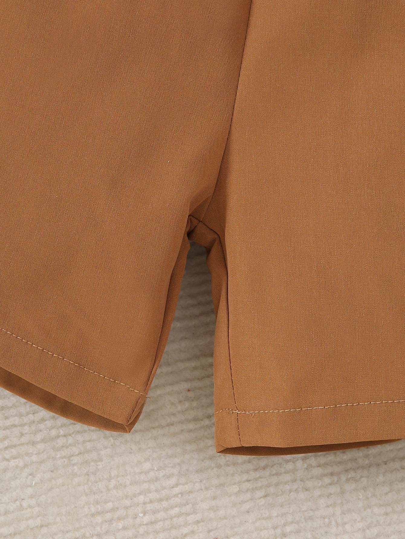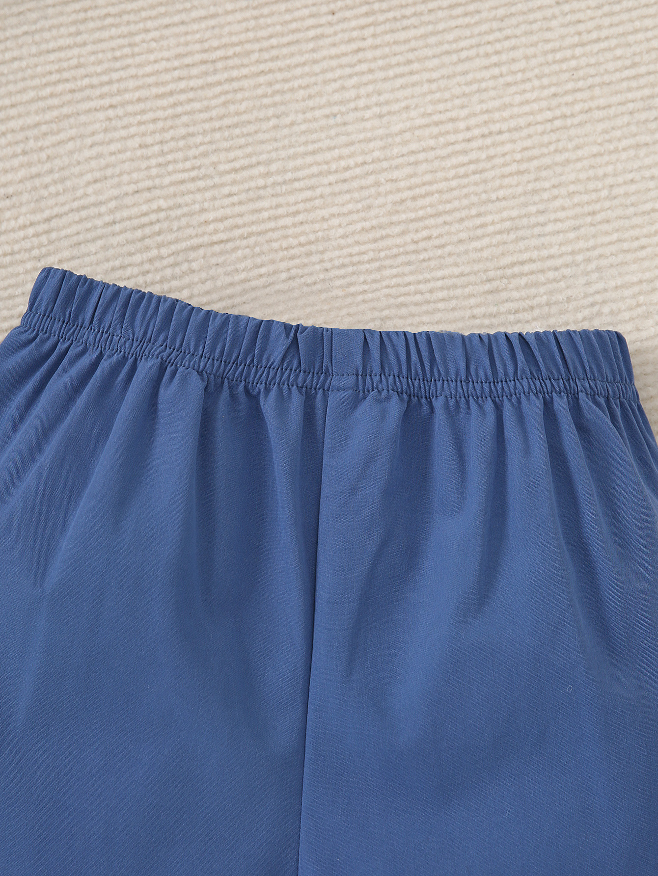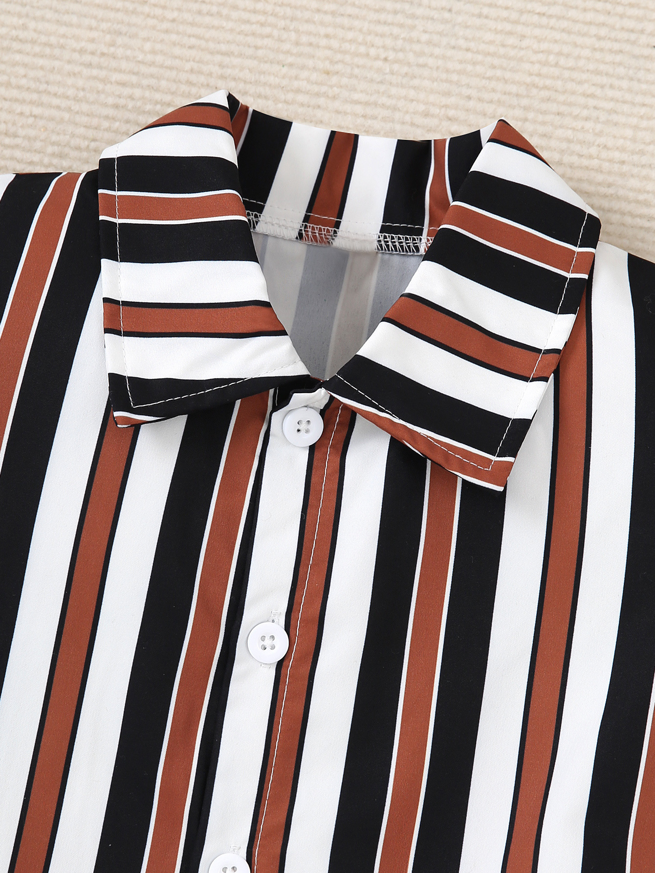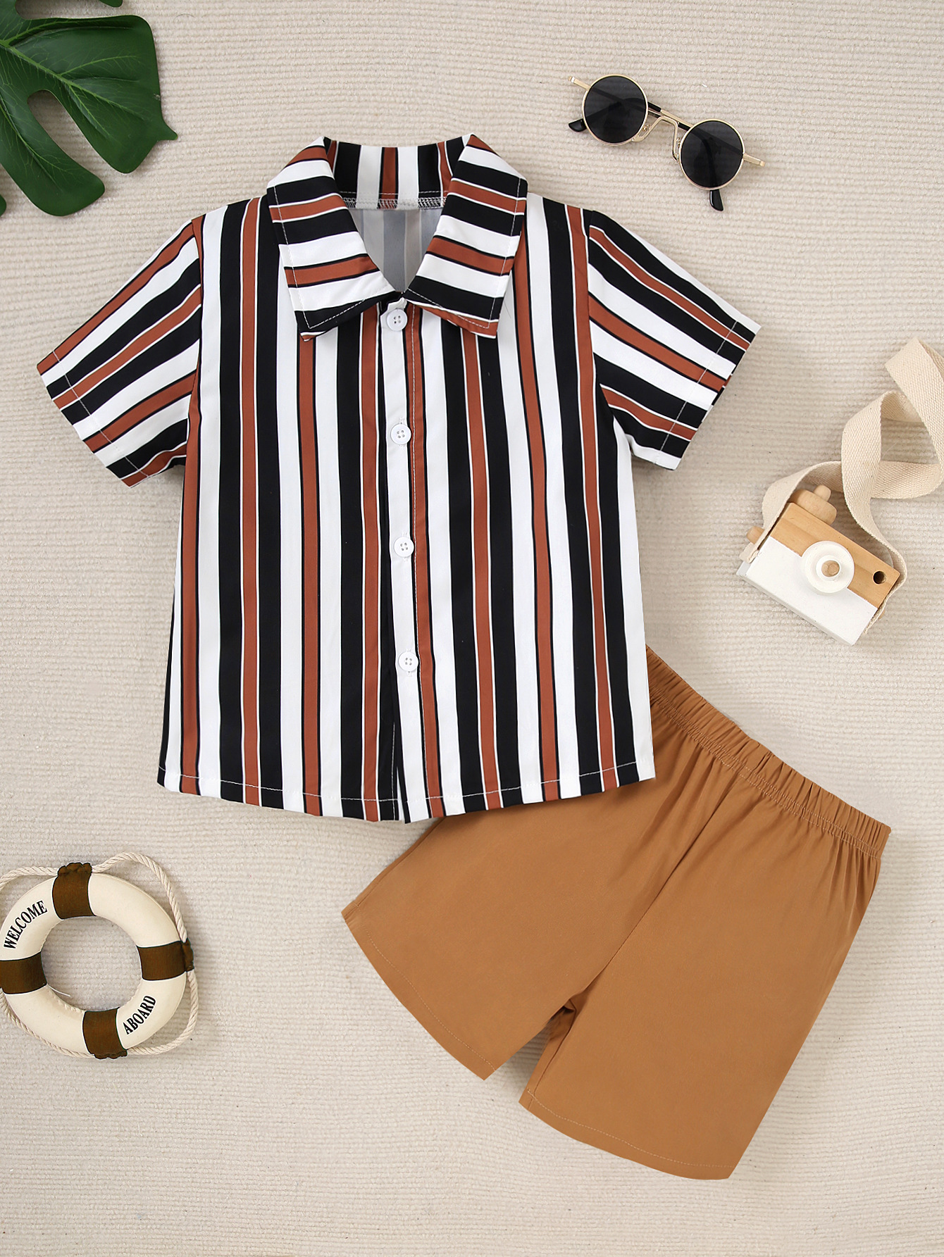 소년 줄무늬 반팔 셔츠 + 단색 반바지 투피스 세트
