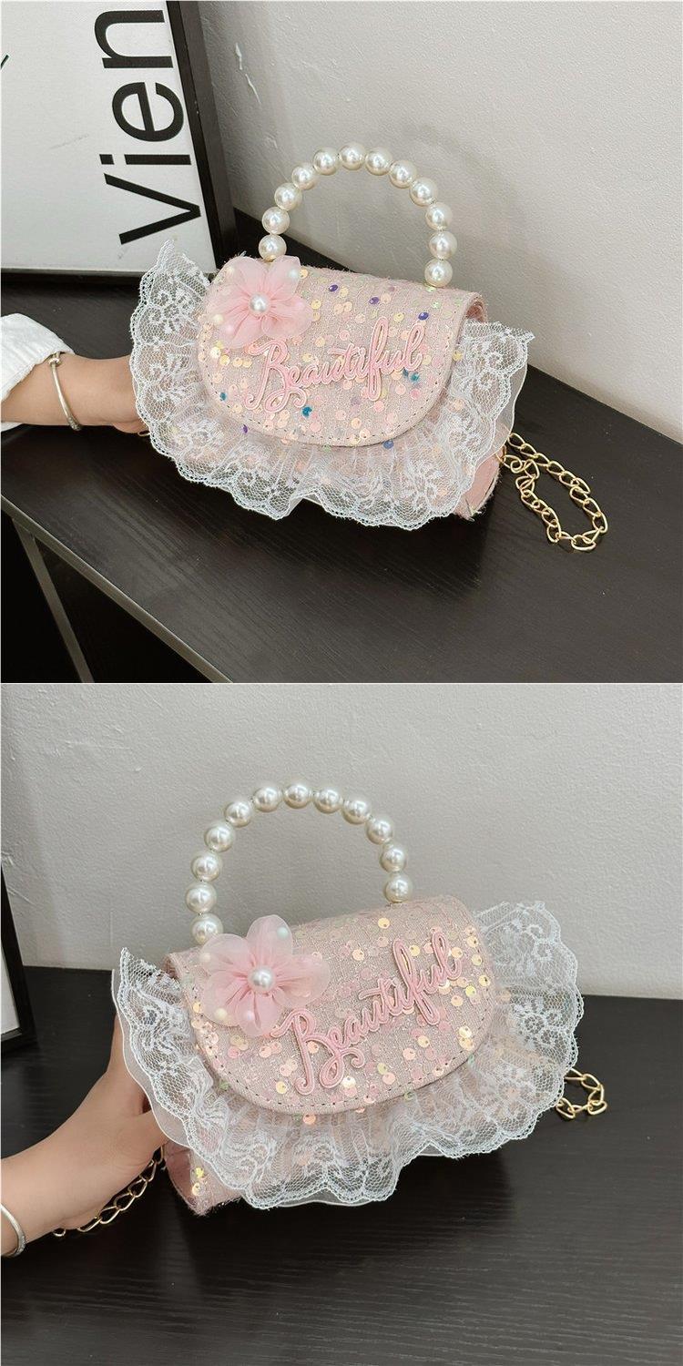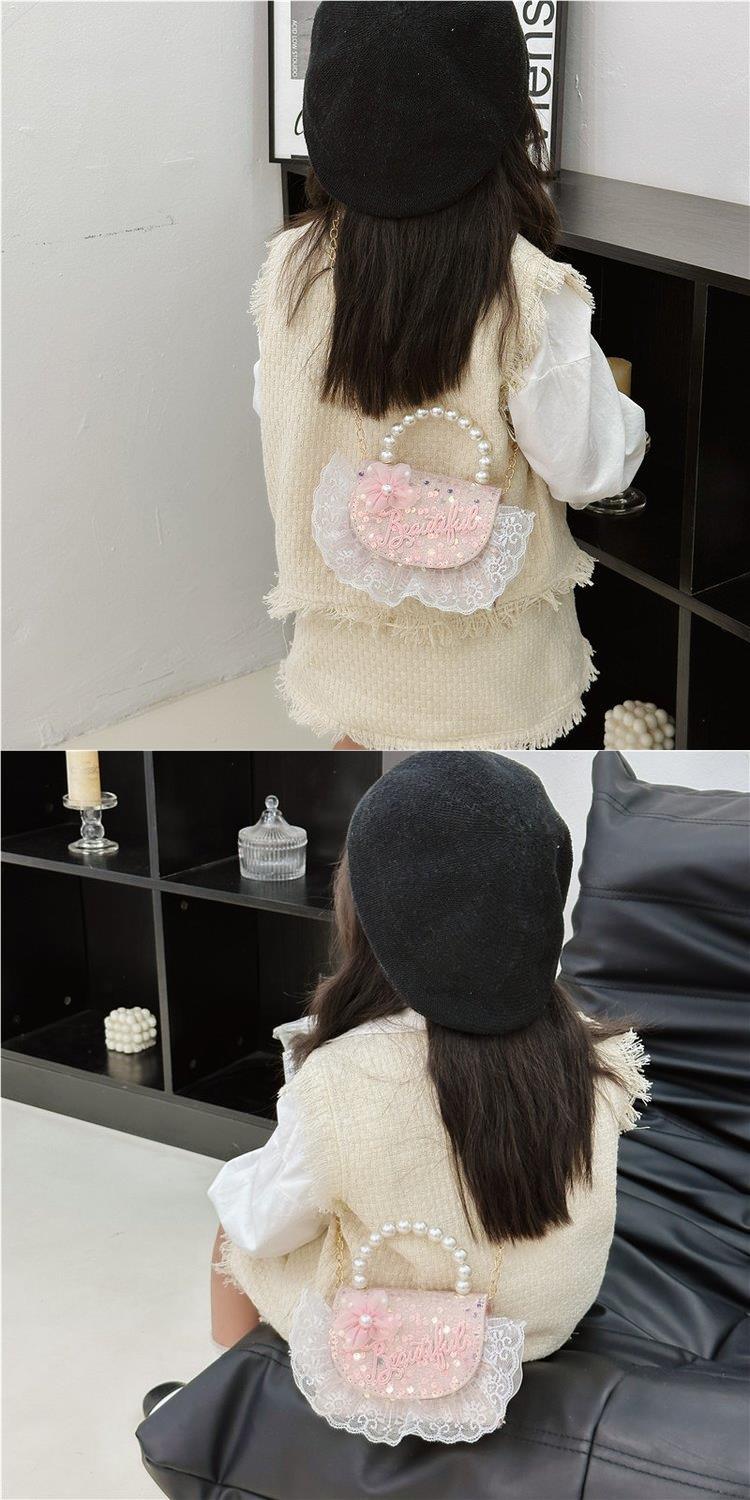 어린이 가방 어깨 메신저 가방 진주 핸드백 공주 패션 귀여운 샤넬 스타일 여성 미니 귀여운 서양식스토어 가기