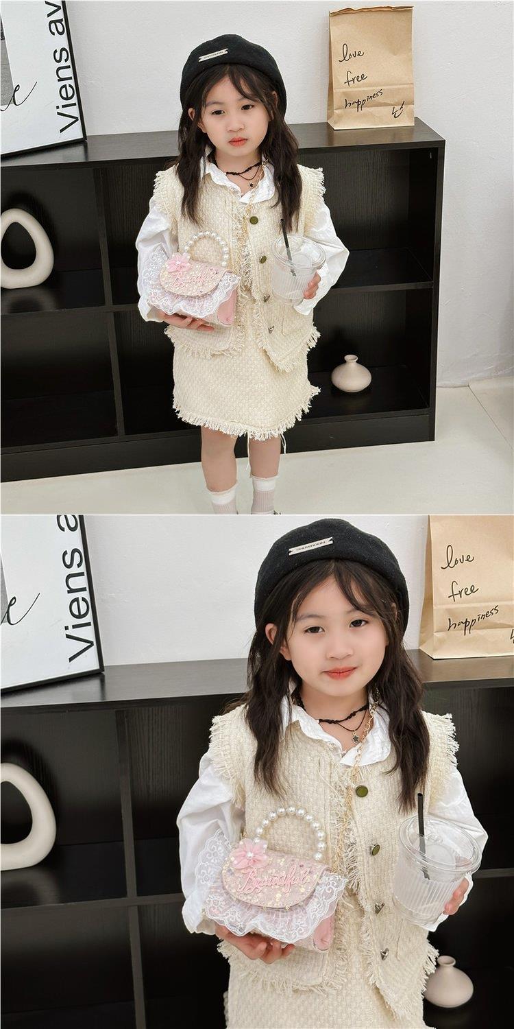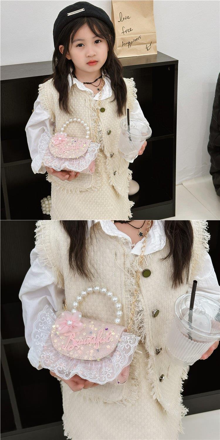 어린이 가방 어깨 메신저 가방 진주 핸드백 공주 패션 귀여운 샤넬 스타일 여성 미니 귀여운 서양식