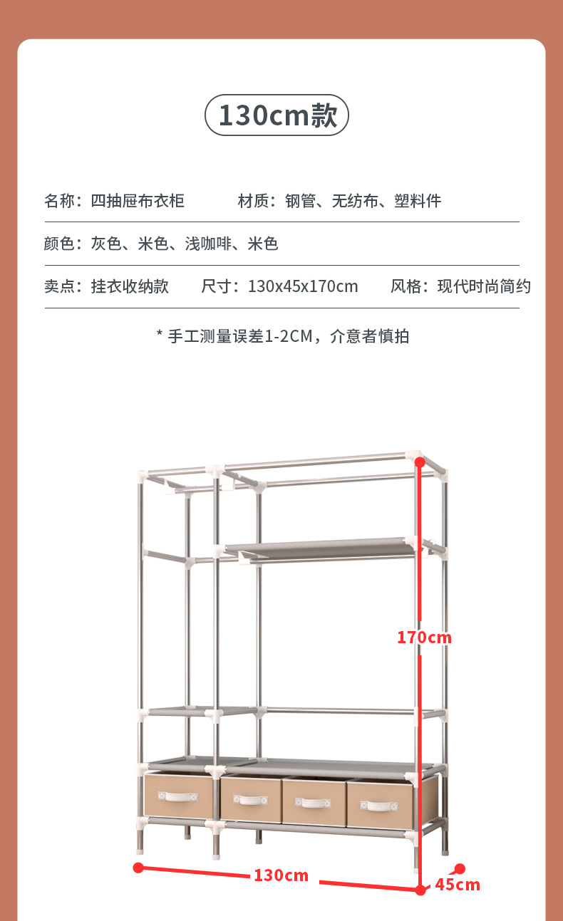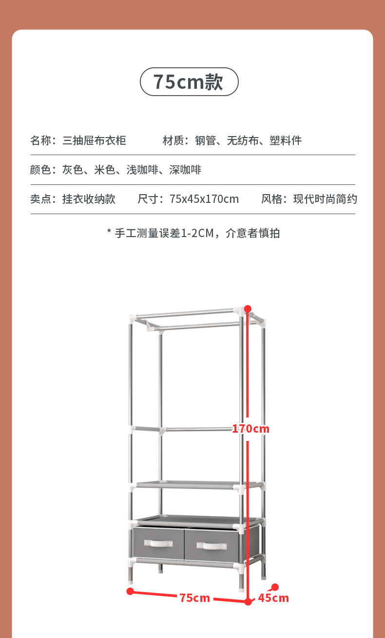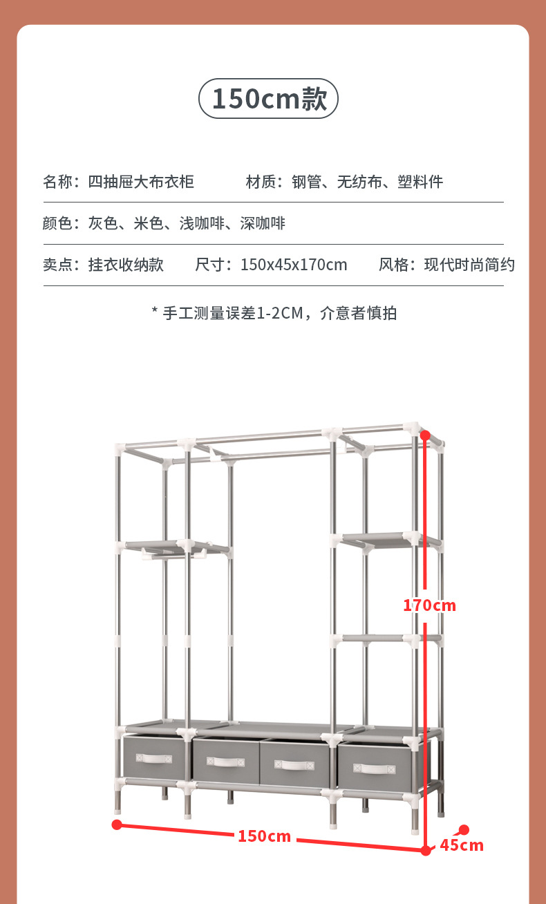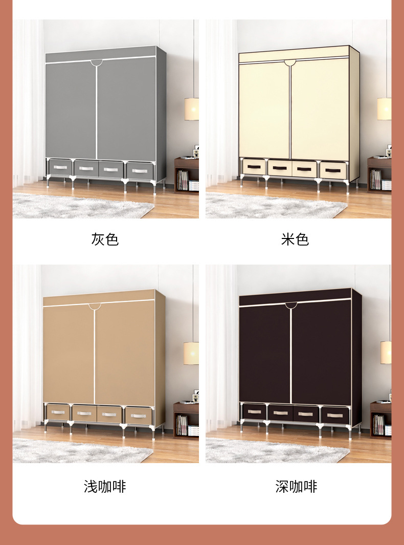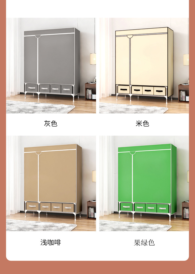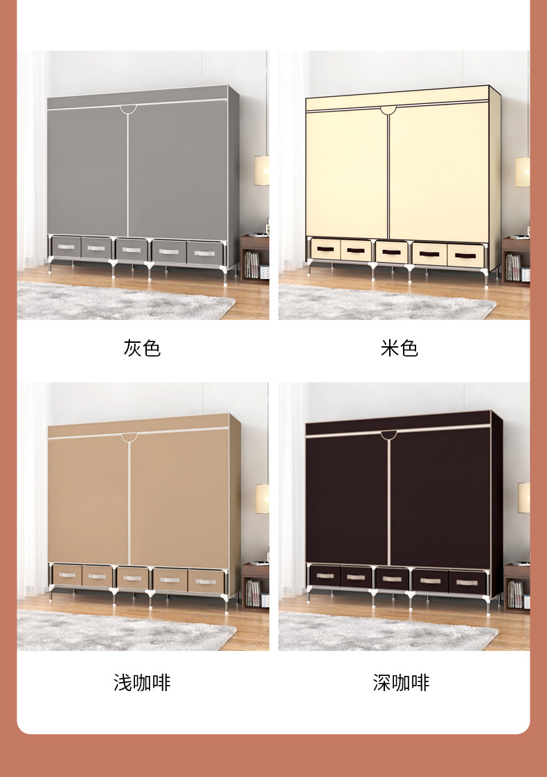 간단한 옷장 조립 천 옷장 가정용 침실 임대 기숙사 보관 캐비닛 내구성 직물 옷장