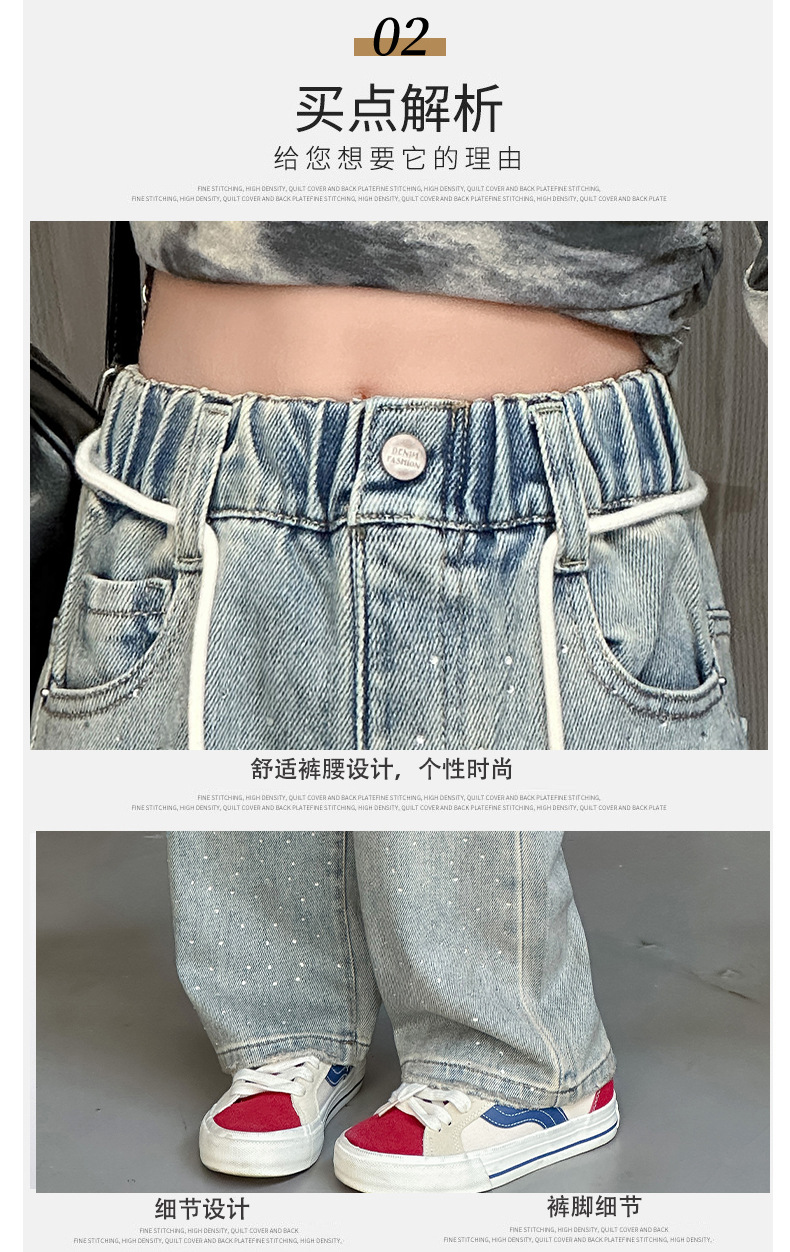 소녀 청바지 2024 봄 새로운 중형 및 대형 어린이 유행 모조 다이아몬드 캐주얼 소녀의 인터넷 유명 인사 스트레이트 바지