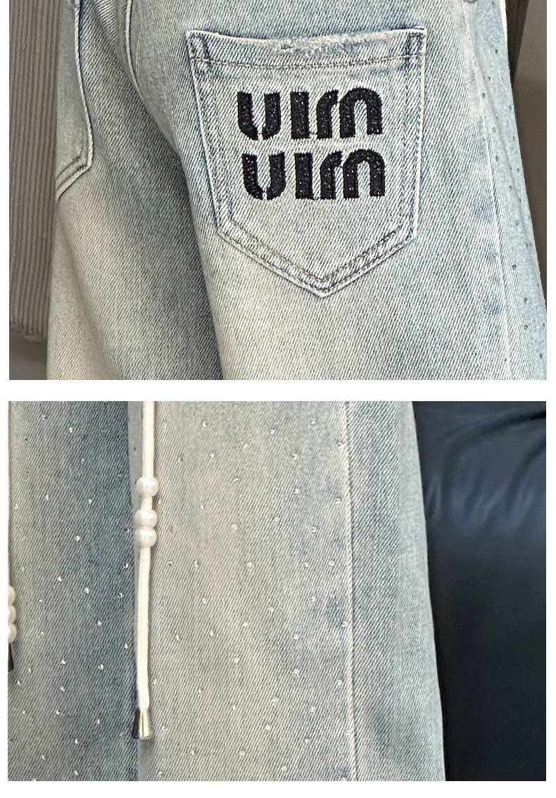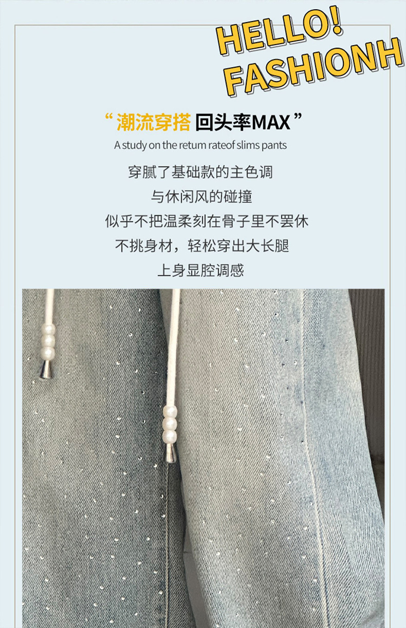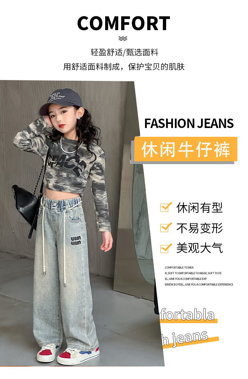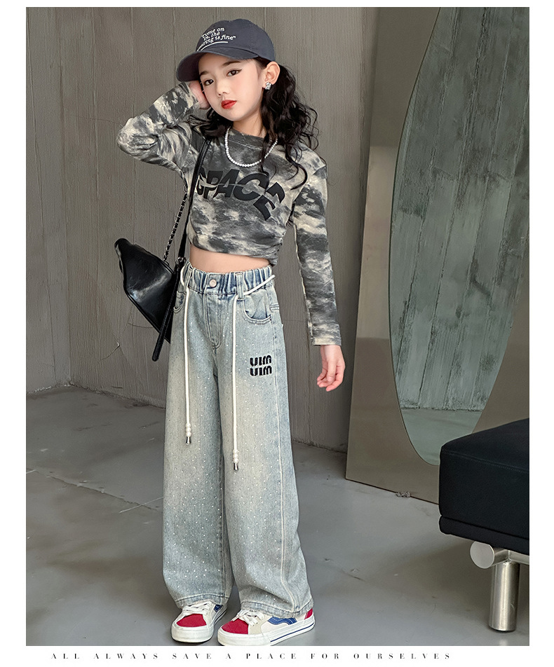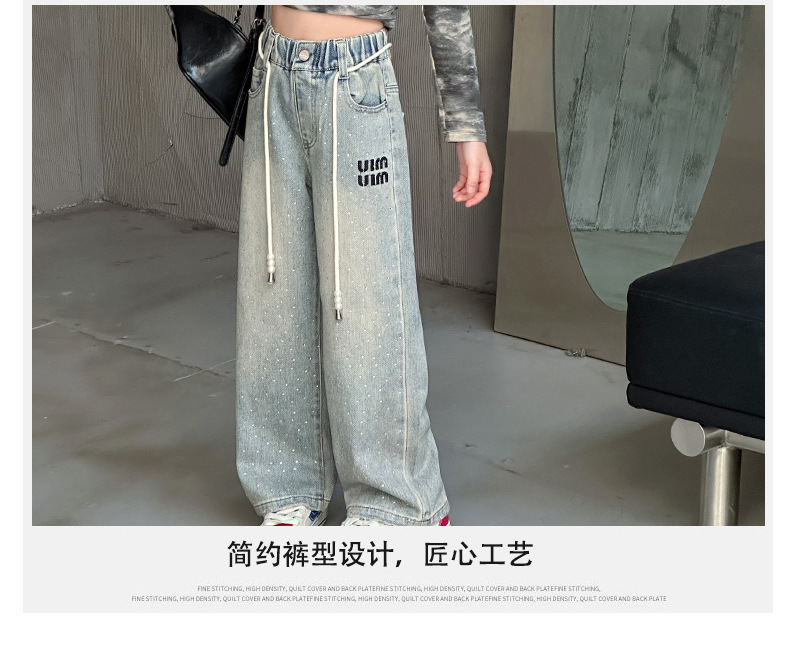 소녀 청바지 2024 봄 새로운 중형 및 대형 어린이 유행 모조 다이아몬드 캐주얼 소녀의 인터넷 유명 인사 스트레이트 바지스토어 가기