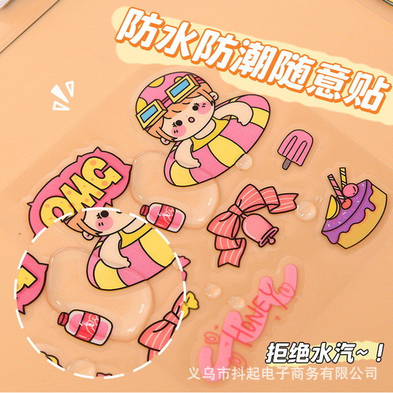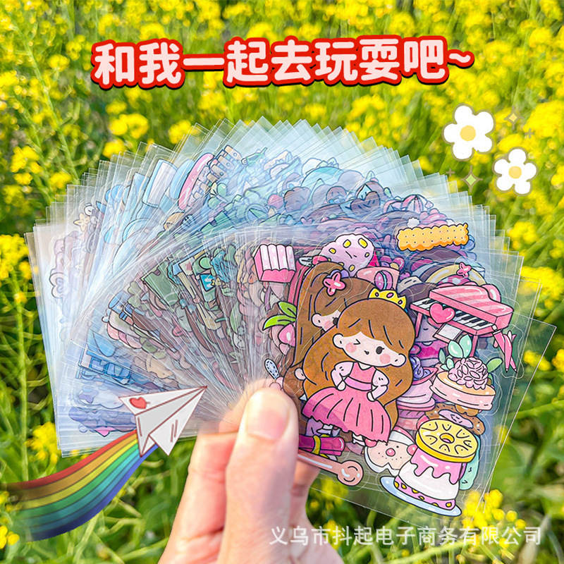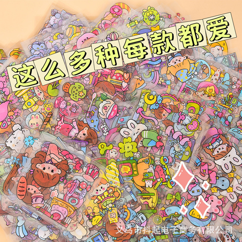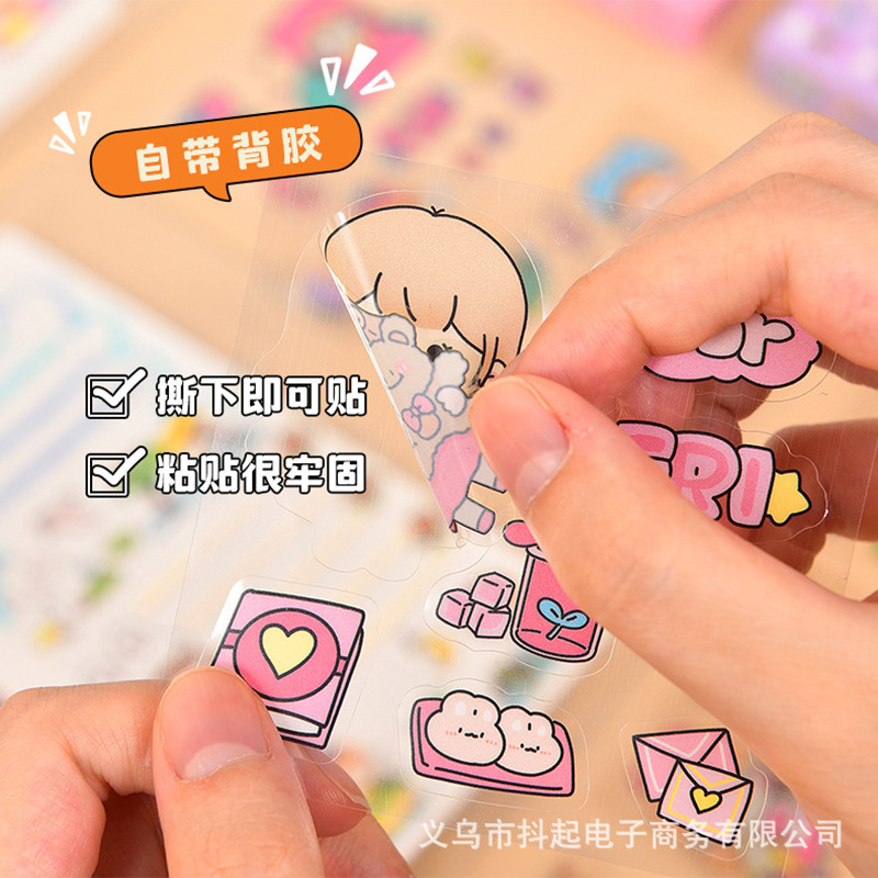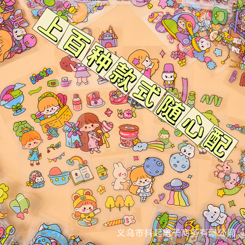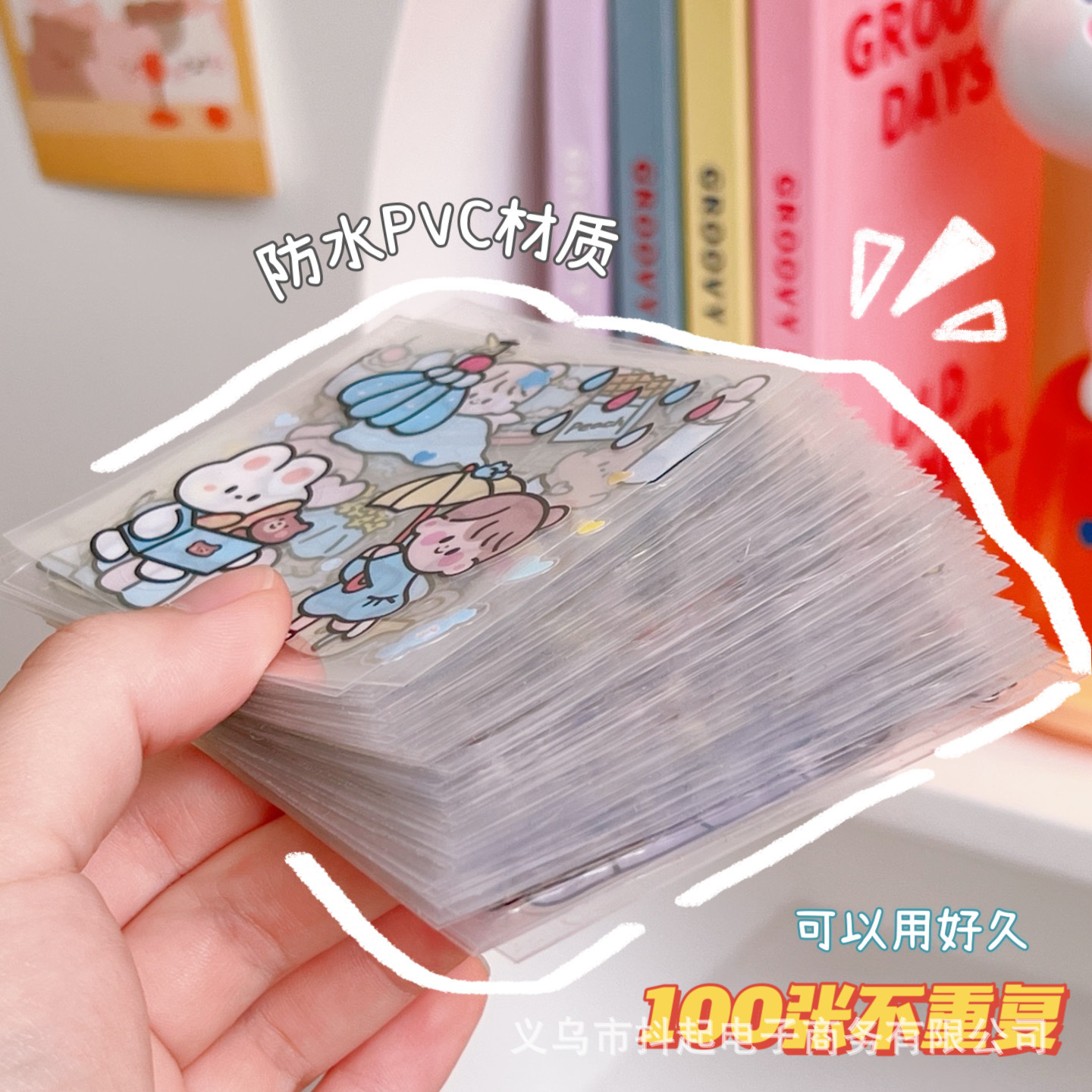100 비 반복 국경 벌크 손 계정 스티커 만화 PET 방수 스티커 장식 재료 손 계정 스티커스토어 가기