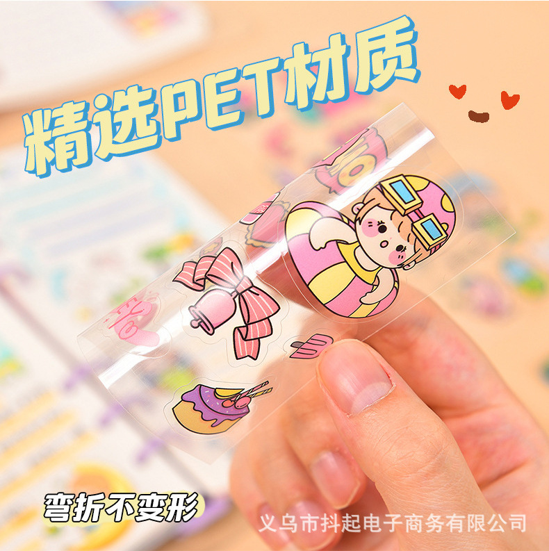 100 비 반복 국경 벌크 손 계정 스티커 만화 PET 방수 스티커 장식 재료 손 계정 스티커