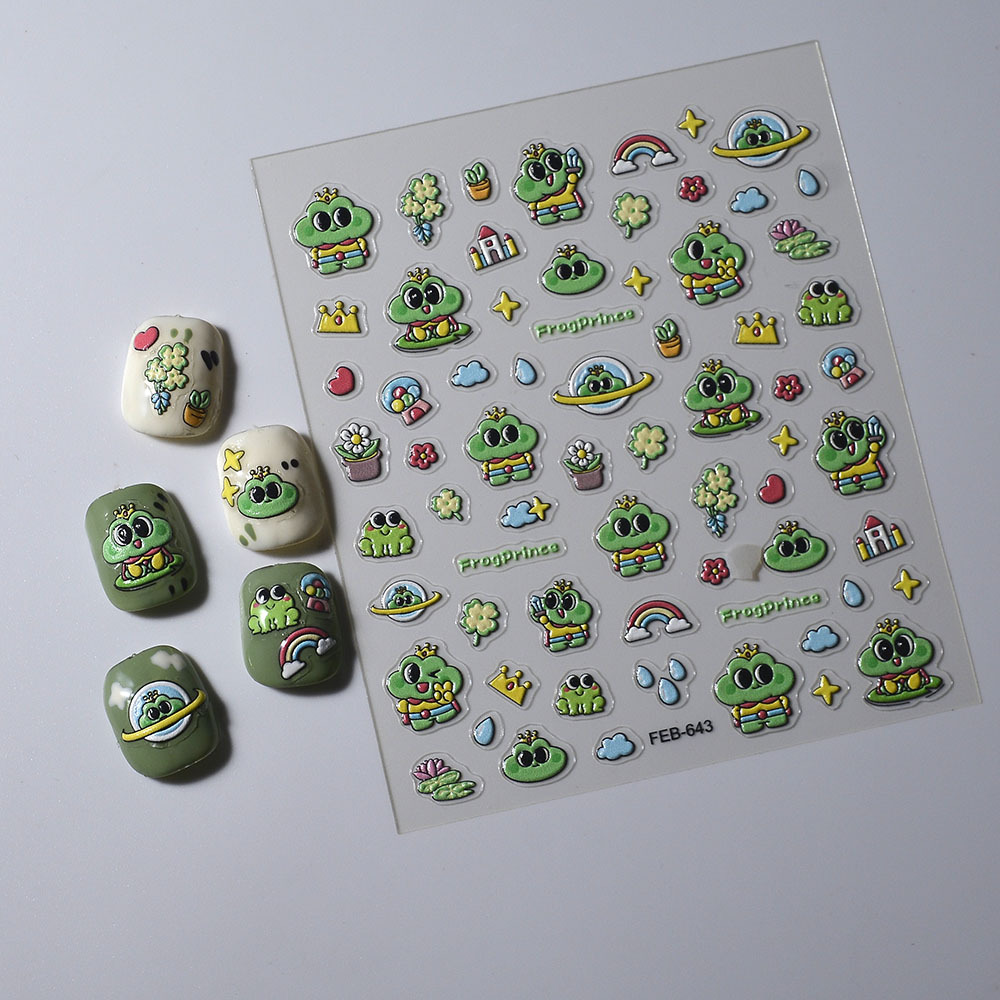 5D 입체 구호 네일 스티커 만화 귀여운 개구리 창조적 인 DIY 손 계정 스티커 그림 스티커스토어 가기