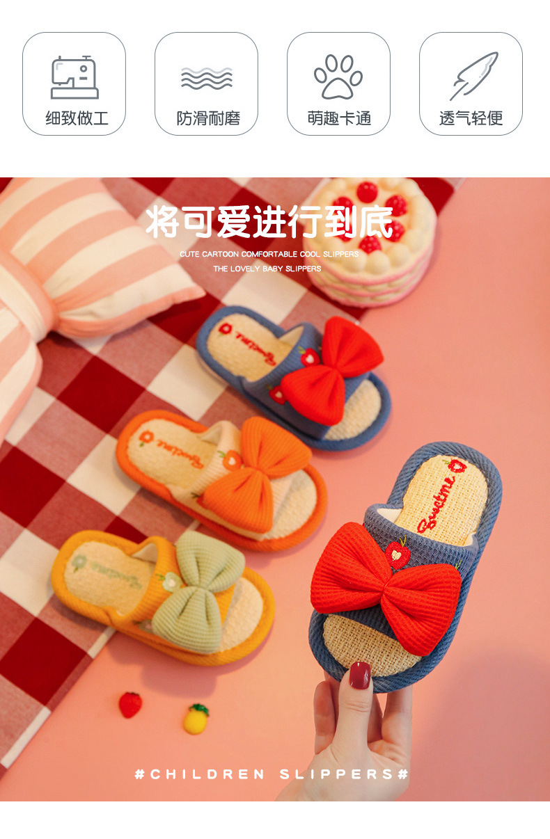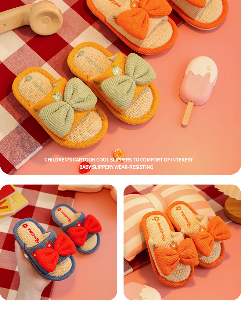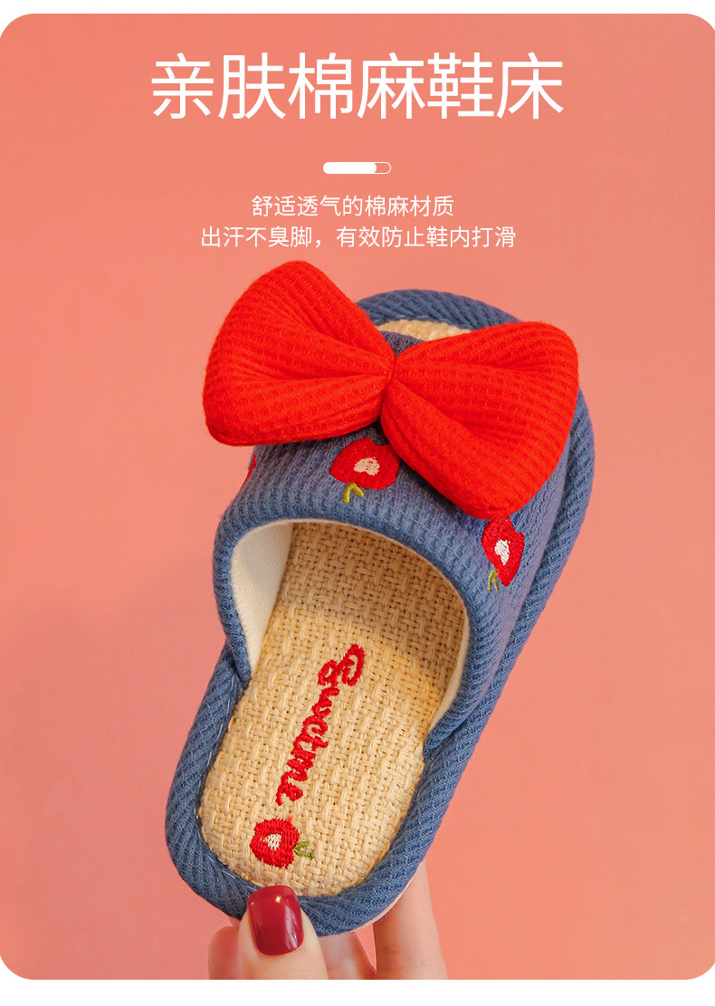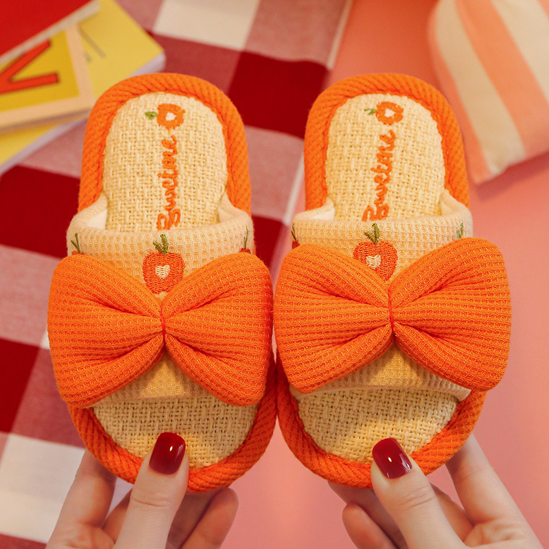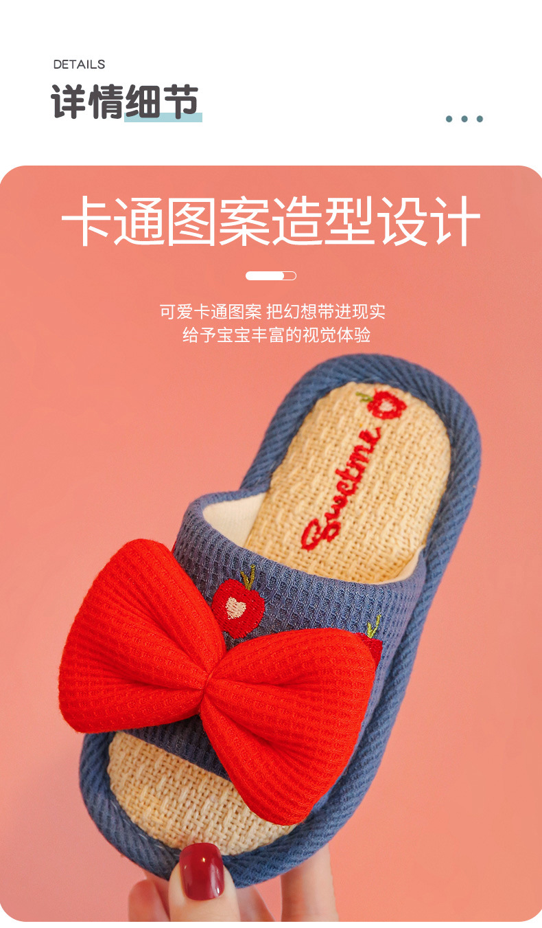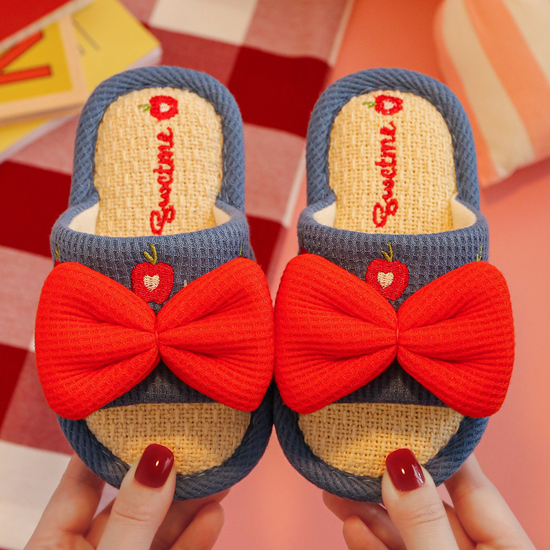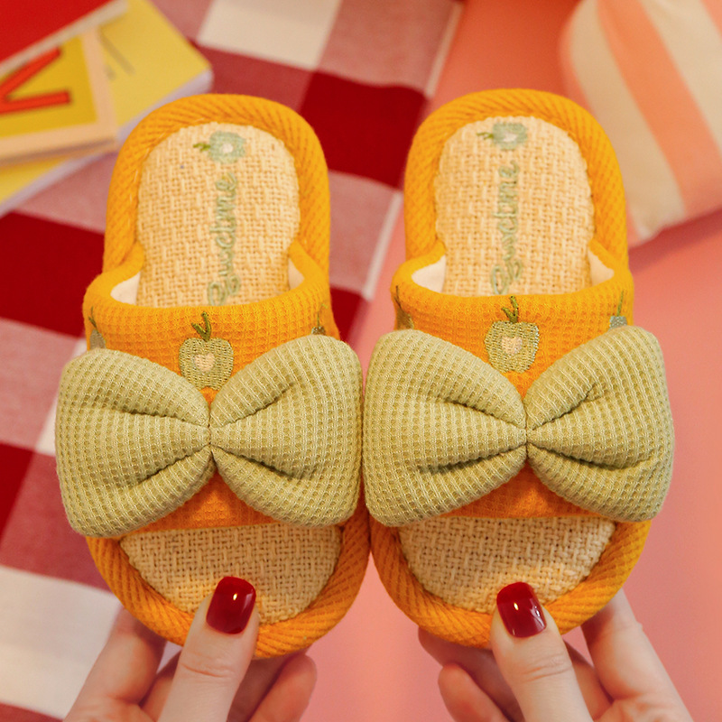 어린이 슬리퍼 린넨 봄과 가을 사계절 소녀 부모-자식 귀여운 실내 집 미끄럼 방지 면 린넨 슬리퍼 아기 샌들