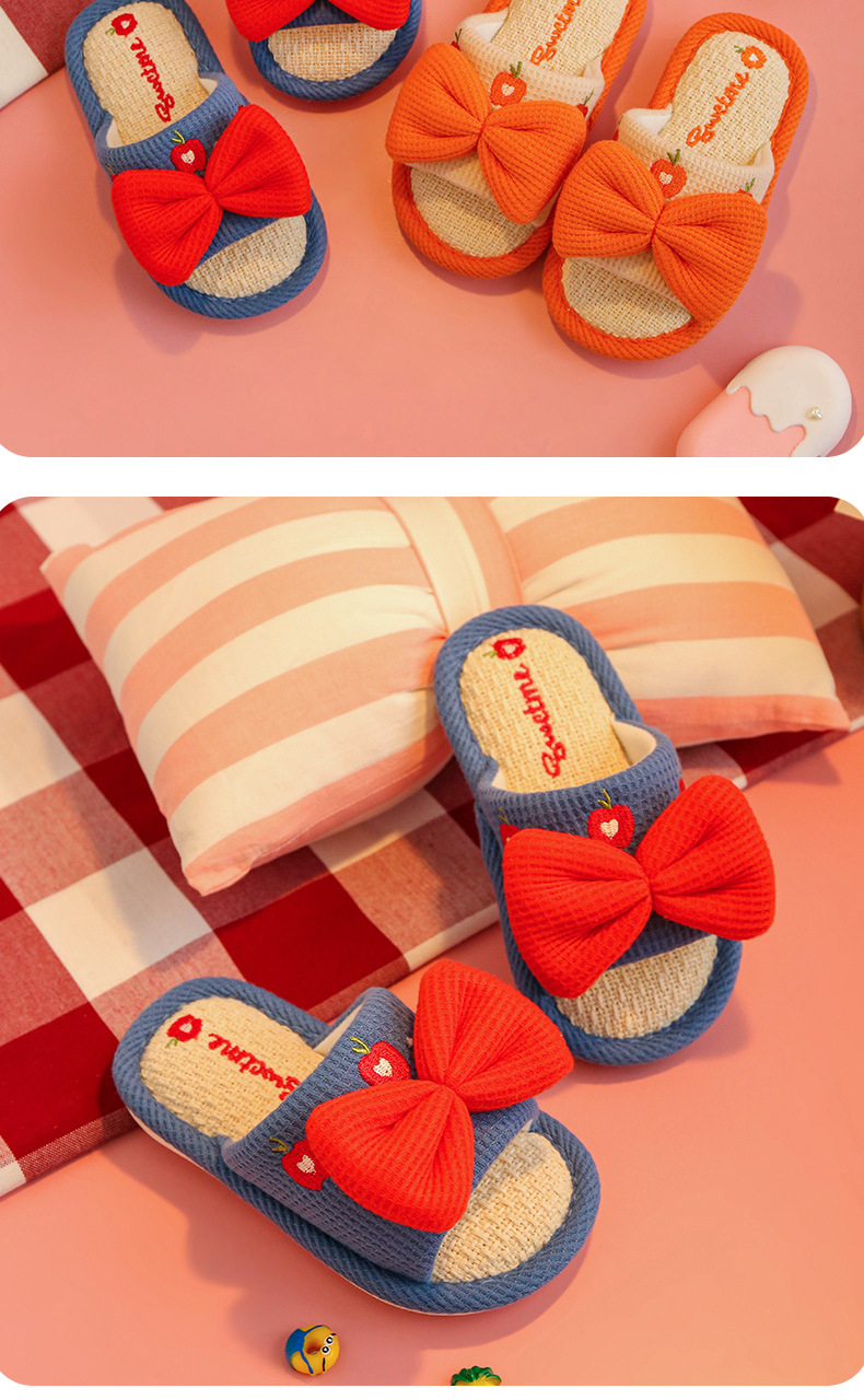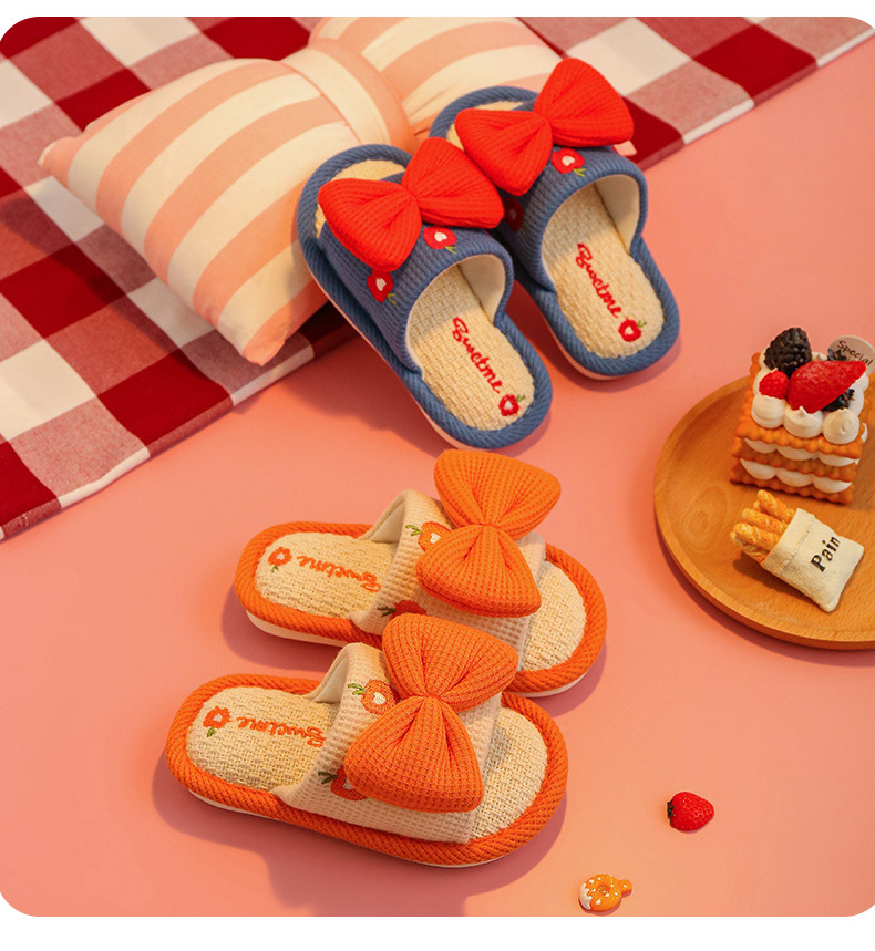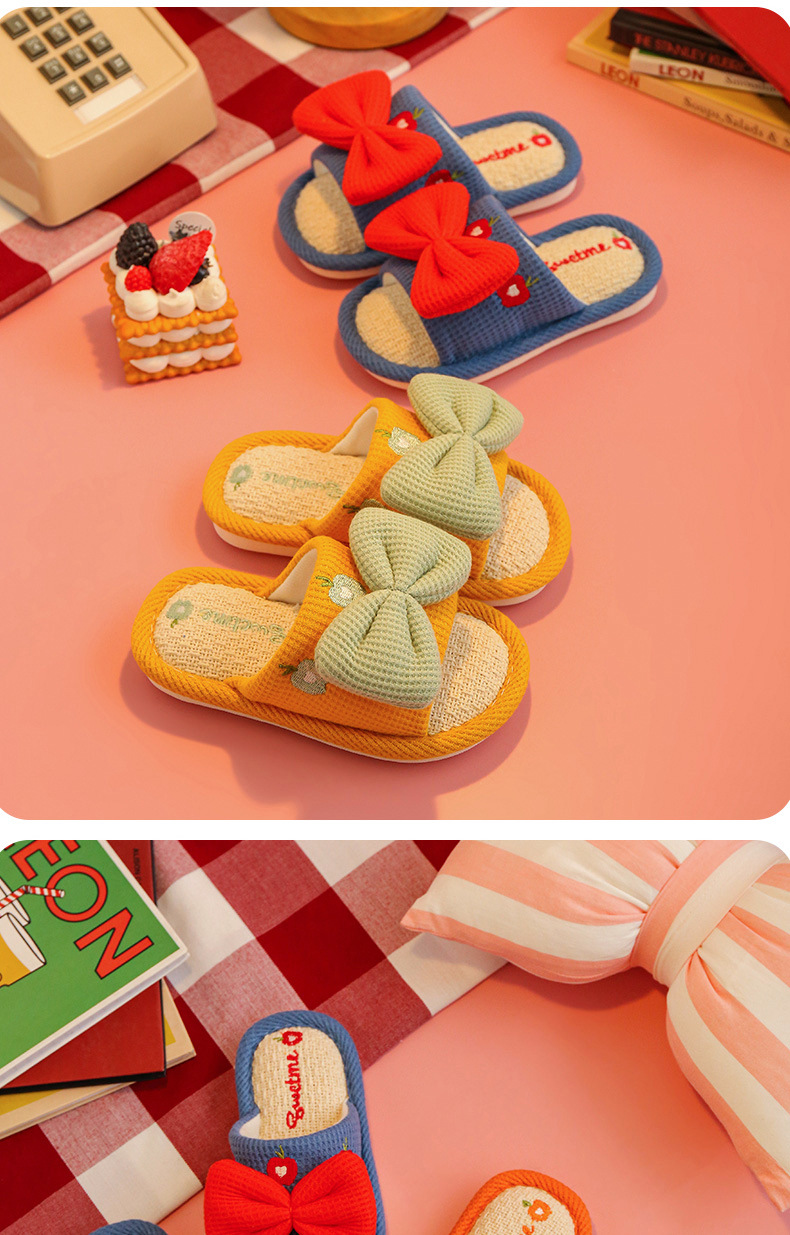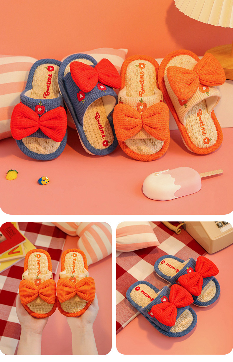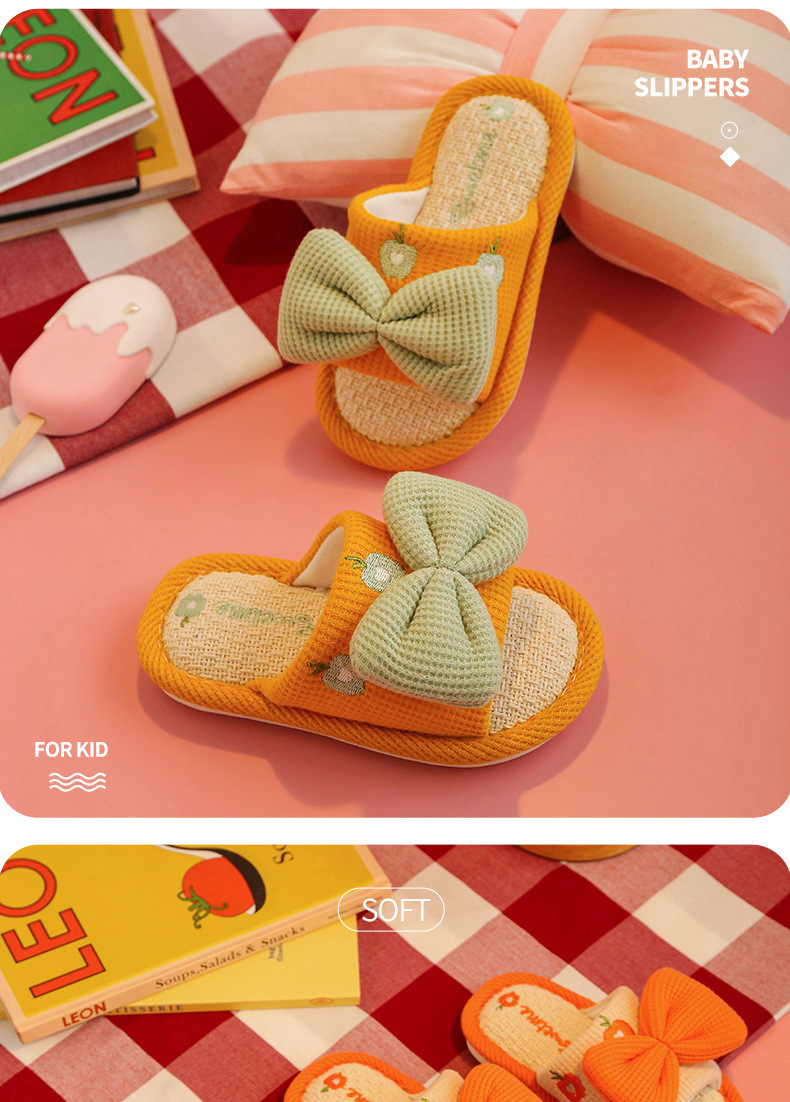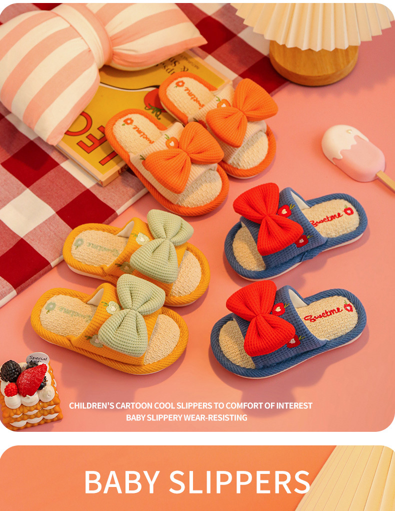 어린이 슬리퍼 린넨 봄과 가을 사계절 소녀 부모-자식 귀여운 실내 집 미끄럼 방지 면 린넨 슬리퍼 아기 샌들