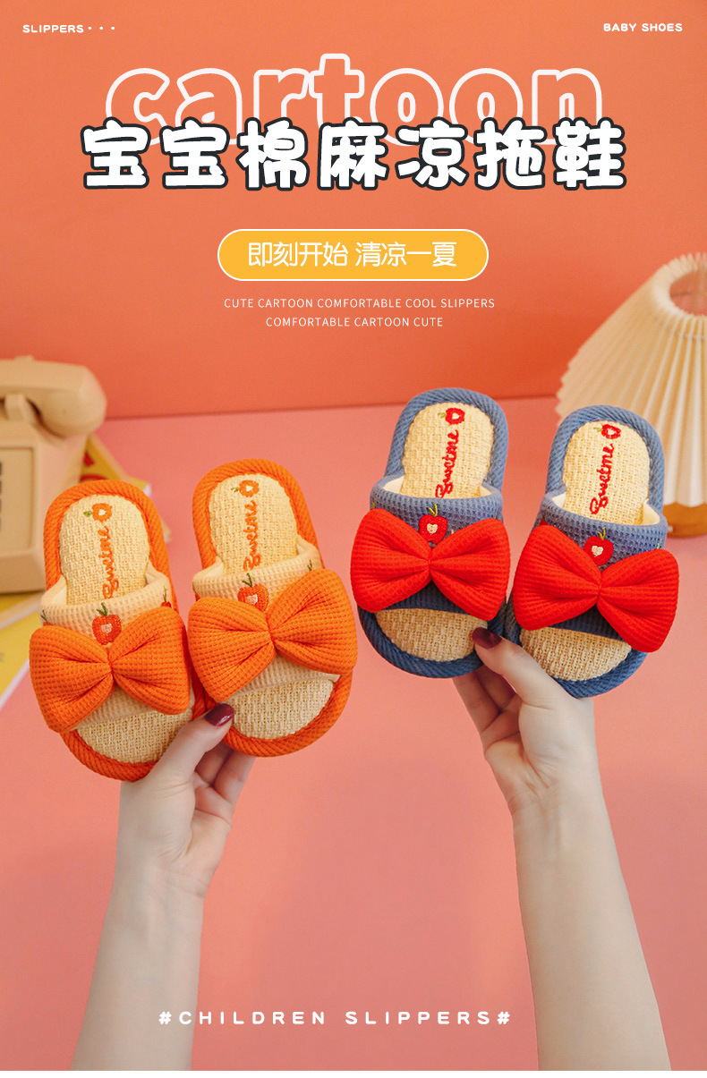 어린이 슬리퍼 린넨 봄과 가을 사계절 소녀 부모-자식 귀여운 실내 집 미끄럼 방지 면 린넨 슬리퍼 아기 샌들스토어 가기