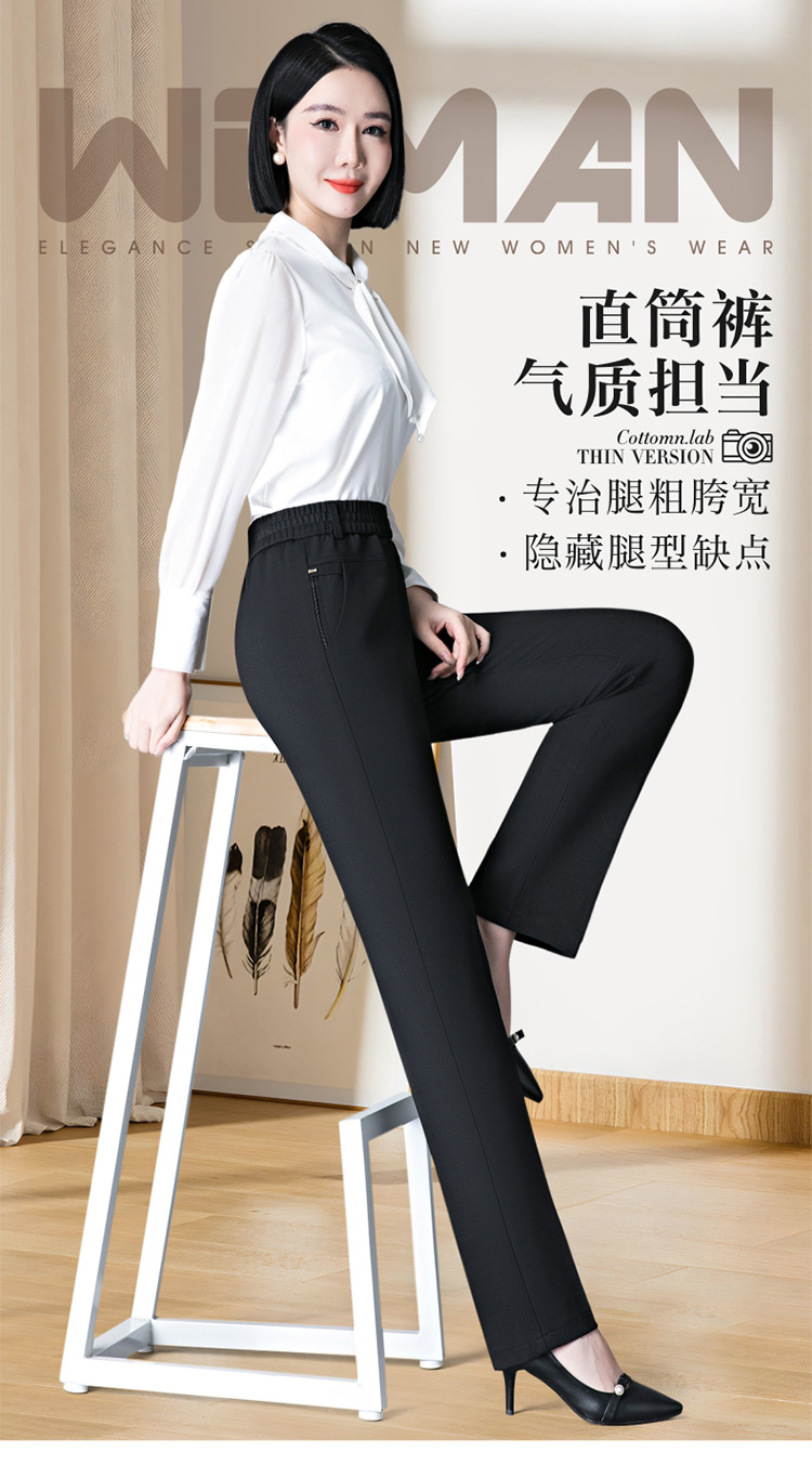 엄마 바지 여성용 하이웨이스트 스트레이트 팬츠 2025 봄 가을 신상 중년 여성 바지 신축성 있는 허리 루즈핏 슬림 캐주얼 팬츠스토어 가기