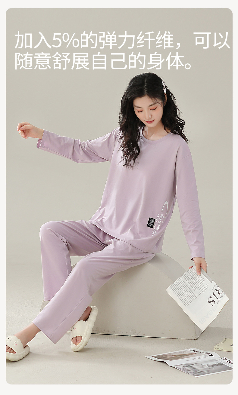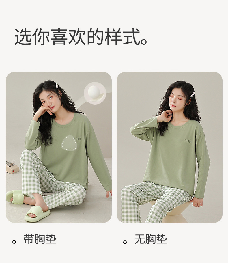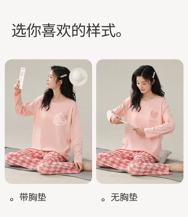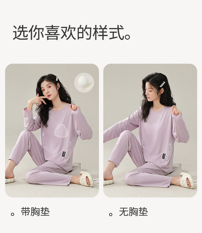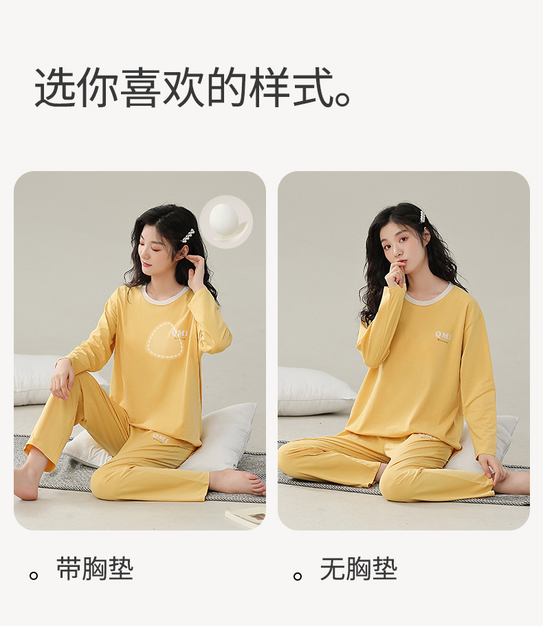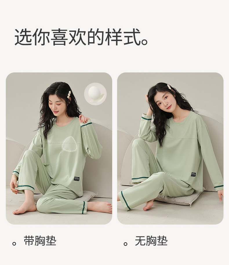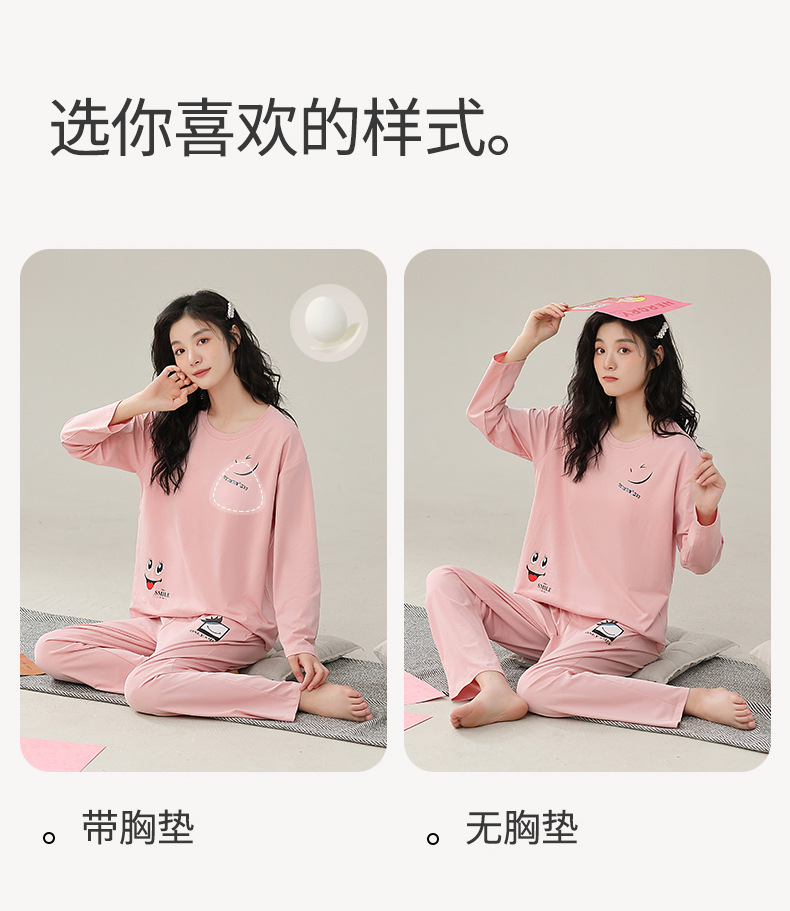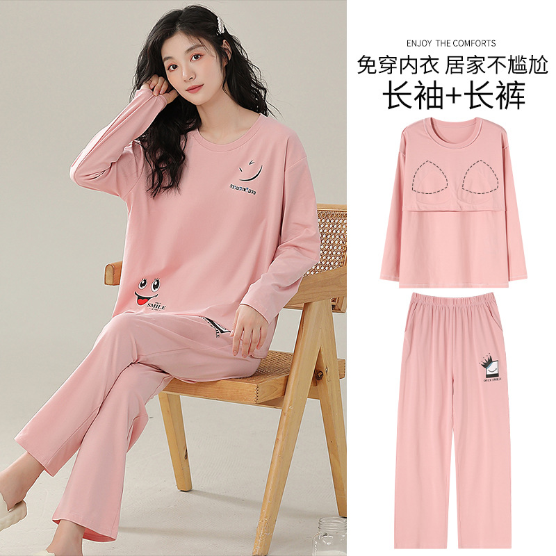 파자마 여성의 봄과 가을 면화 가슴 패드가있는 긴 소매 가을과 겨울 얇은 가정 착용 풀오버 면화 세트 착용스토어 가기