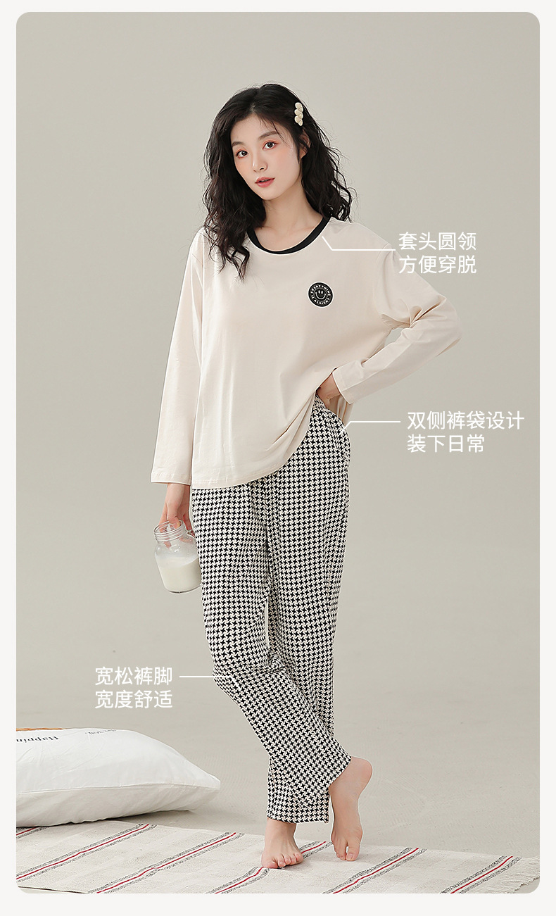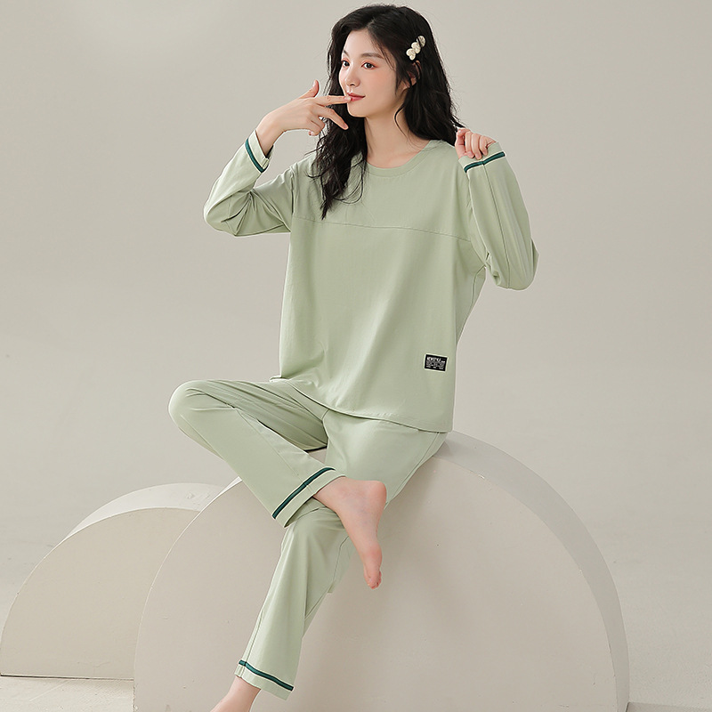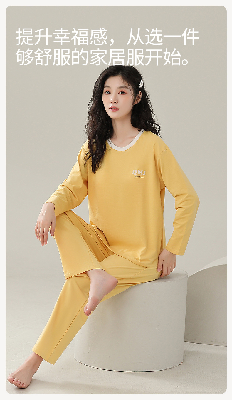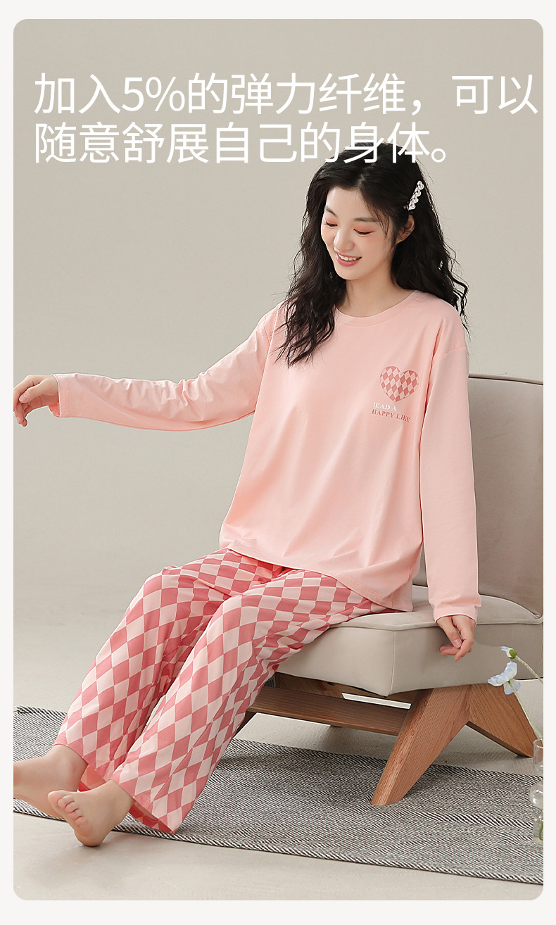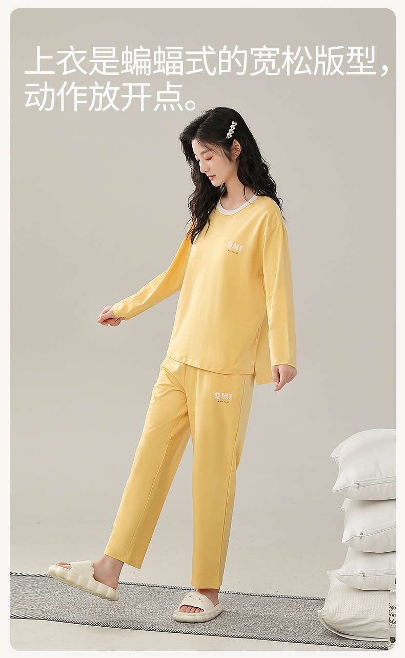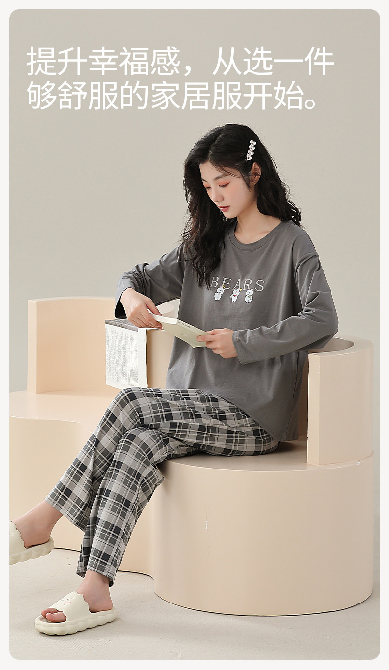 파자마 여성의 봄과 가을 면화 가슴 패드가있는 긴 소매 가을과 겨울 얇은 가정 착용 풀오버 면화 세트 착용스토어 가기