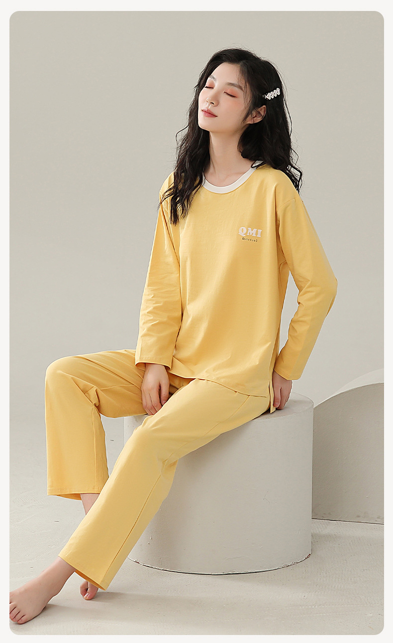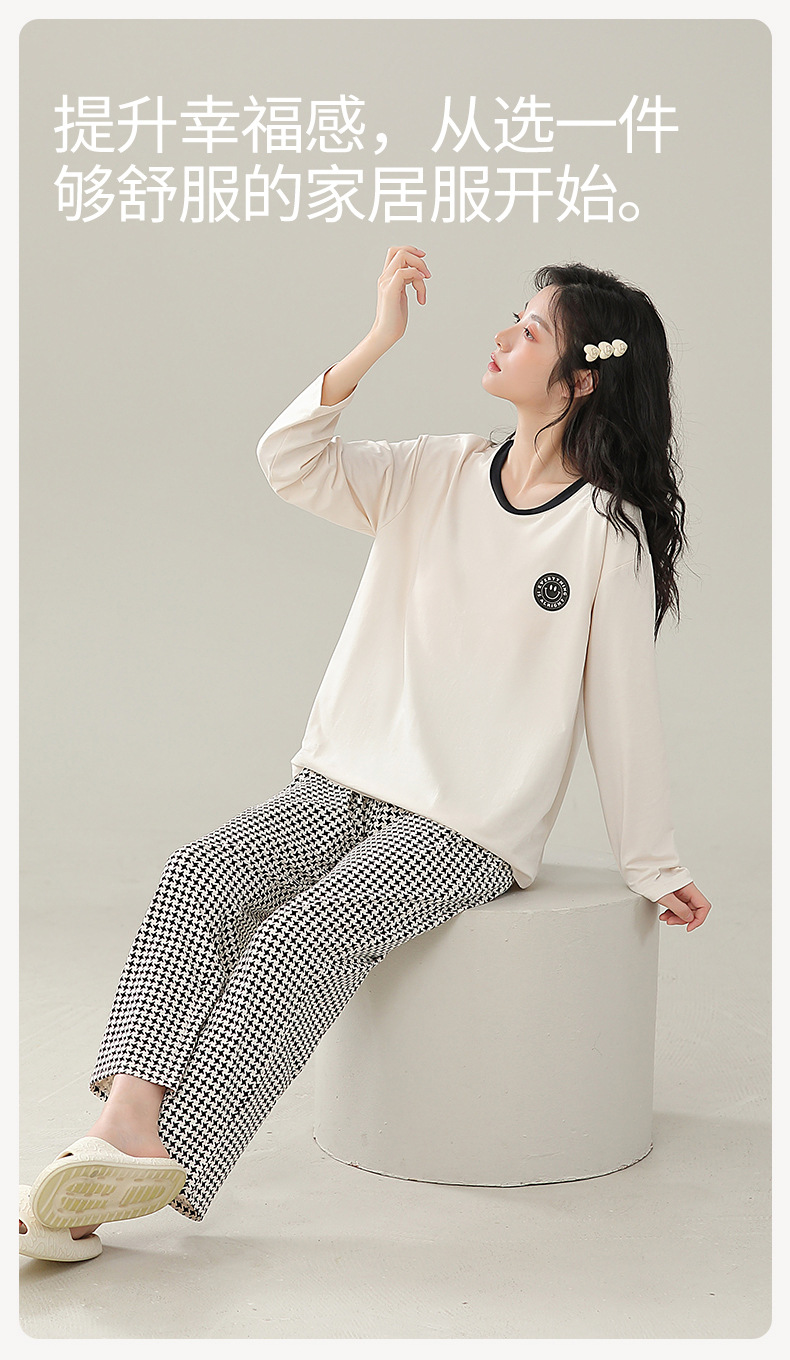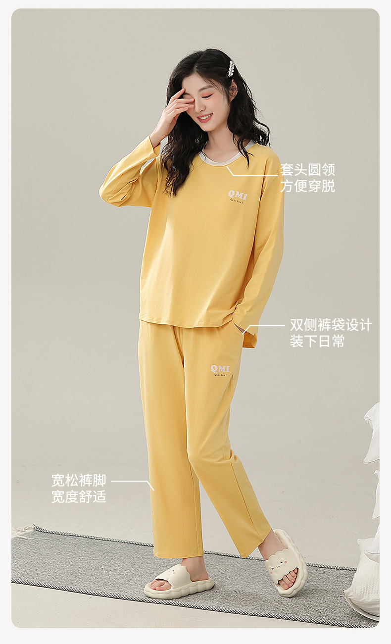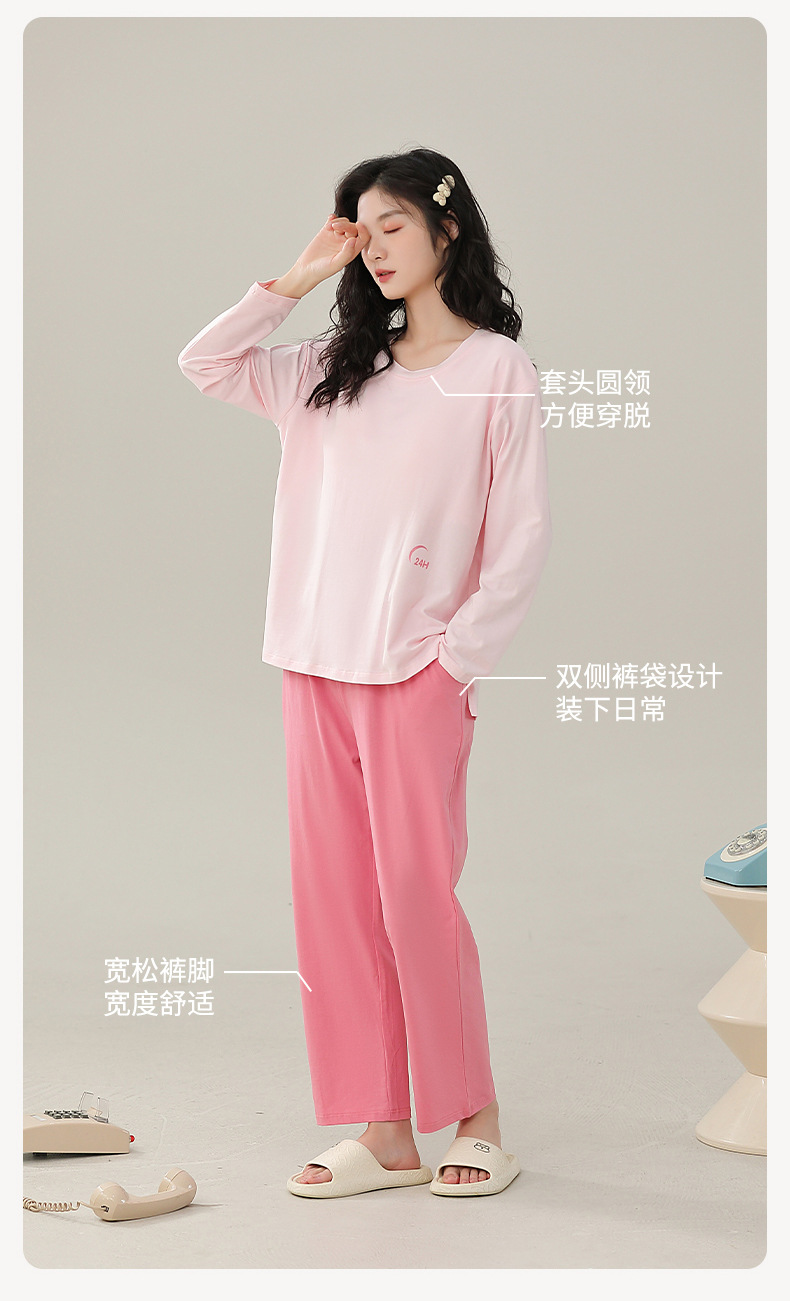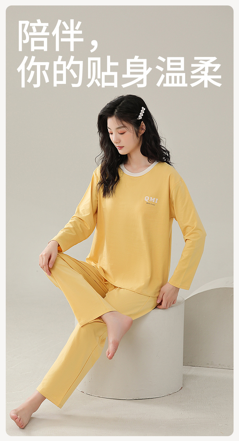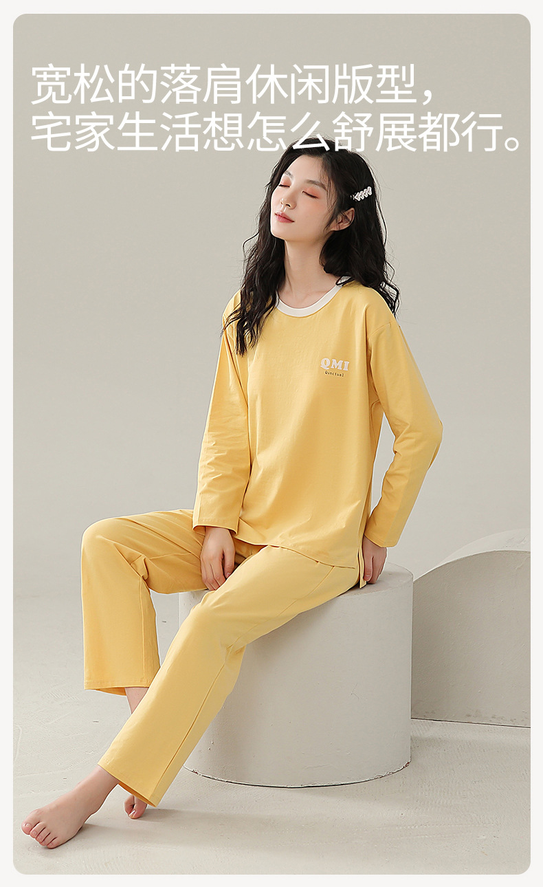 파자마 여성의 봄과 가을 면화 가슴 패드가있는 긴 소매 가을과 겨울 얇은 가정 착용 풀오버 면화 세트 착용스토어 가기