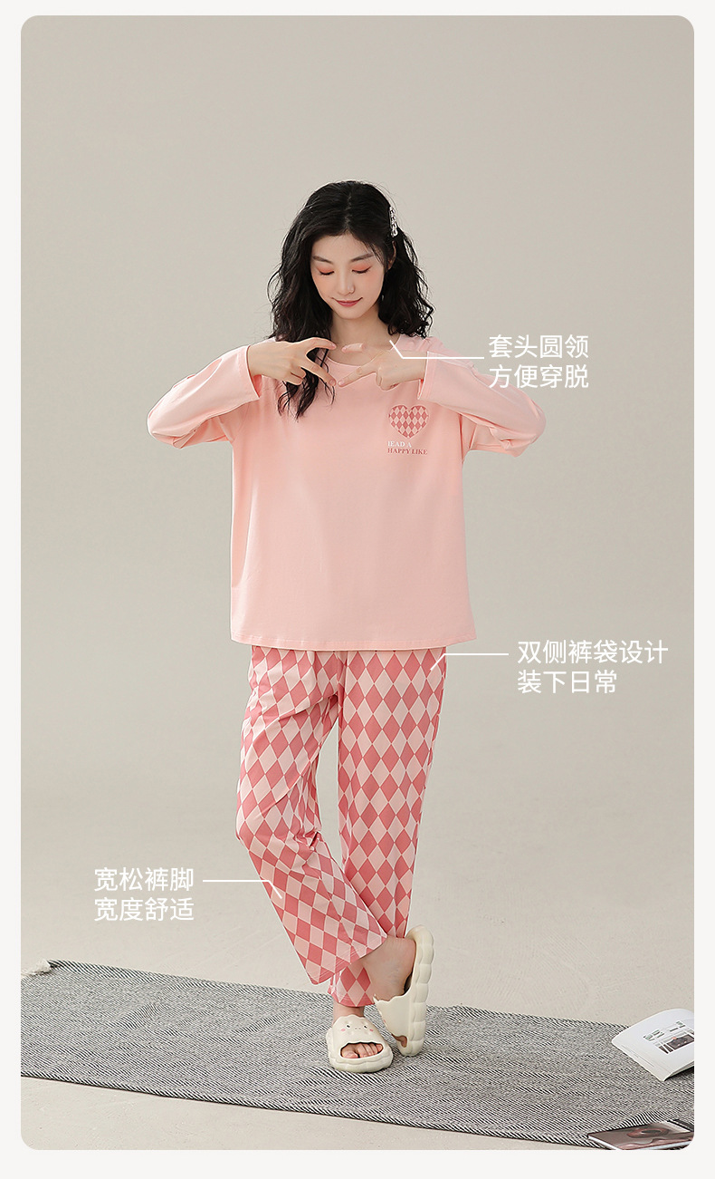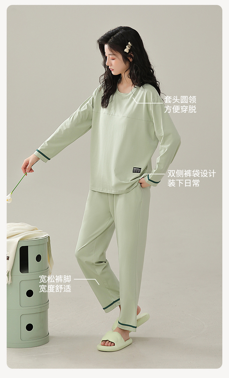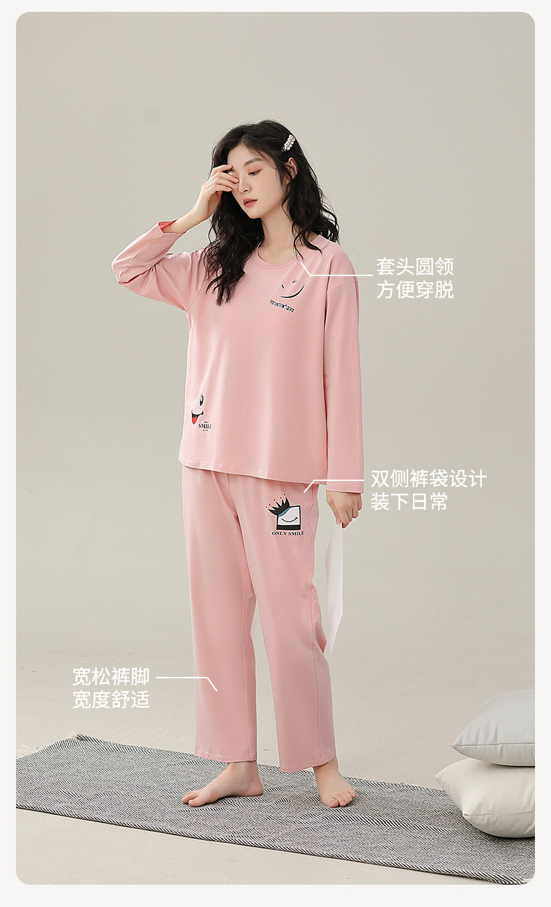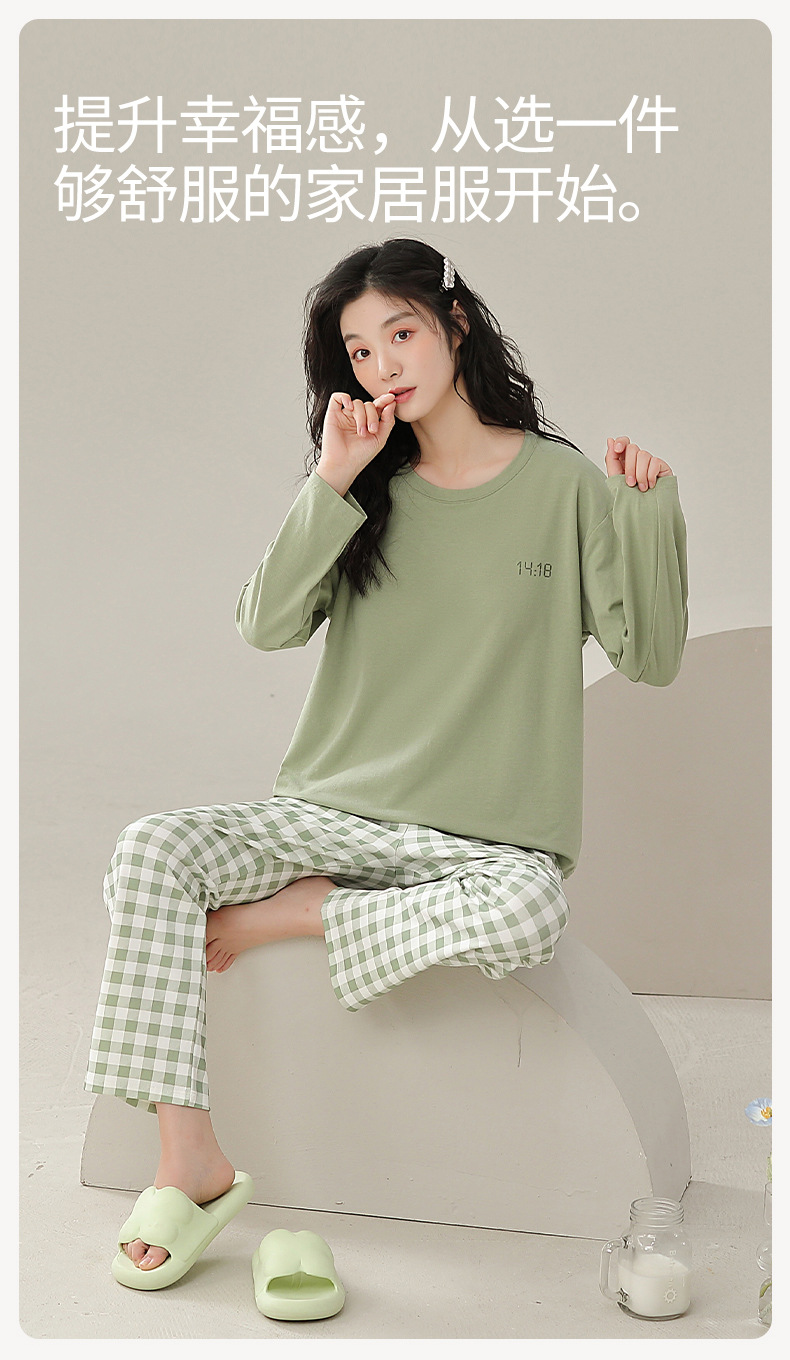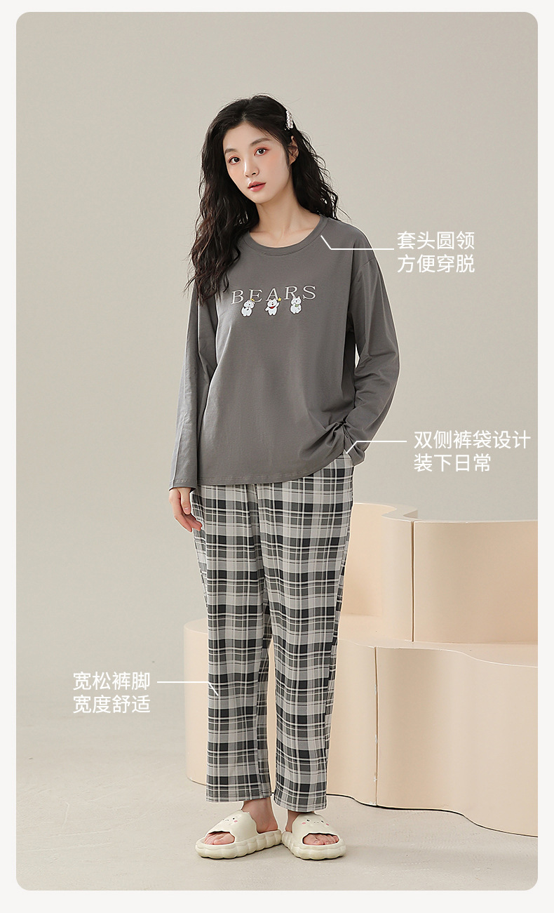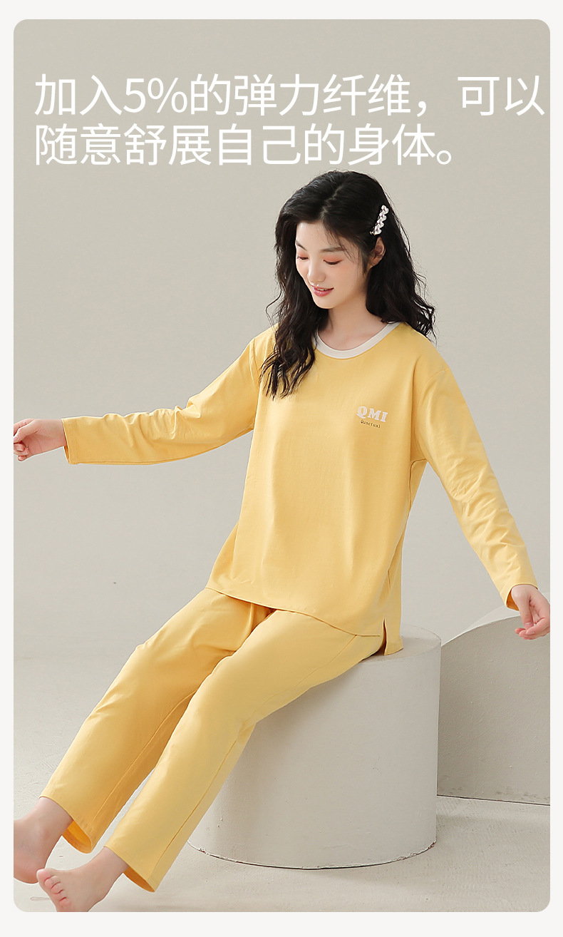 파자마 여성의 봄과 가을 면화 가슴 패드가있는 긴 소매 가을과 겨울 얇은 가정 착용 풀오버 면화 세트 착용스토어 가기