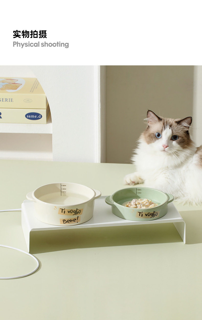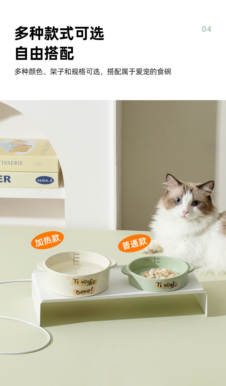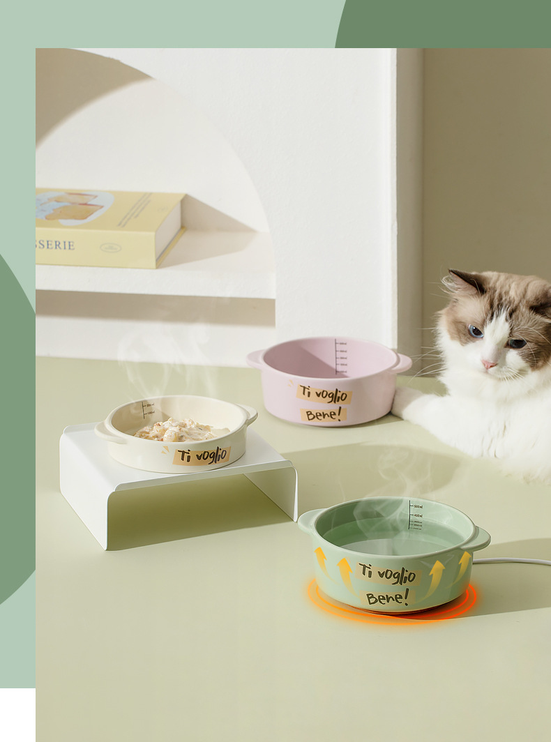 난방 고양이 그릇 일정한 온도 세라믹 물 디스펜서 보호 경추 높은 다리 바이노럴 애완 동물 그릇 고양이 개 먹이 그릇 마시는 그릇스토어 가기